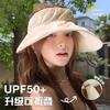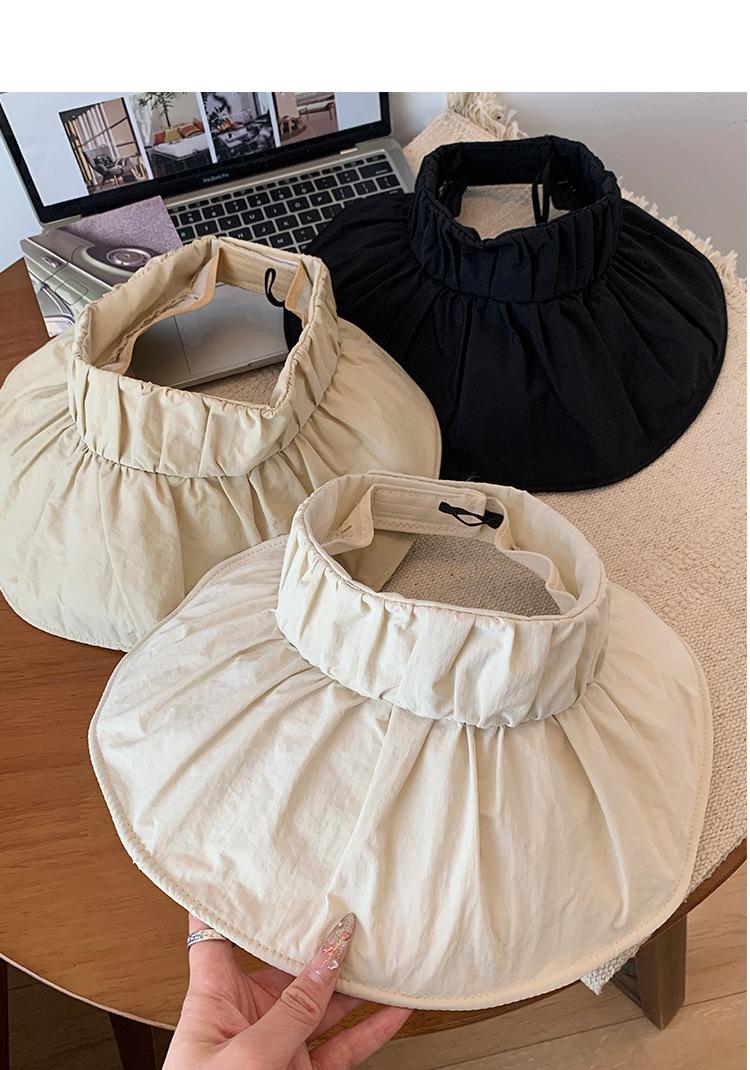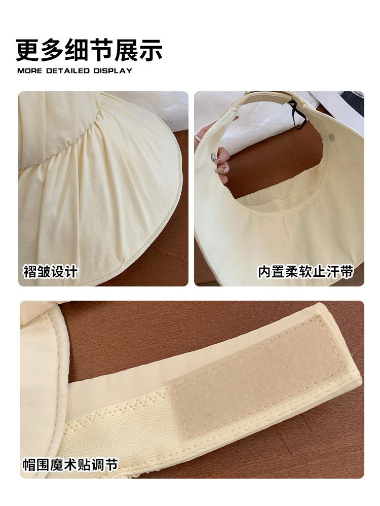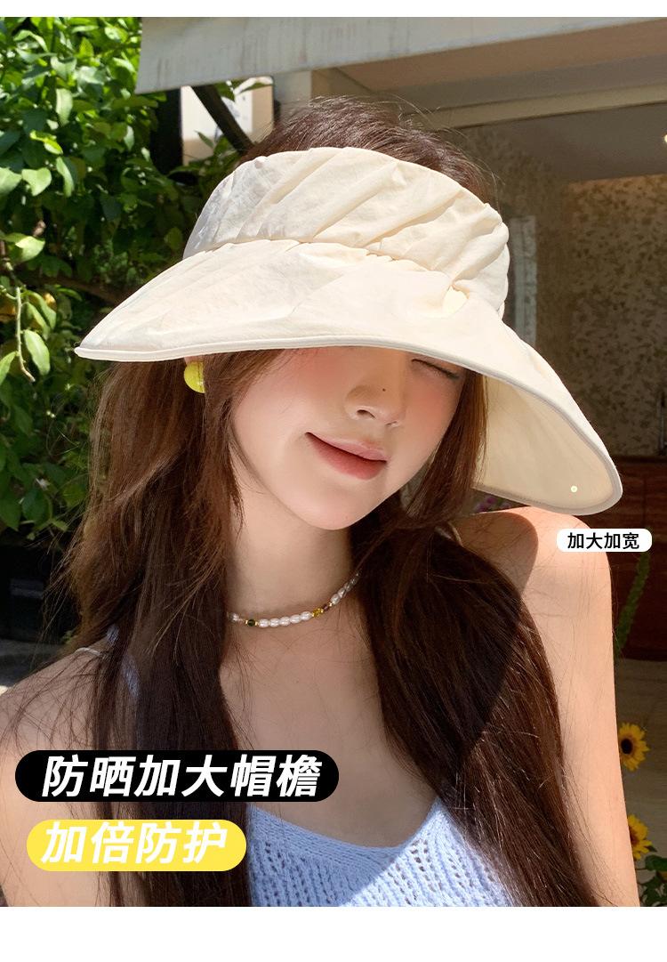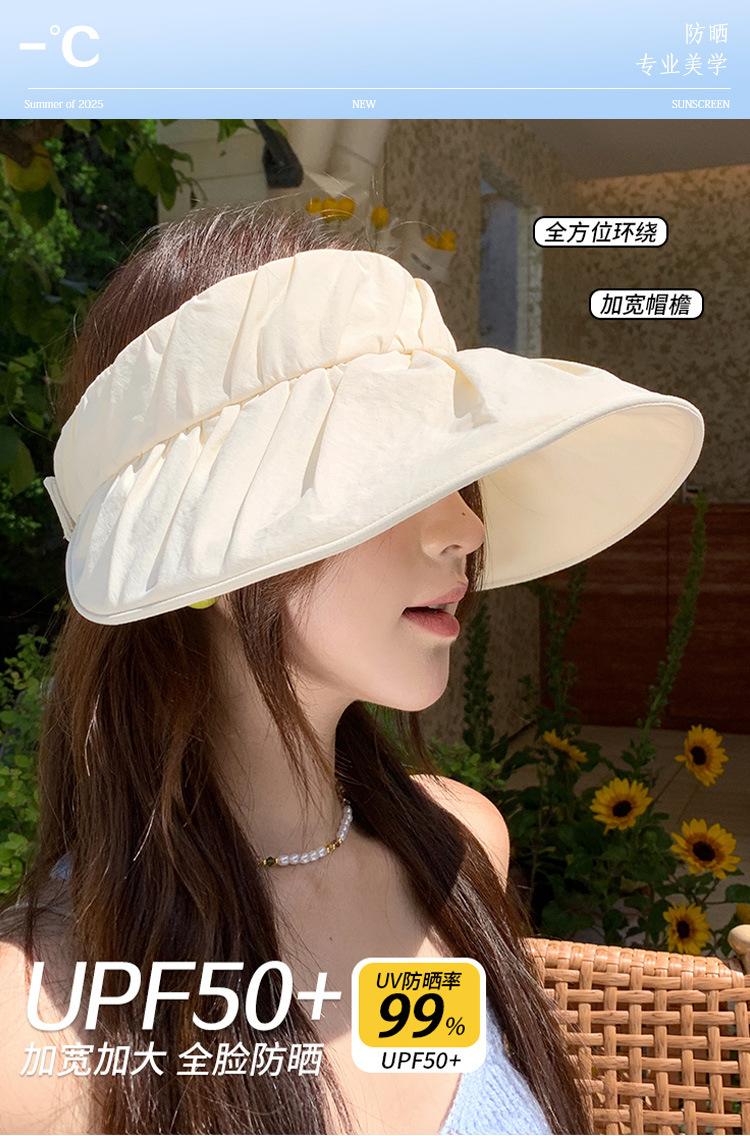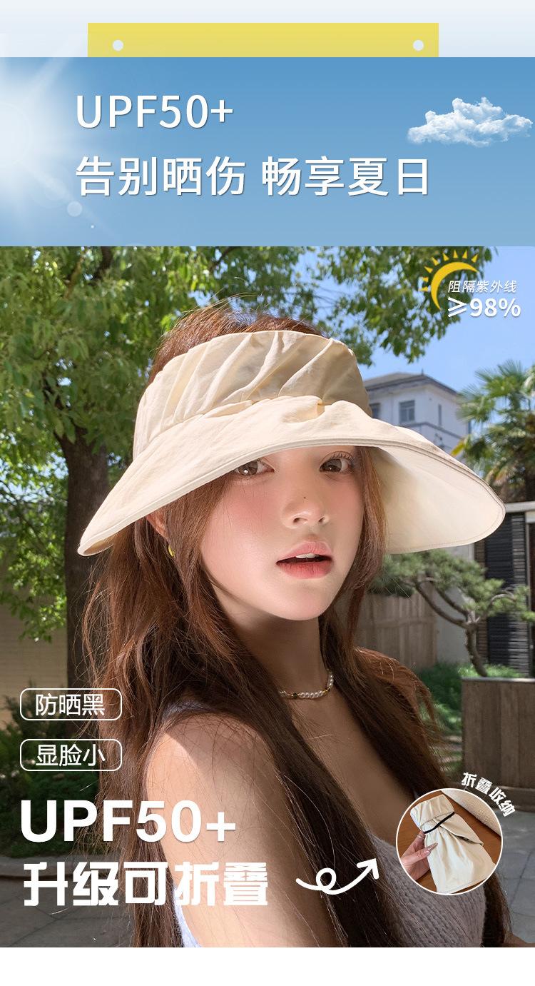 Sombrero de Sol de Ala Ancha Plisado Estilo Coreano con Copa Pequeña Vacía para Mujer Verano Exterior Protección Solar UV Cubierta Facial Sombrero de Sol