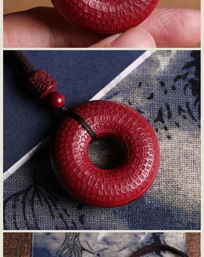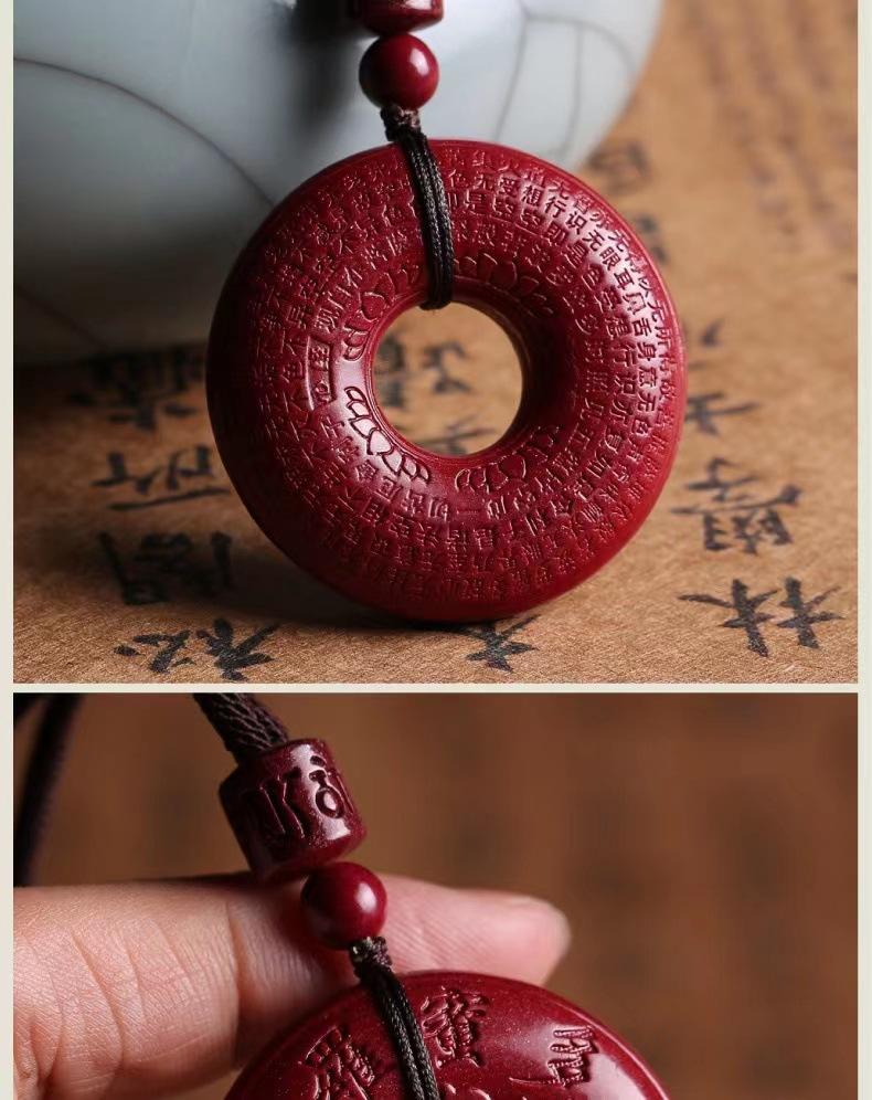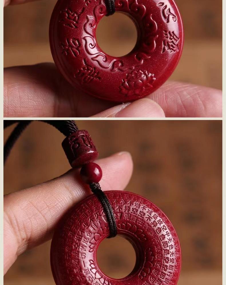 Colgante de Cinabrio Oro Púrpura Tallado Sutra del Corazón Prajna Accesorios Hechos a Mano Colgante Rojo Amuleto Joyería Regalo para Pareja Collar
