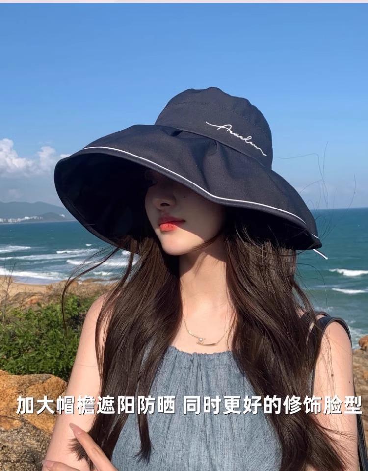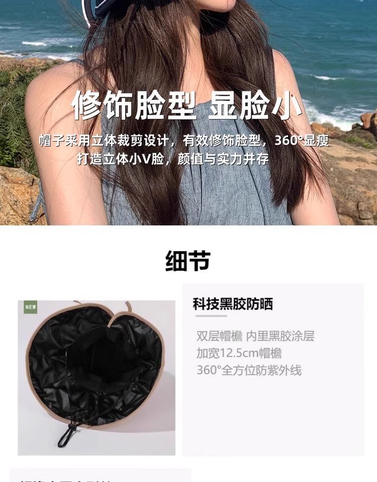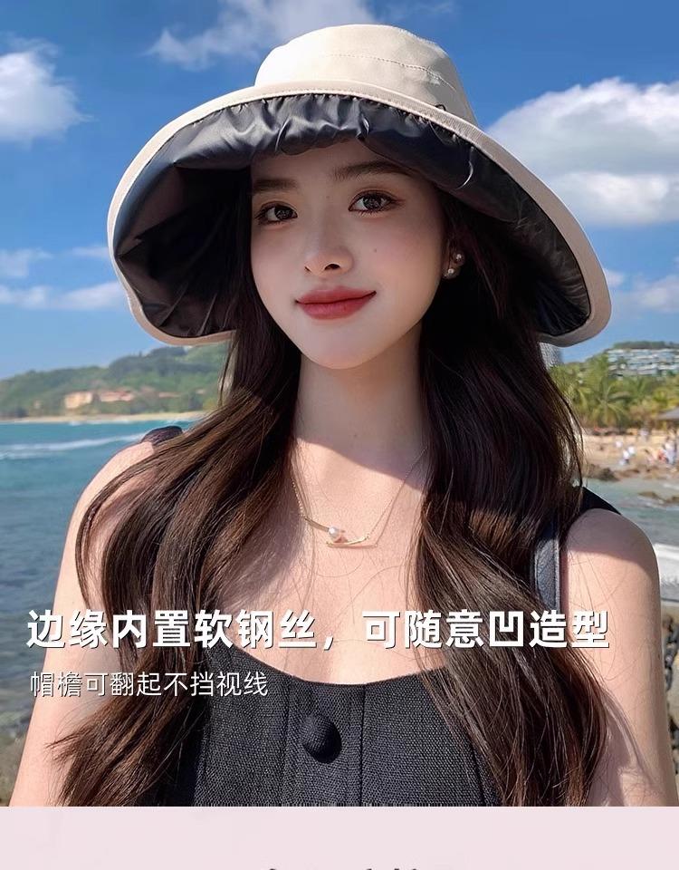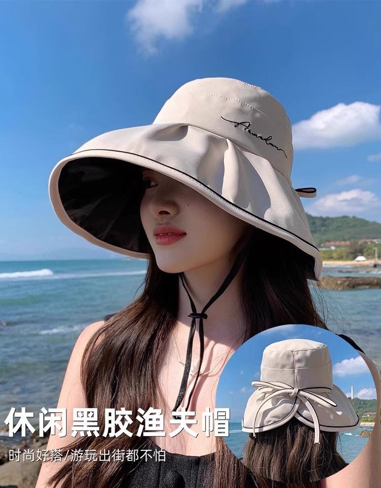 Sombrero de Nuevo Estilo 2025 Verano para Mujer Verano Sombrero de Sol de Goma Negra Protección Solar Cubre Cara Sombrero de Pescador Protección UV Sombrero de Sol