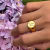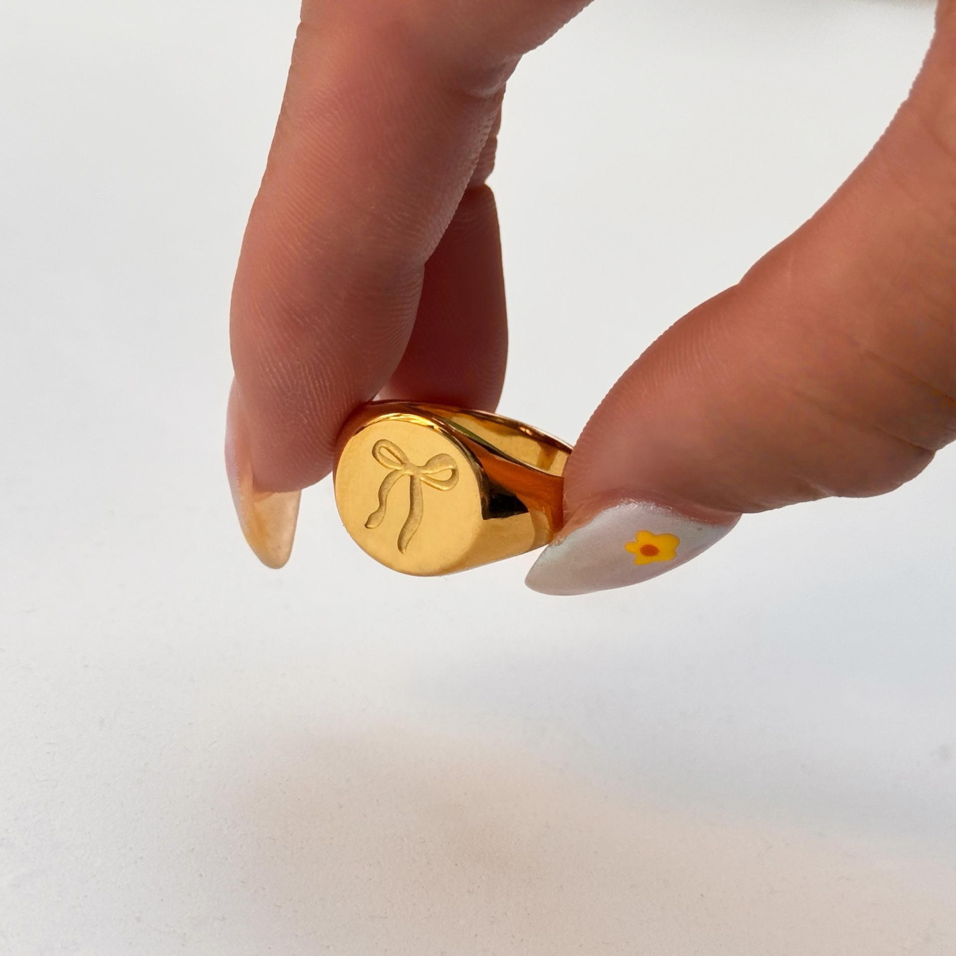 Anillo al por mayor en stock Europeo y Americano Transfronterizo de Acero de Titanio Electrochapado en Oro Real de 18K Estilo Dulce con Anillo Lazo Grabado Impreso