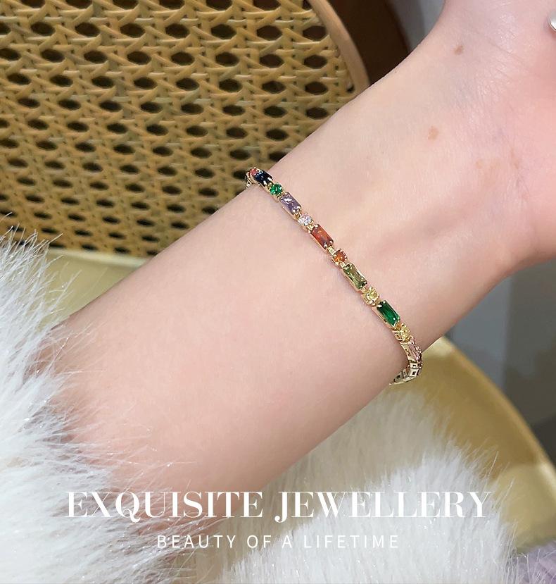 Pulsera de circonio de color contraste colorido de Corea del Sur para mujer, diseño de nicho, alto sentido de la moda ins, pulsera versátil