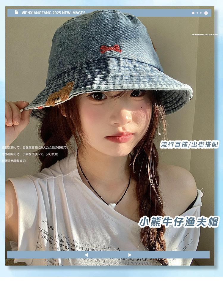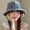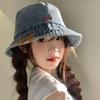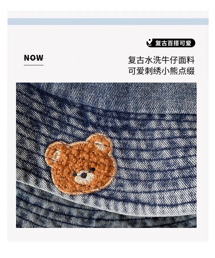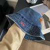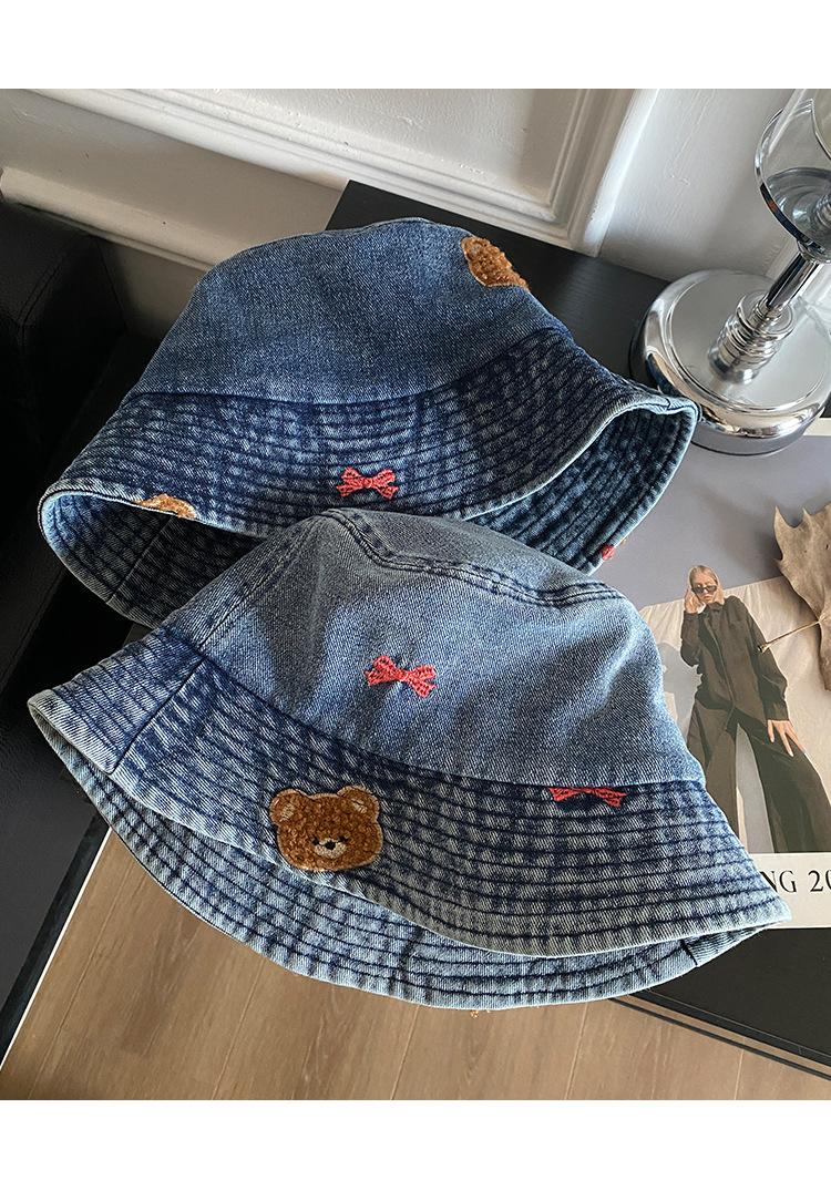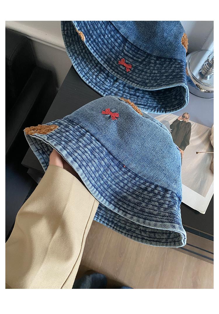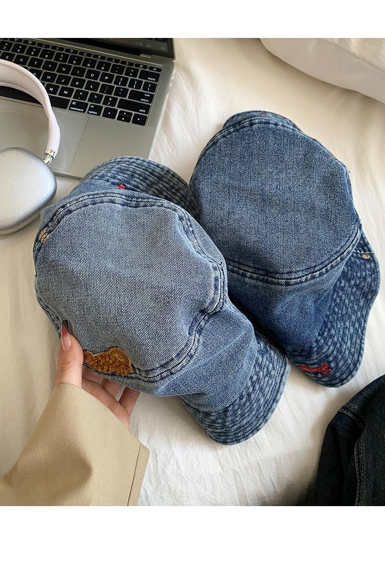 Sombrero de Pescador de Mezclilla Bordado con Oso Lindo Japonés para Mujer 2025 Nuevo Cara de Cabeza Grande Pequeña Versátil Sombrero de Cubeta