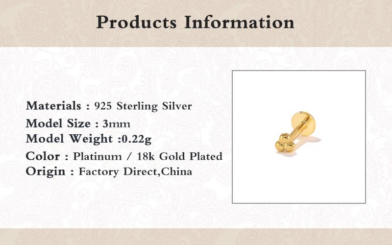 【Peso】:aproximadamente 1g, grosor del poste para el oído medio aproximadamente 1.2MM, longitud 8MM