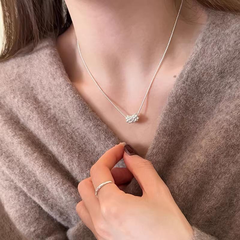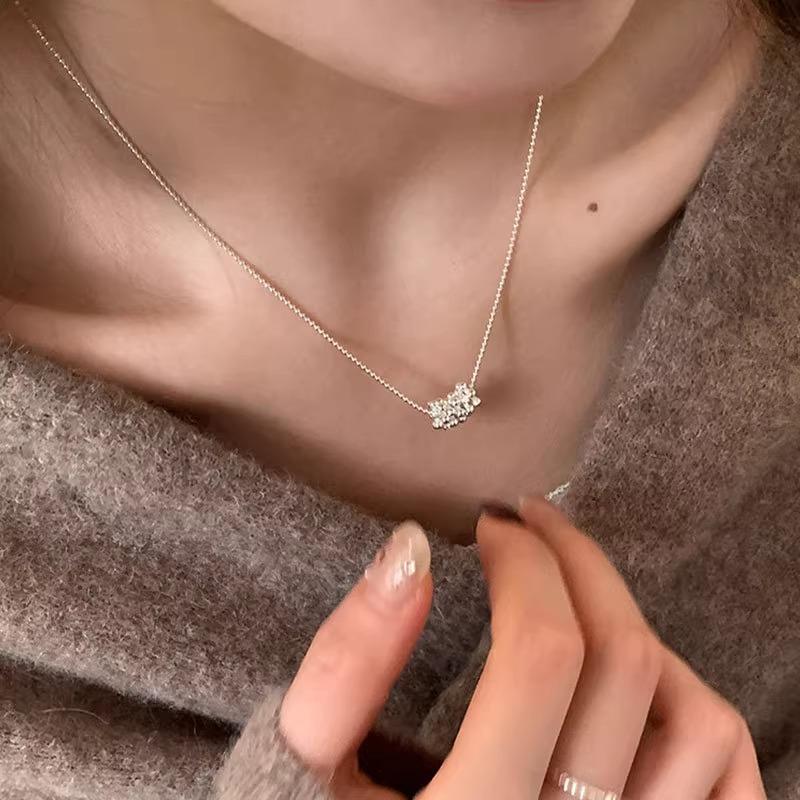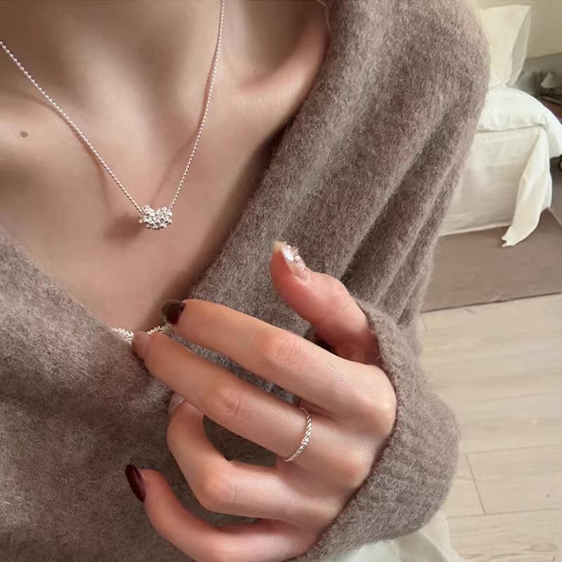 Collar con colgante de flor de cuentas redondas de Niche Design Sense para mujer, estilo retro, ligero, de lujo, elegante, a la moda.