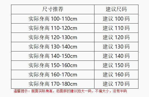 Children (3~8 years old, 100~140cm)