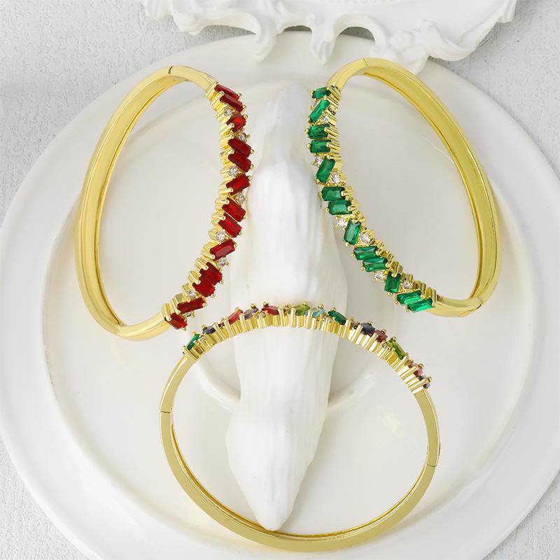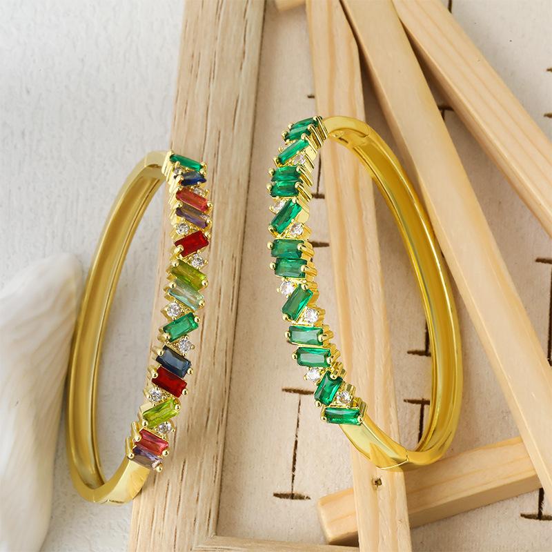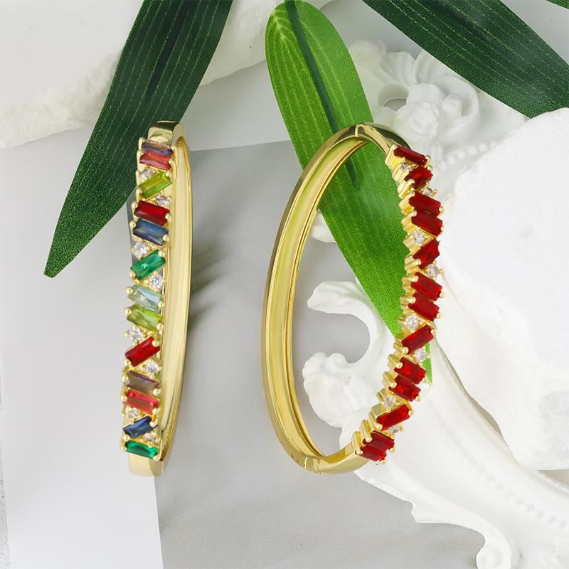 Pulsera de personalidad europea y americana con incrustaciones de circonio de color, lujo ligero, popular en línea, moda ins, pulsera de alta gama, joyería al por mayor