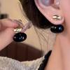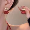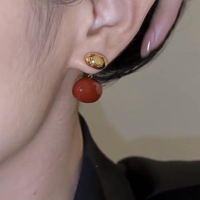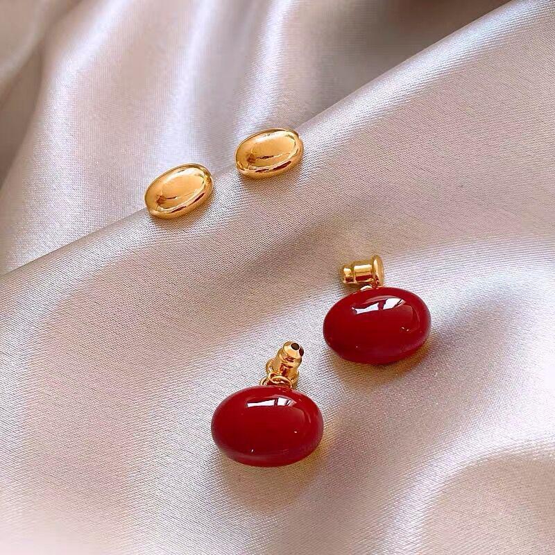 Red drop glaze bean stud earrings, Black Drop glaze beanie ear studs, Beige drop glaze beanie ear studs