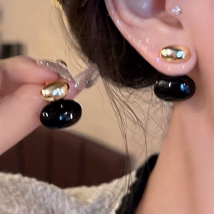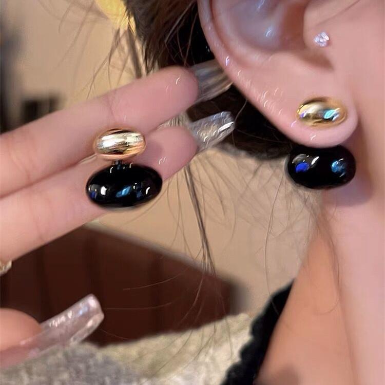 Aretes franceses retro de dos piezas con forma de frijol, aretes pequeños y sencillos, aretes de moda de alta gama para mujer, nuevos populares 2023