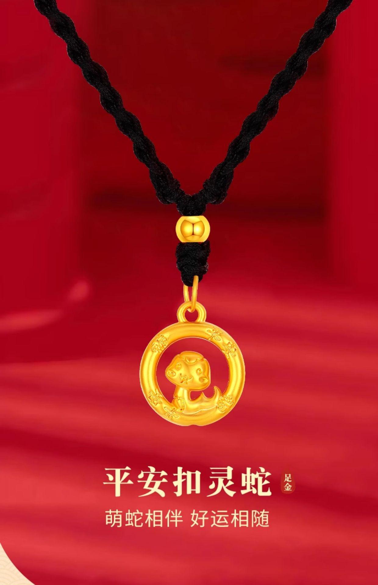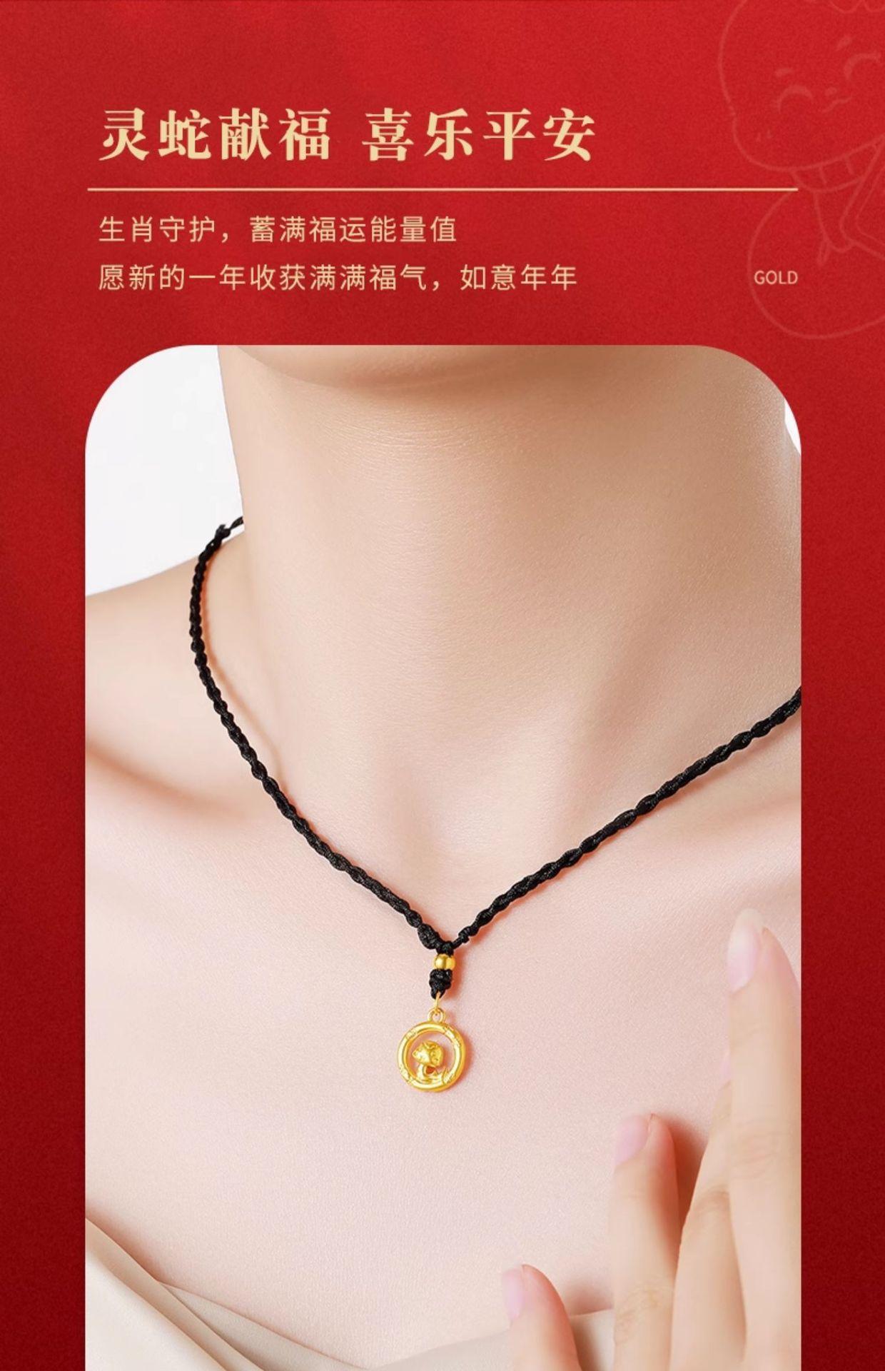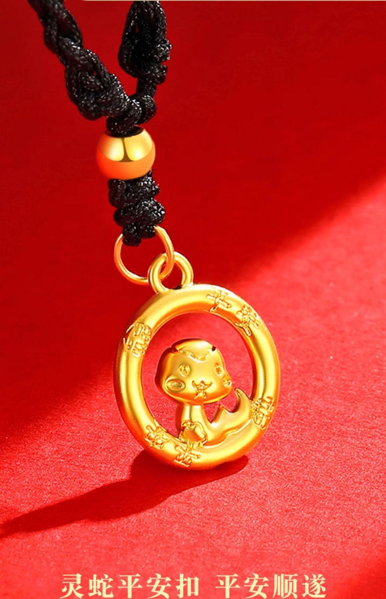 Pure gold snake zodiac single pendant [no accessories], Pure gold pendant + customized titanium chain (strong ...