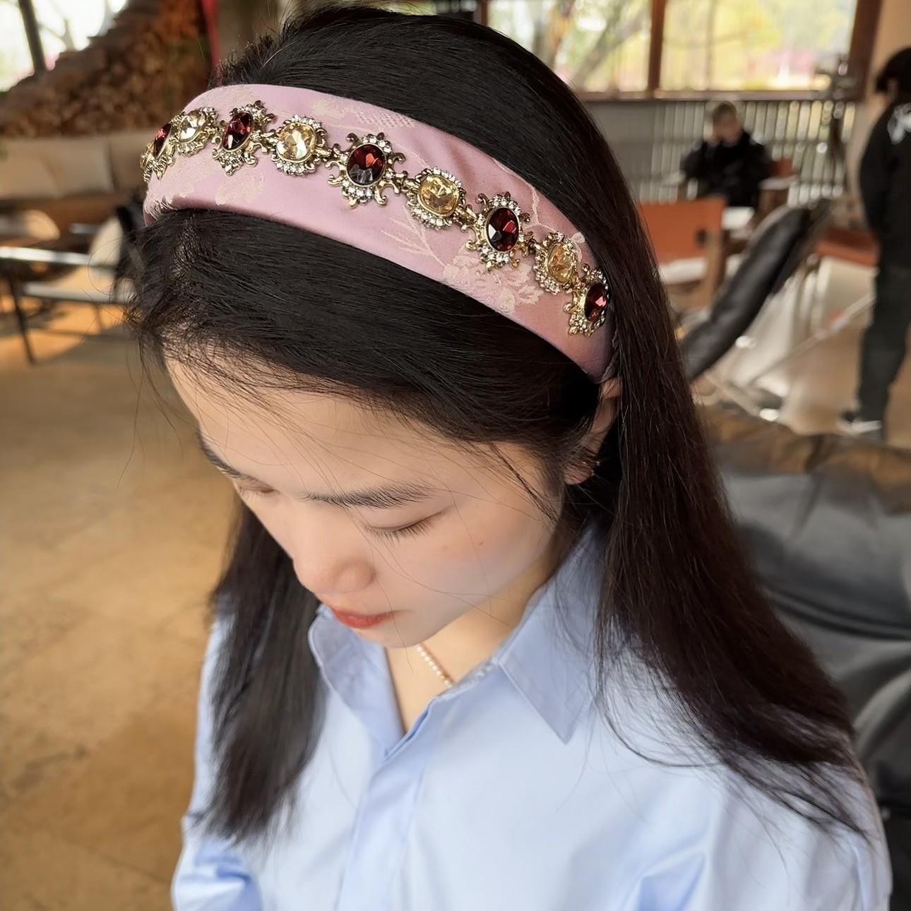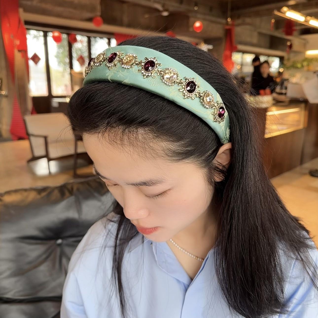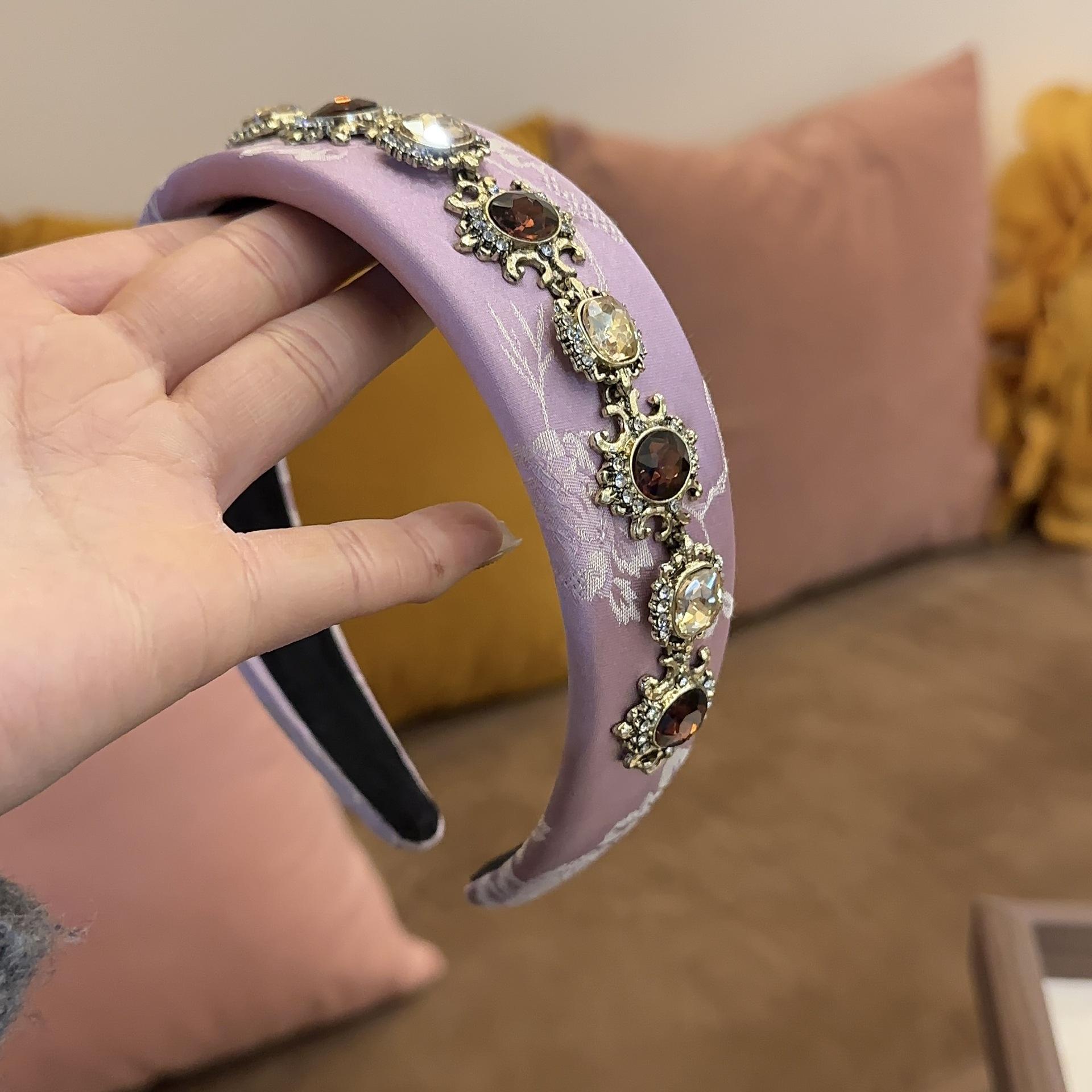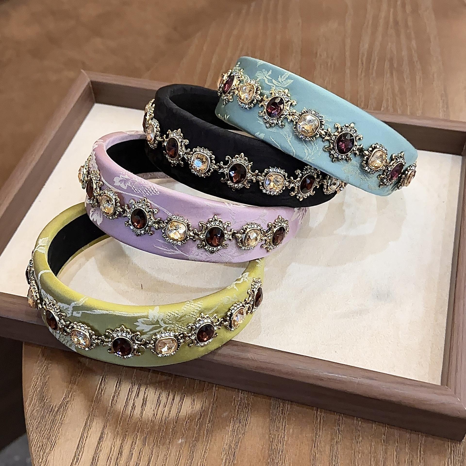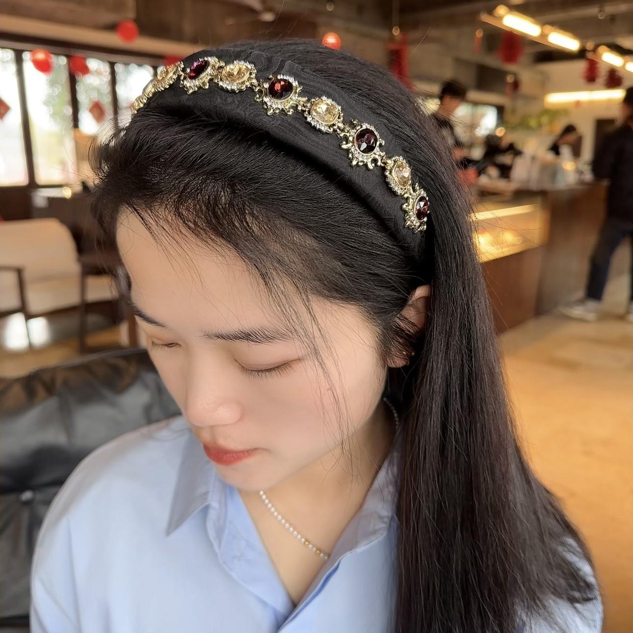 Diadema Barroca de Industria Pesada Estilo Coreano con Pedrería Impresa Retro de Ala Ancha para Cabello Presionado Adorno para la Cabeza de Lujo Ligero Diadema Superior Craneal Alta