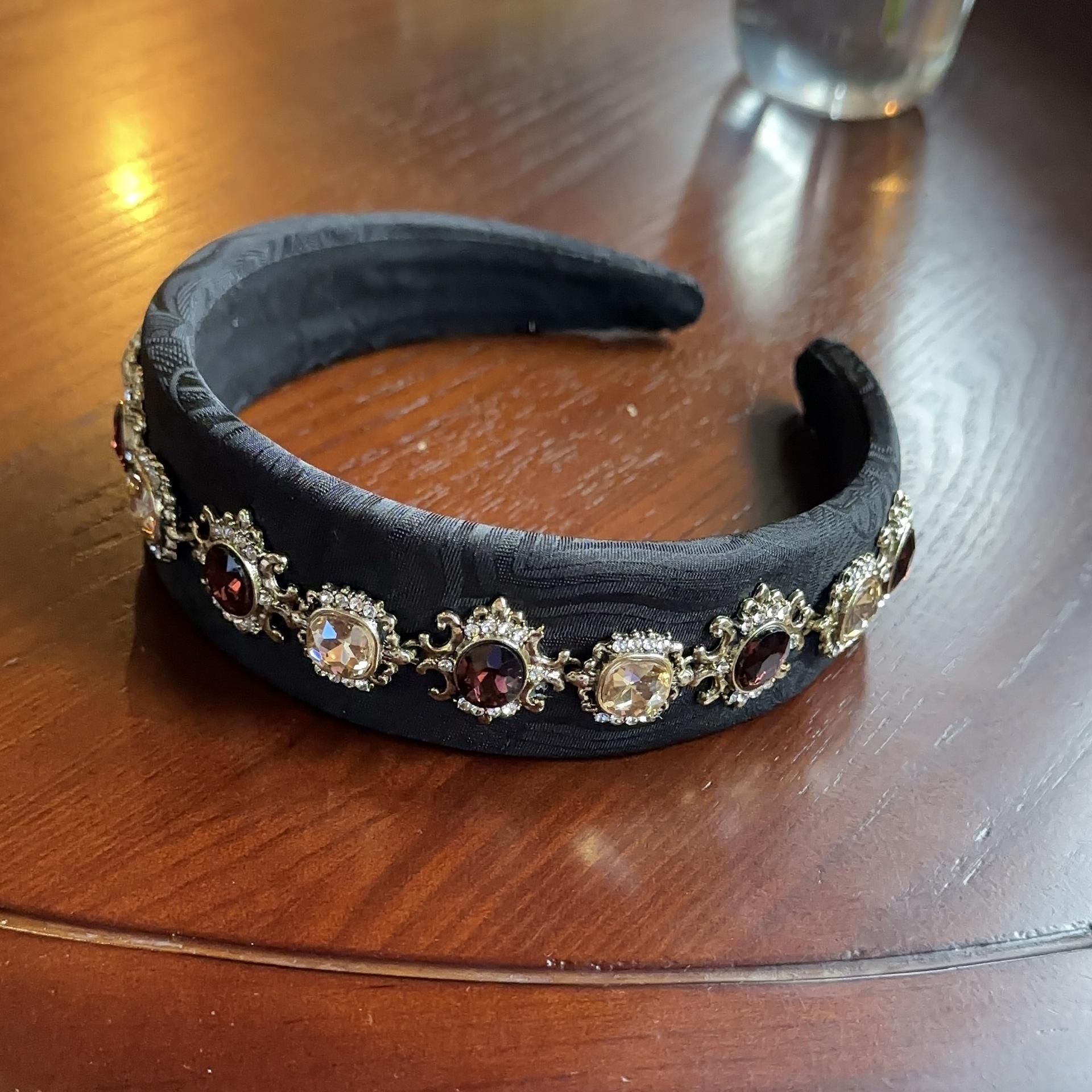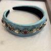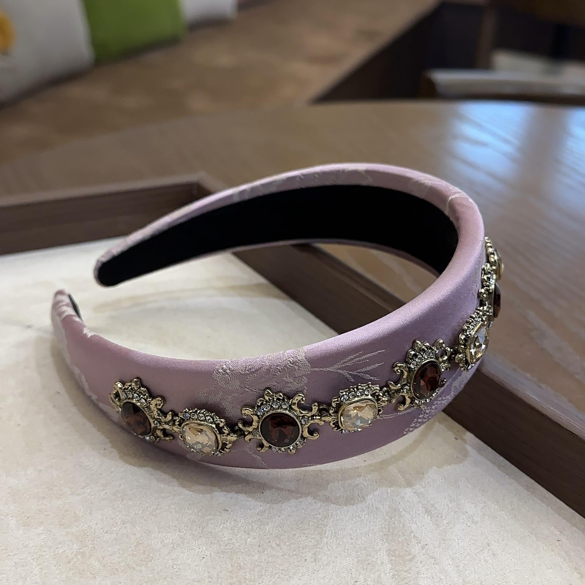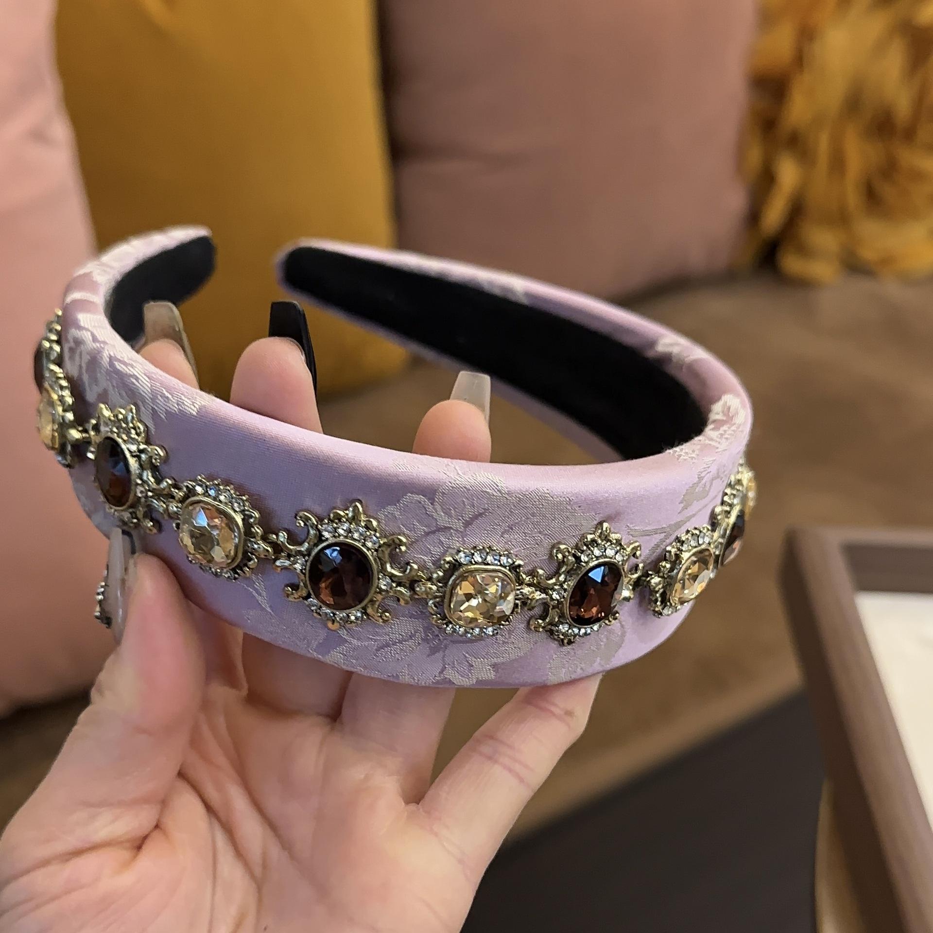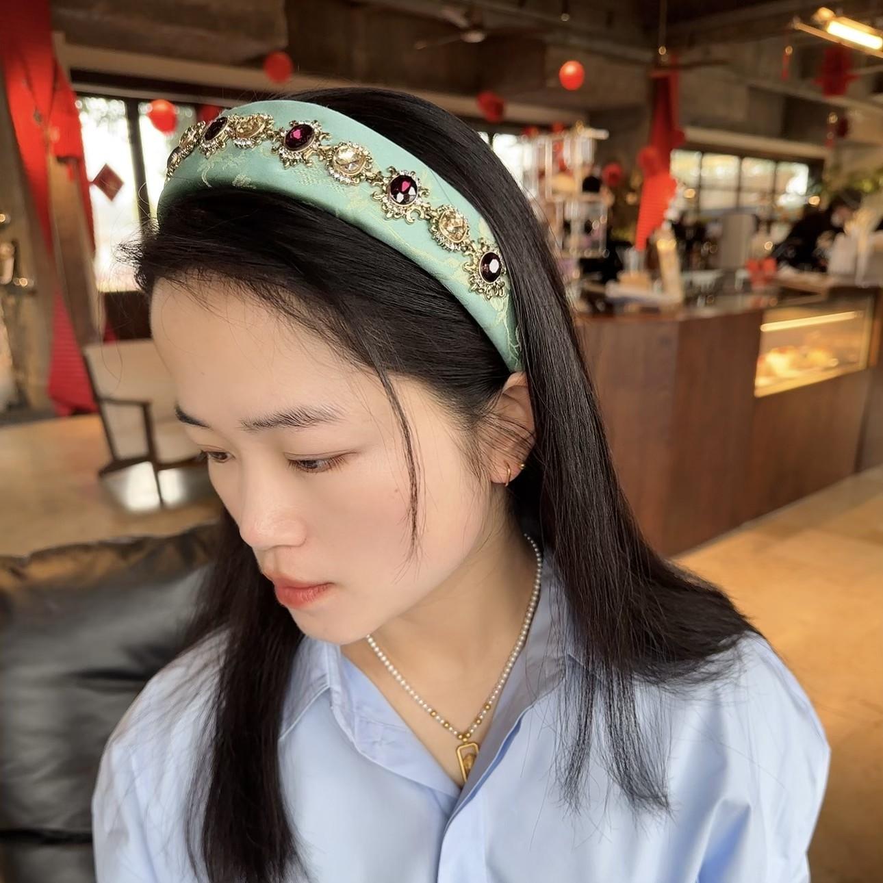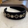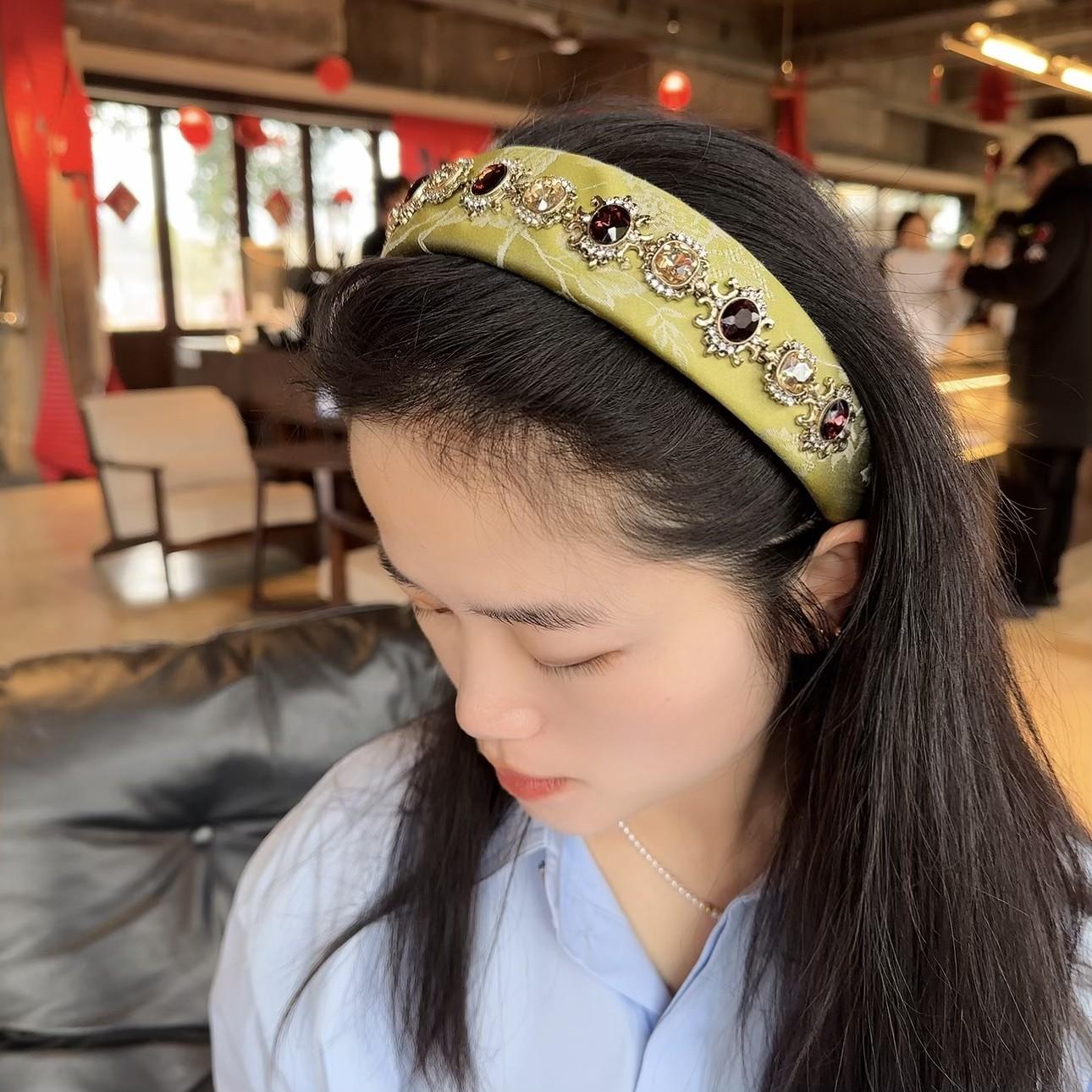 Diadema Barroca de Industria Pesada Estilo Coreano con Pedrería Impresa Retro de Ala Ancha para Cabello Presionado Adorno para la Cabeza de Lujo Ligero Diadema Superior Craneal Alta