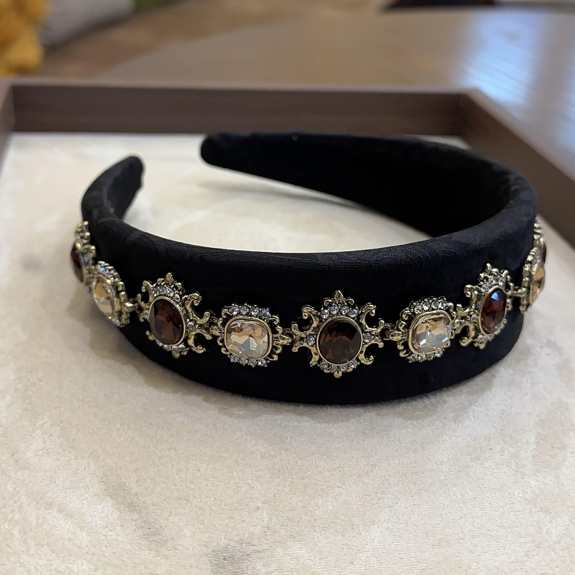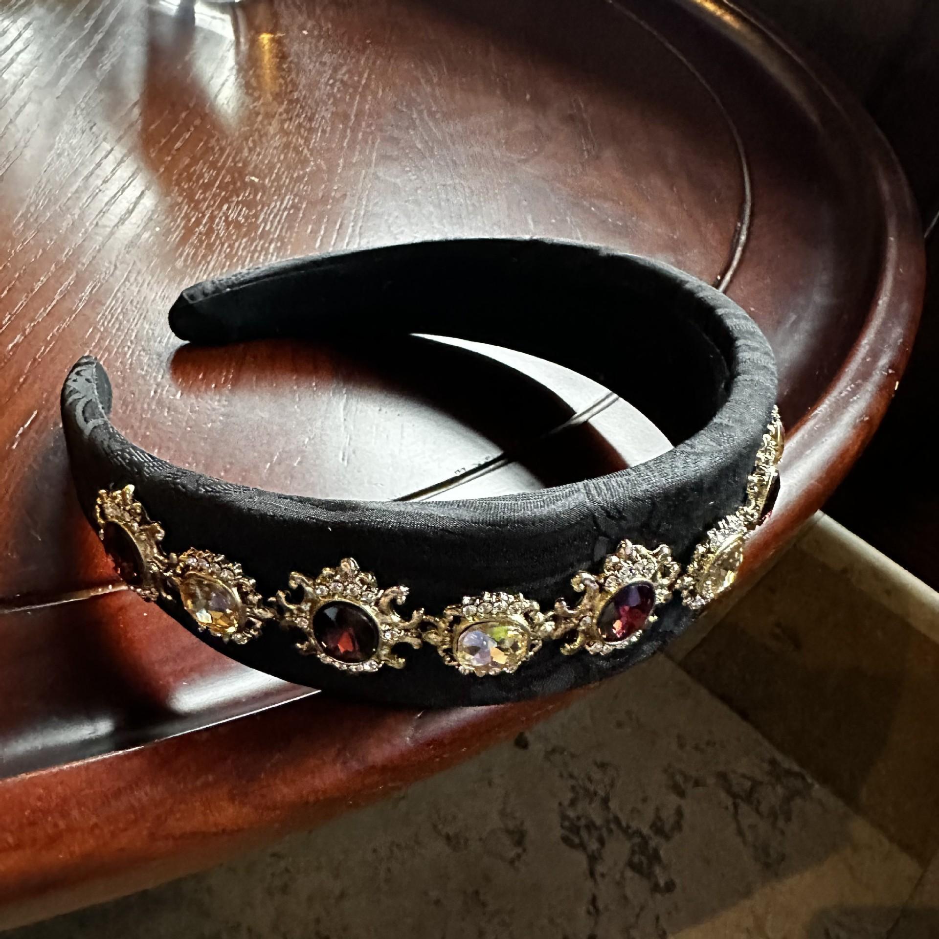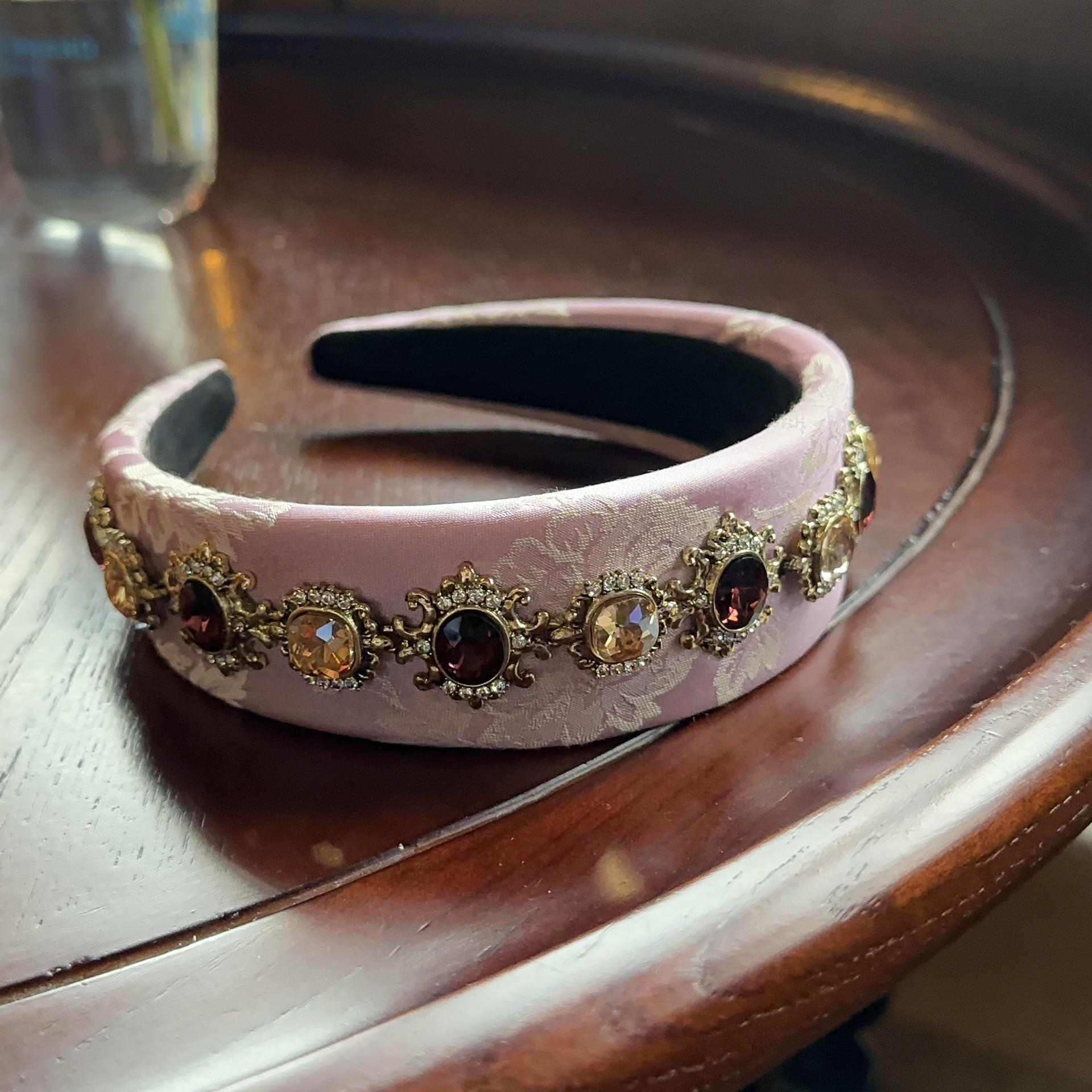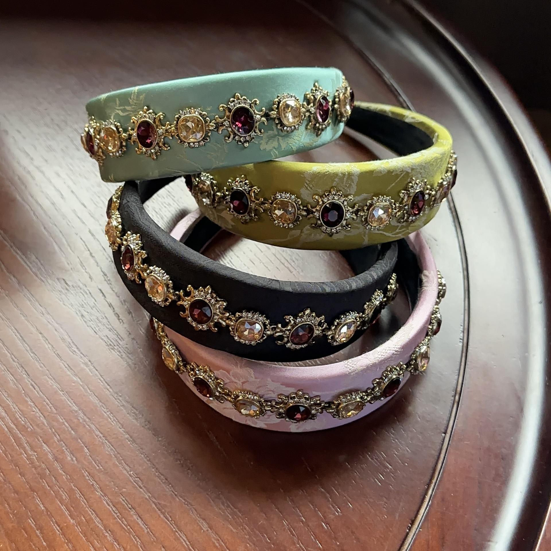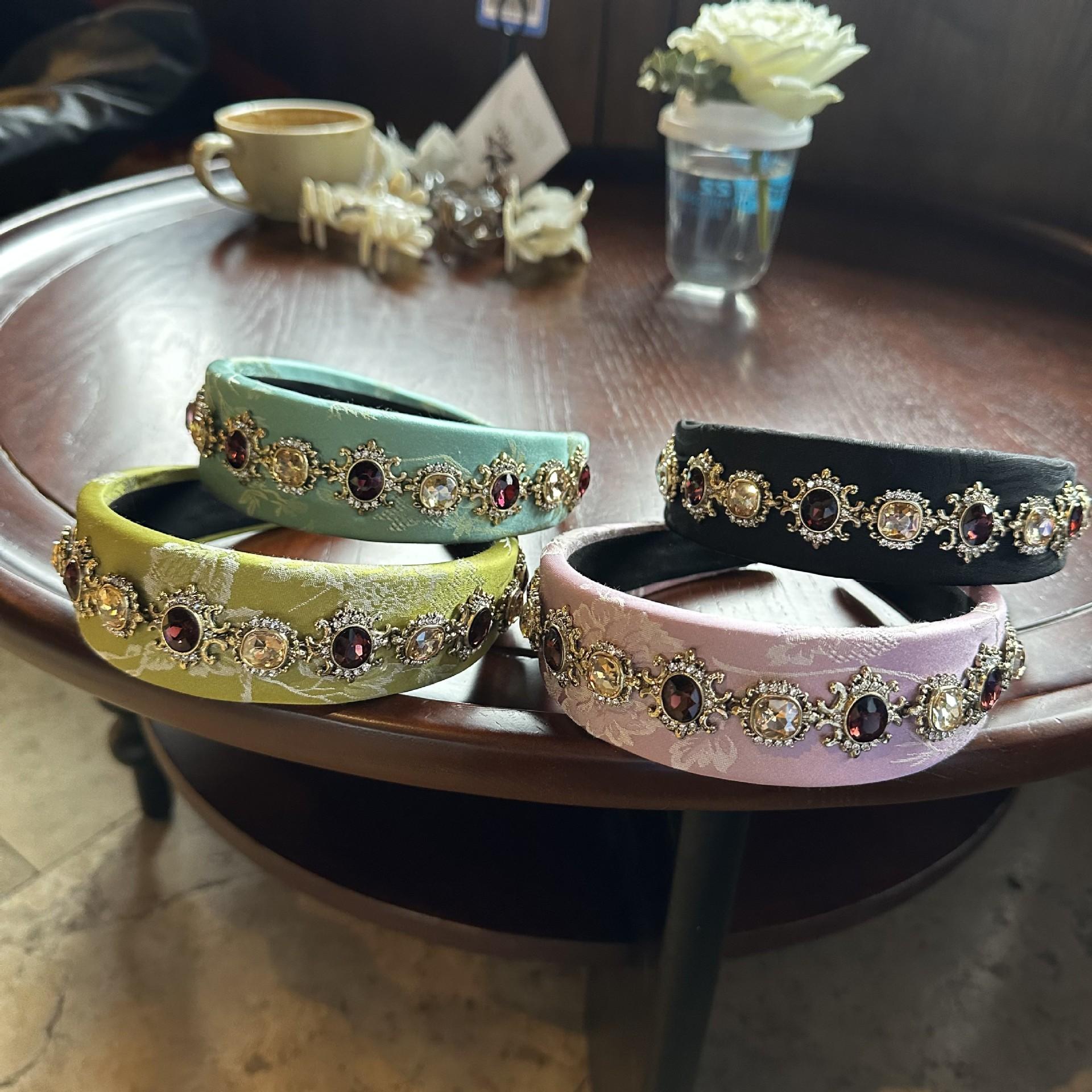 Diadema Barroca de Industria Pesada Estilo Coreano con Pedrería Impresa Retro de Ala Ancha para Cabello Presionado Adorno para la Cabeza de Lujo Ligero Diadema Superior Craneal Alta