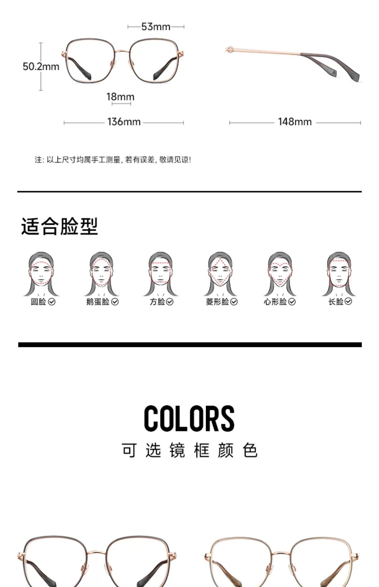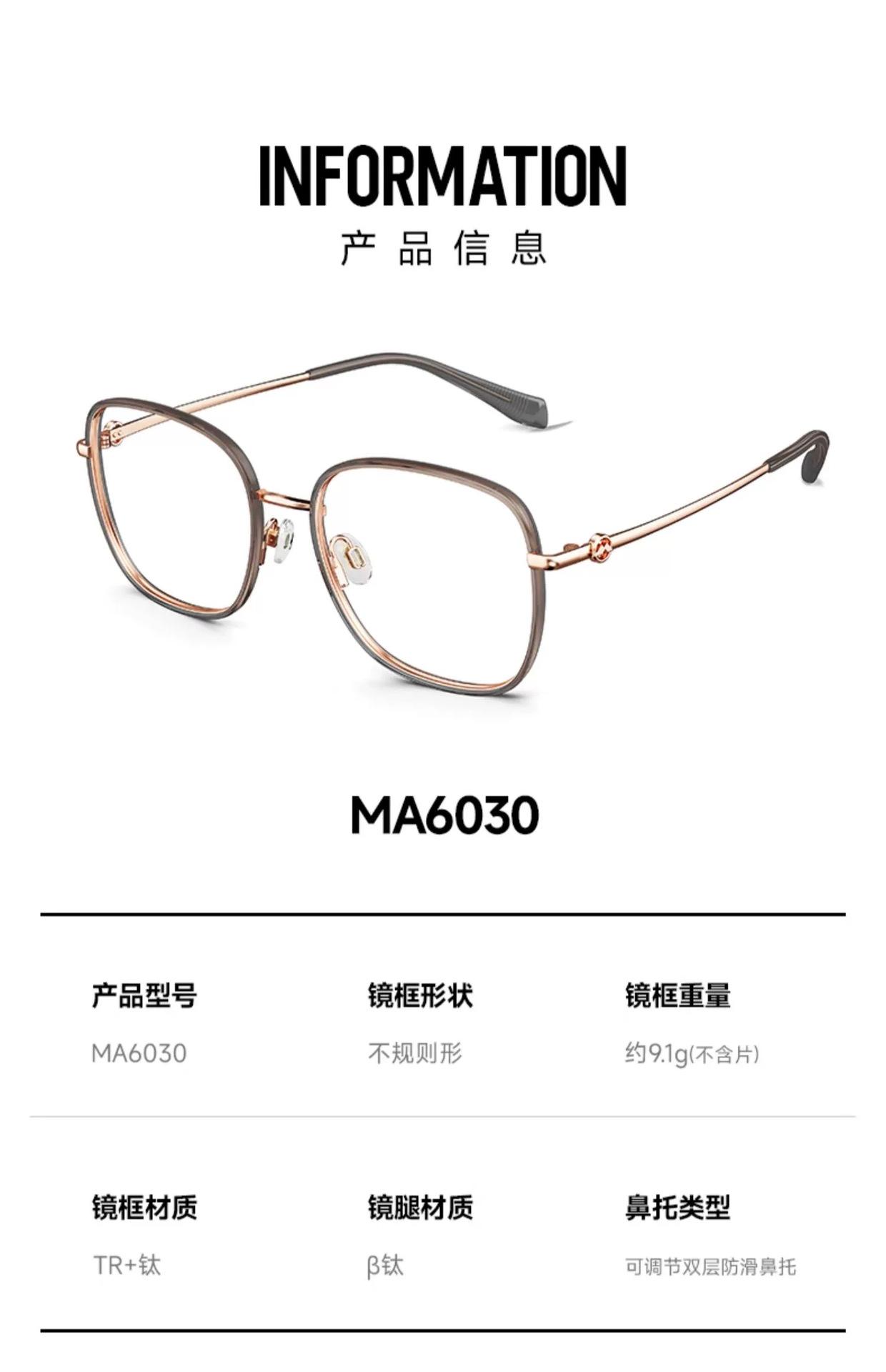 Armazón ojo de gato Mo Sen miopía grado ajustable para mujer armazón grande adelgazante armazón de titanio ligero MA6030
