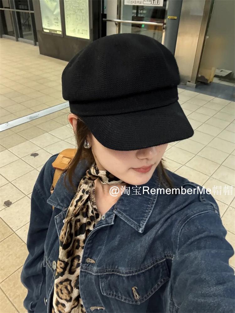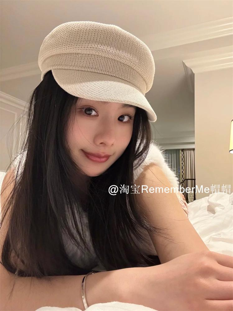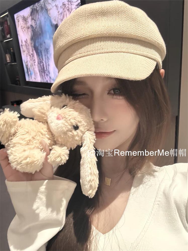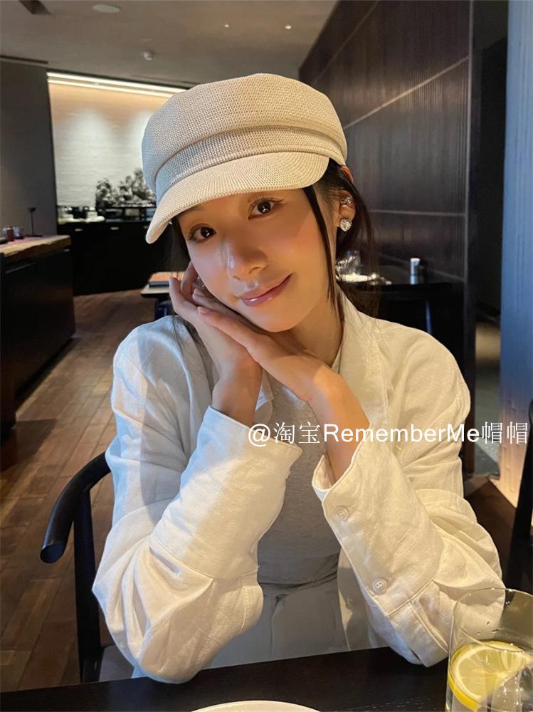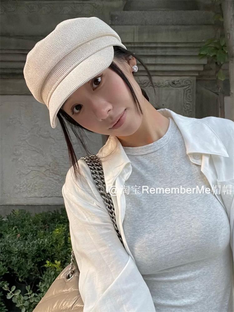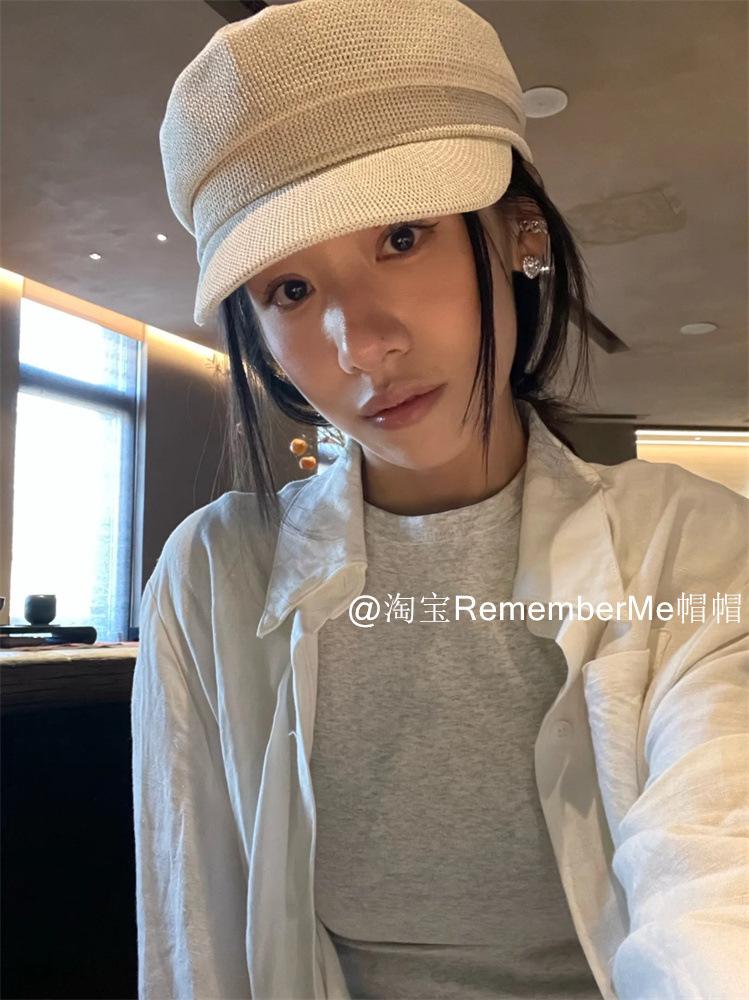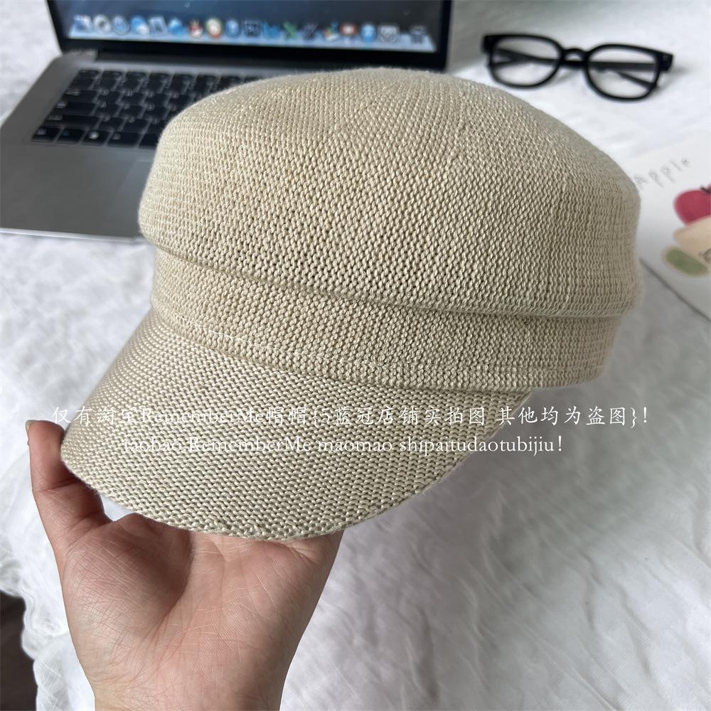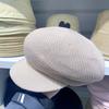 Gorra militar de algodón y lino de verano temperamento femenino estilo británico beige tejida gorra de repartidor hueca transpirable buena versión gorra octogonal marea