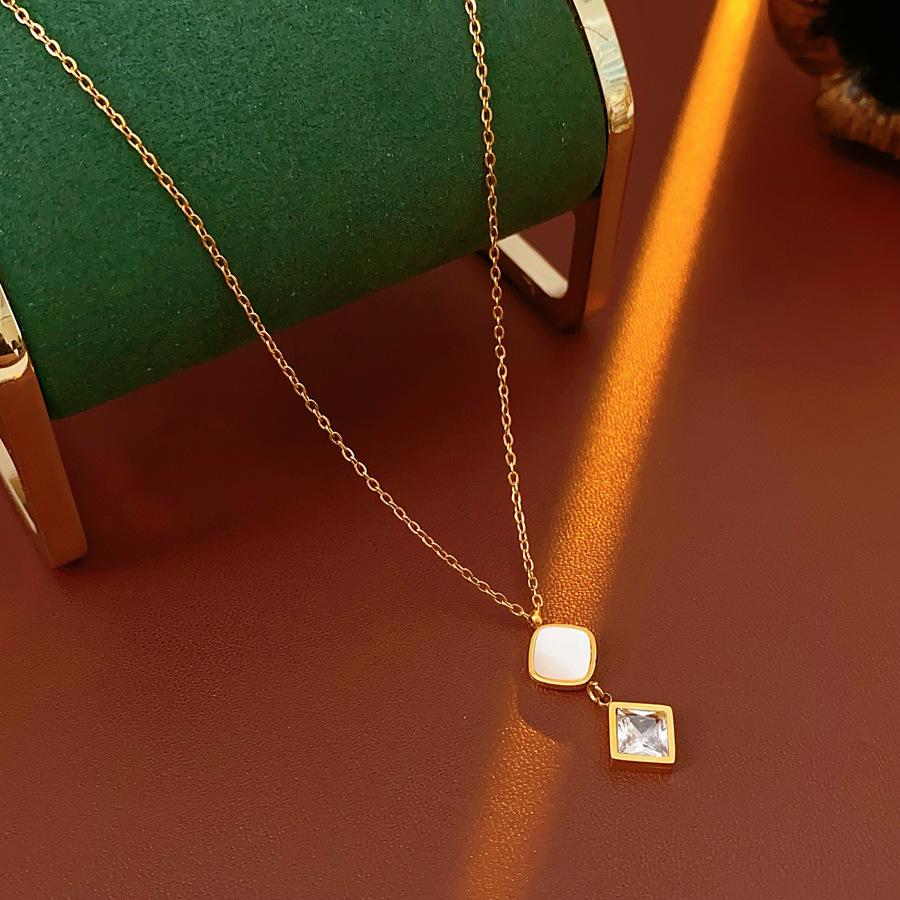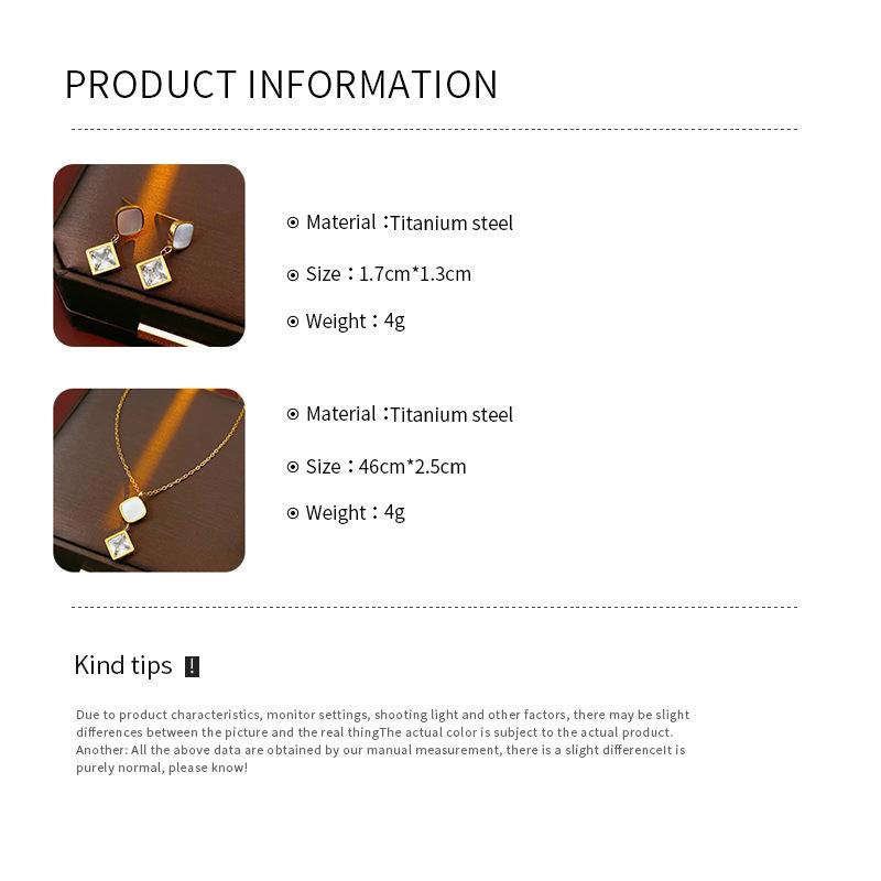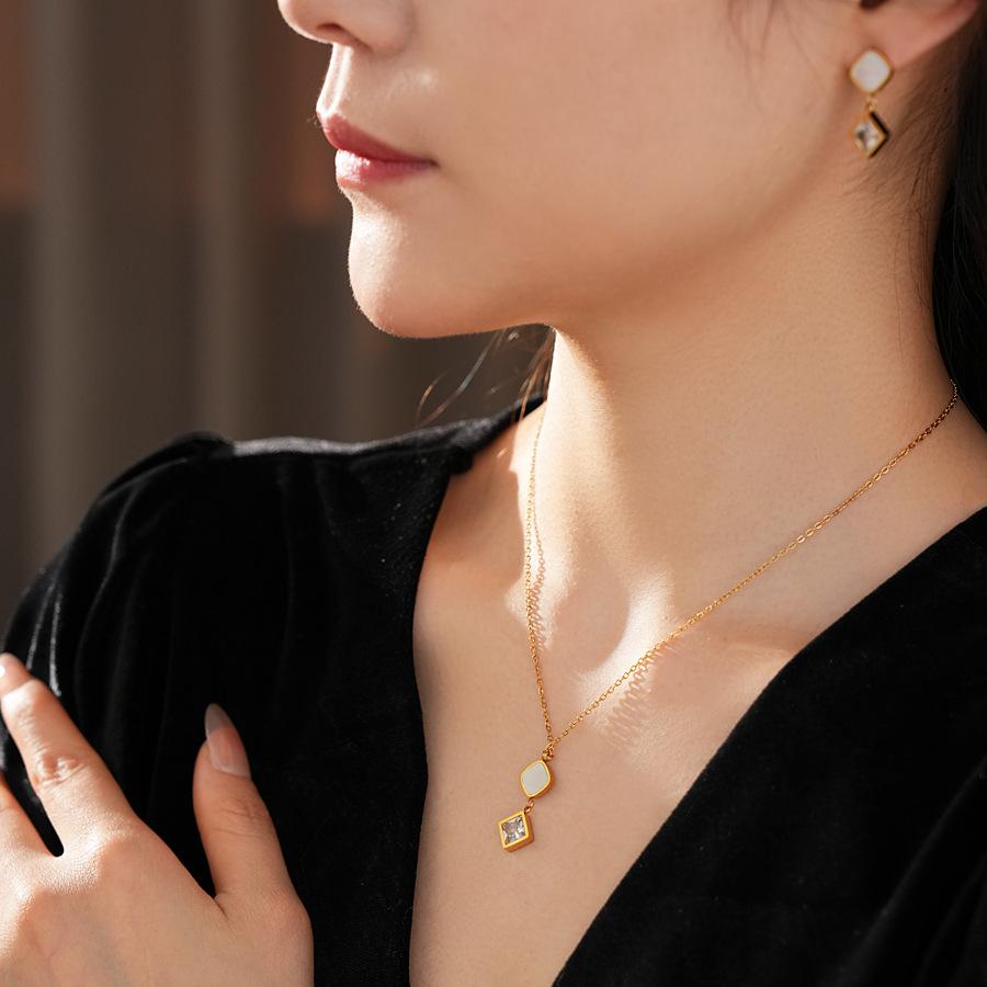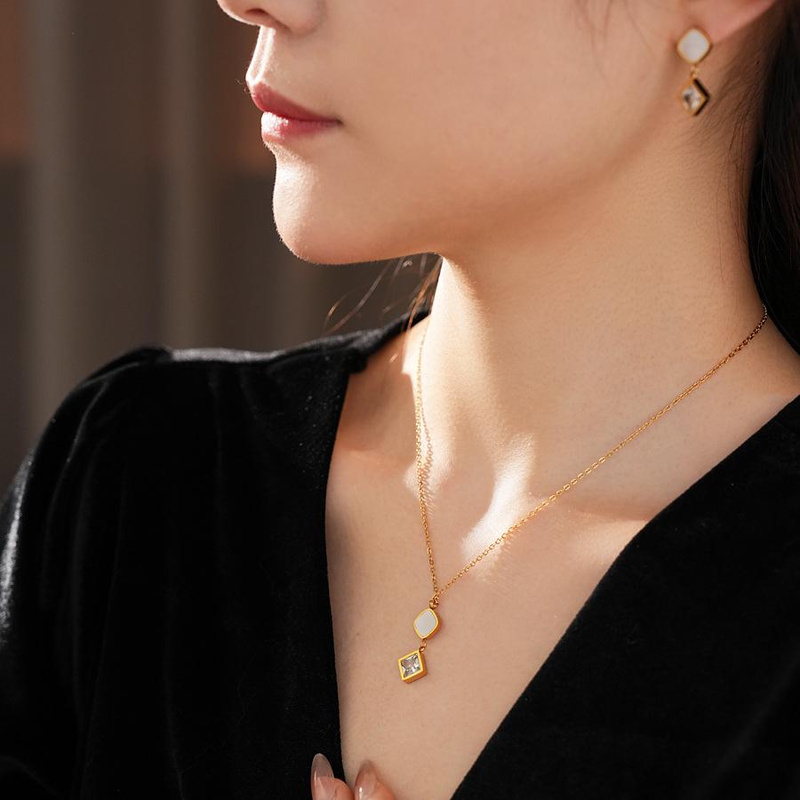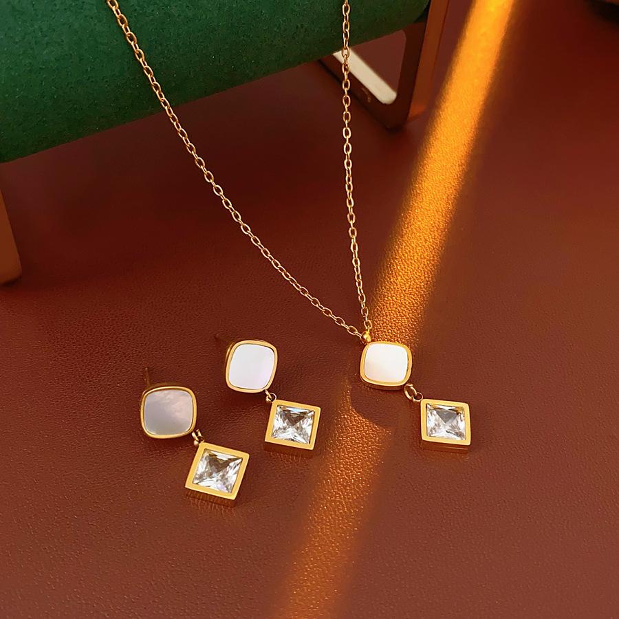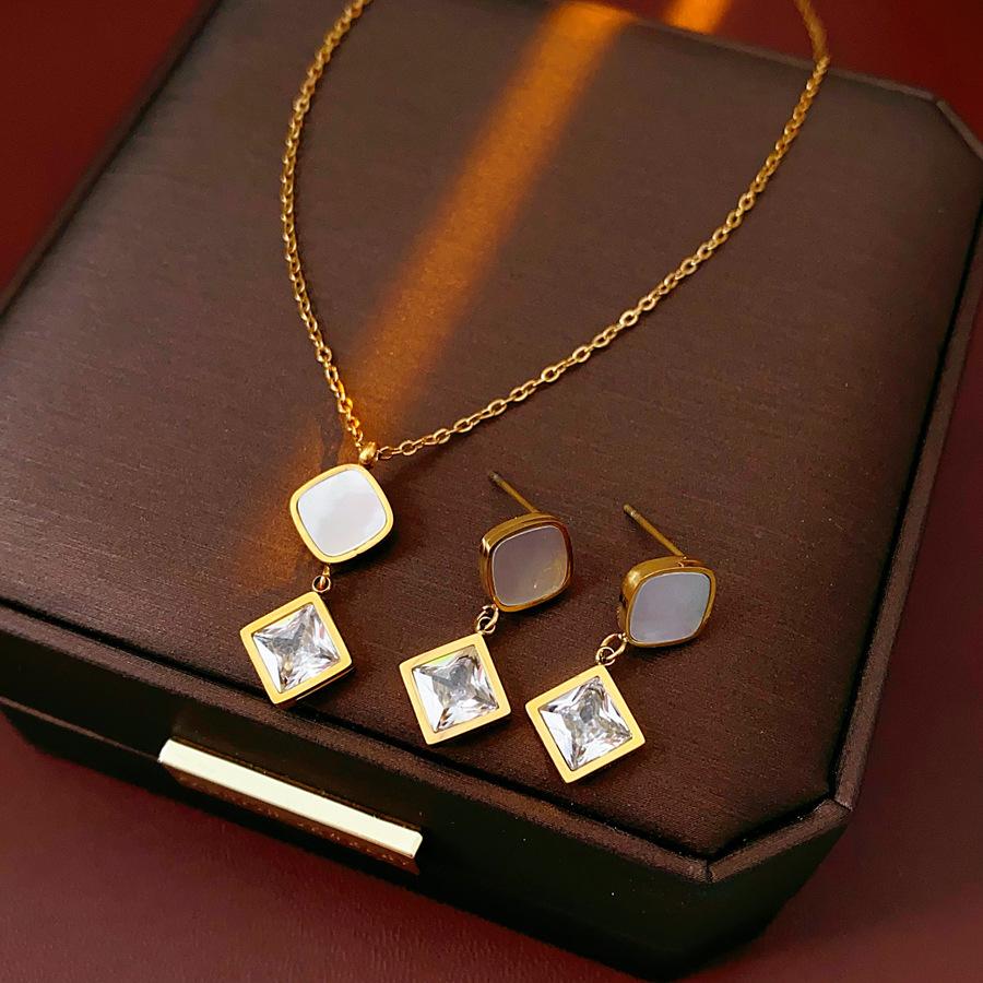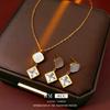 Aretes Collar Concha Romboidal Acero Titanio Versátil Retro No Se Desvanece Cadena Clavícula Lujo Ligero Nicho de Gama Alta Set para Mujer
