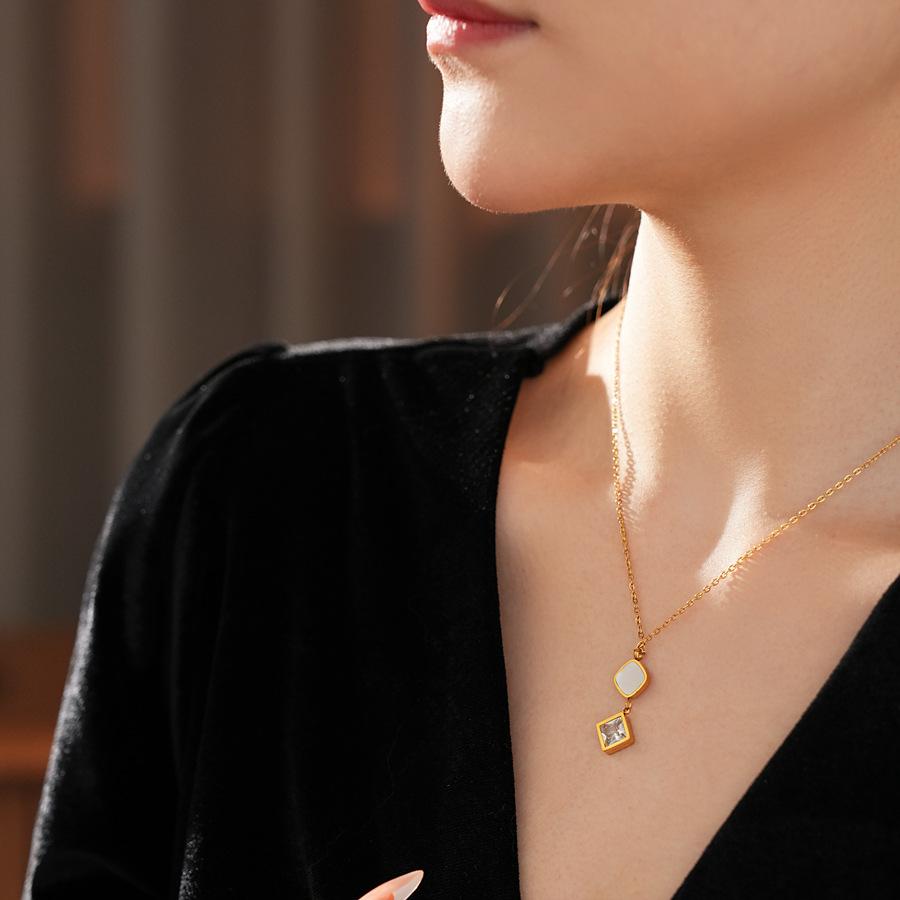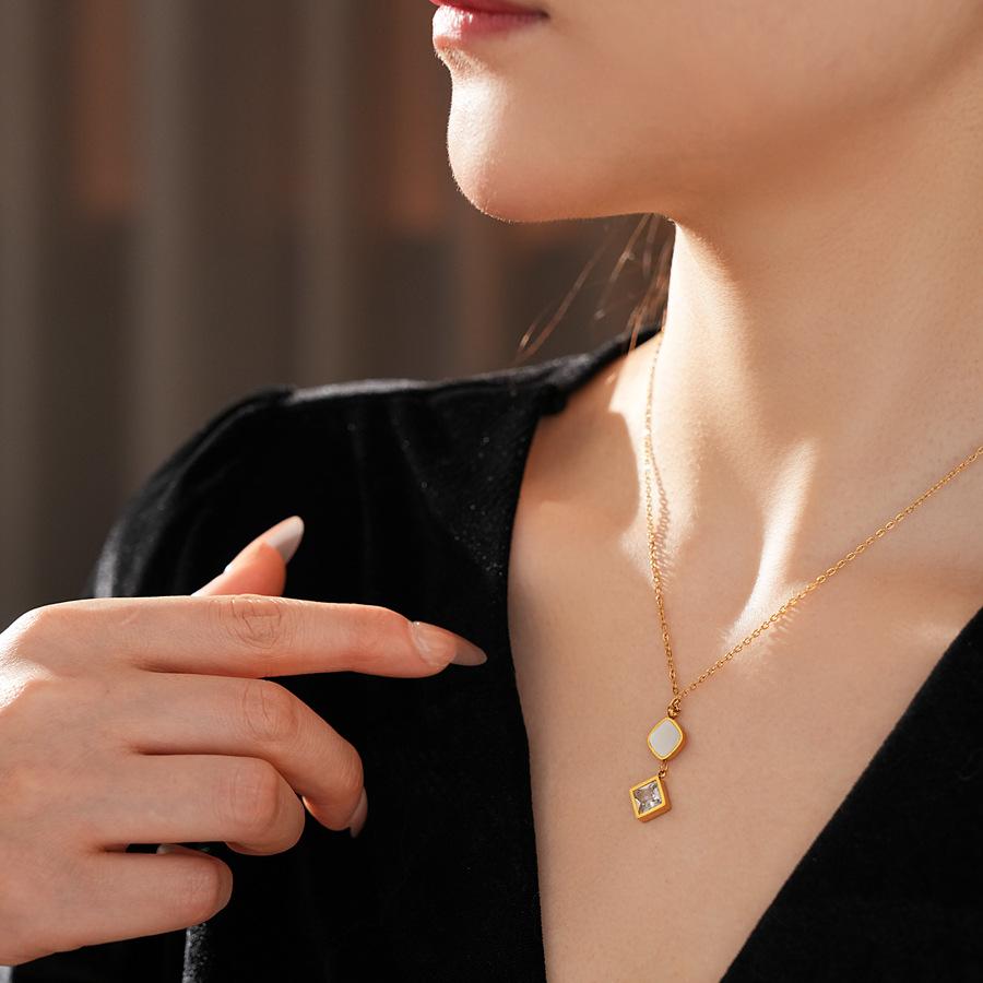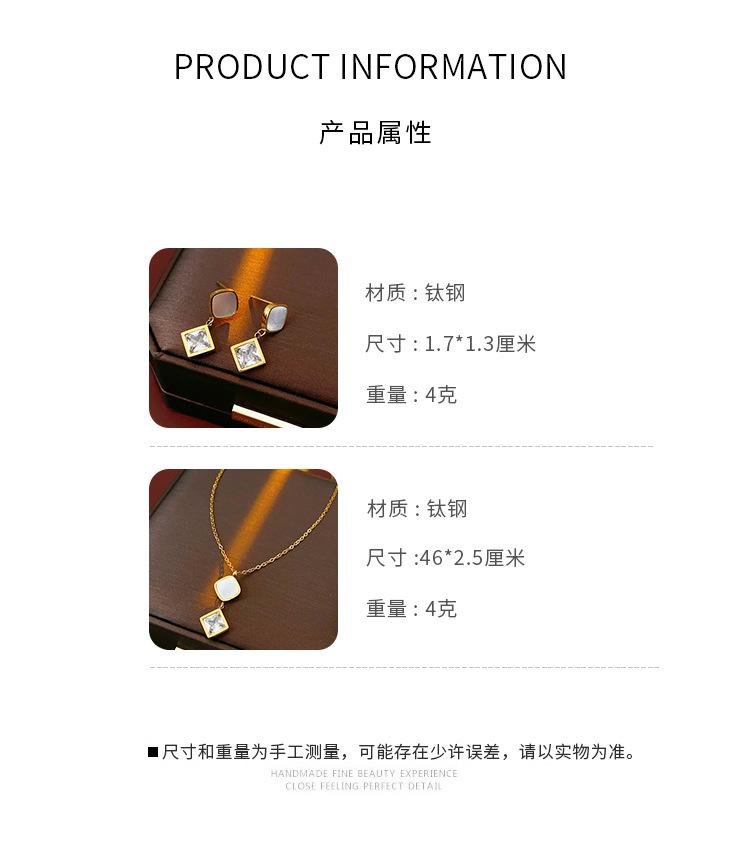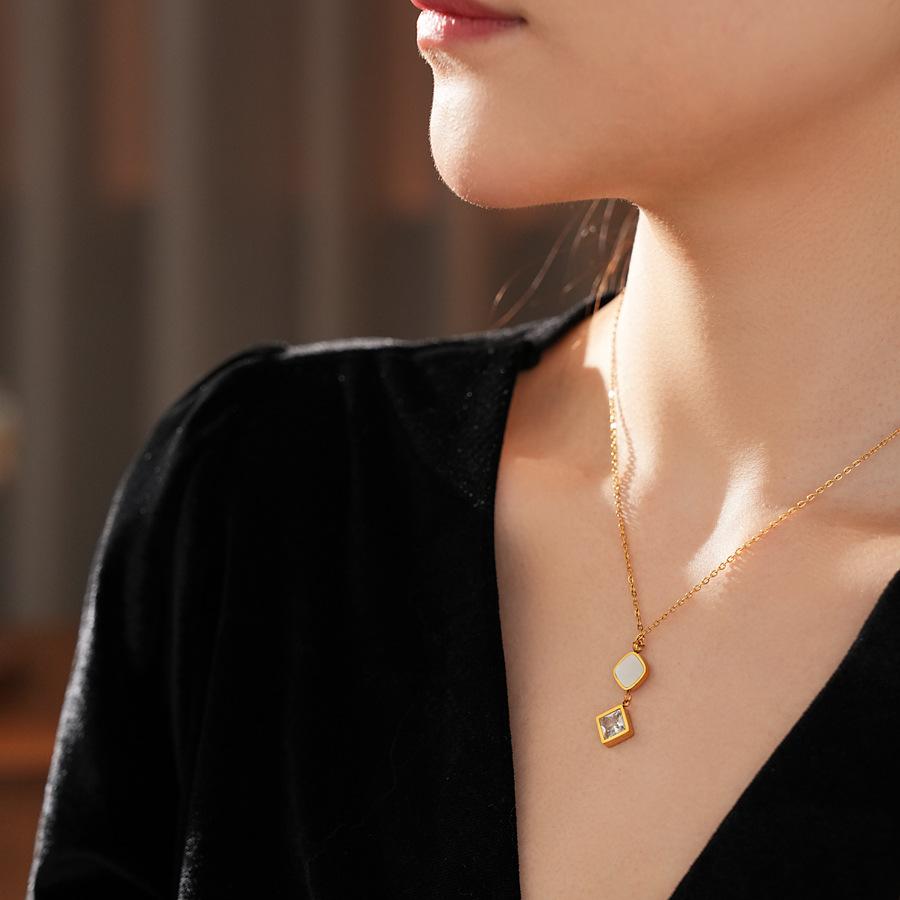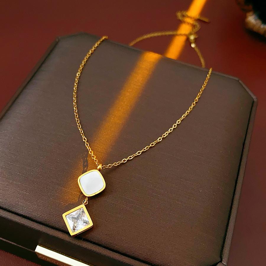 Aretes Collar Concha Romboidal Acero Titanio Versátil Retro No Se Desvanece Cadena Clavícula Lujo Ligero Nicho de Gama Alta Set para Mujer