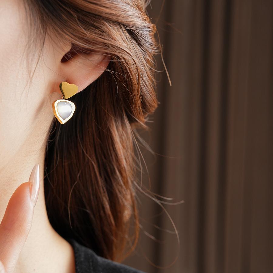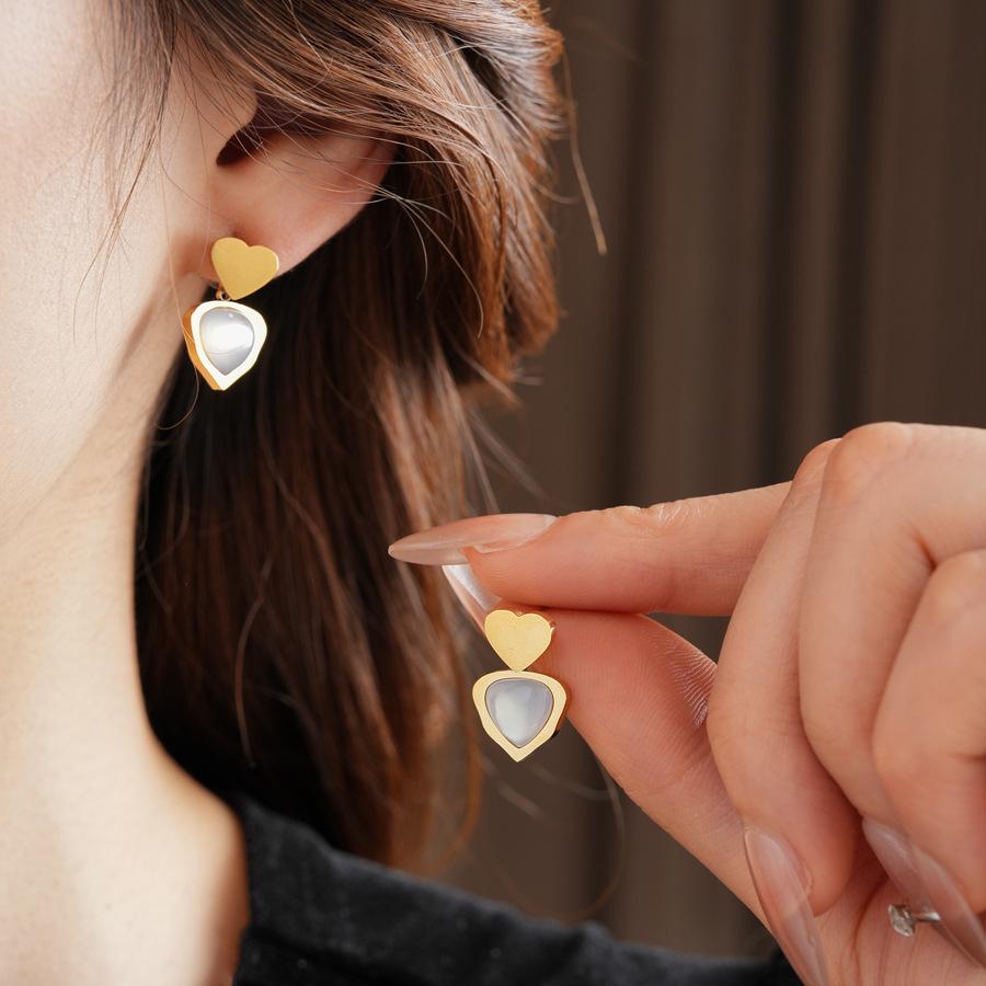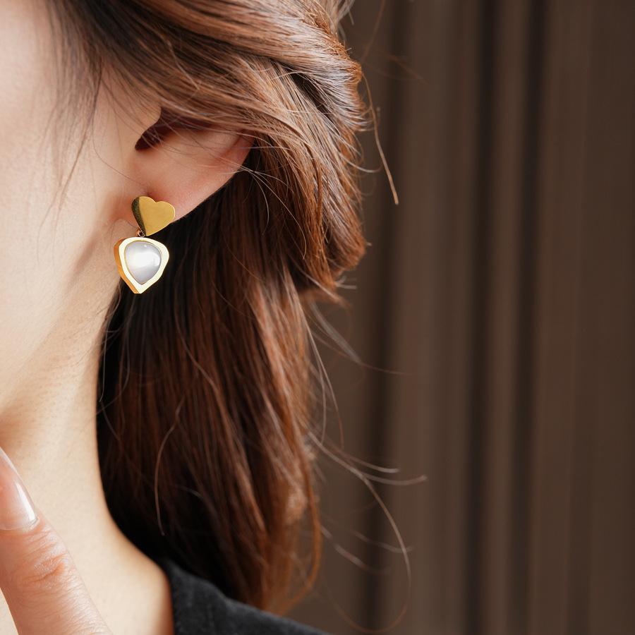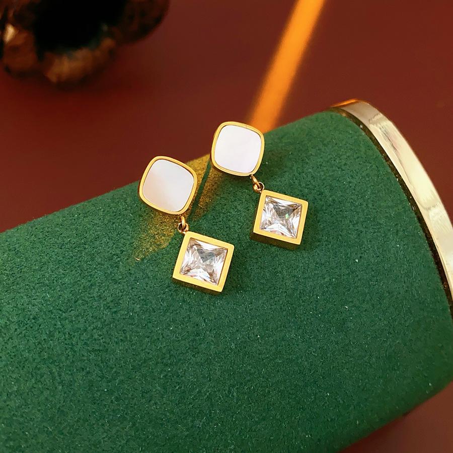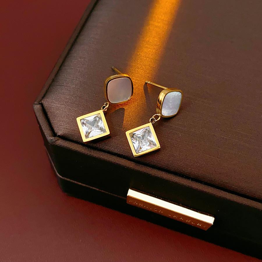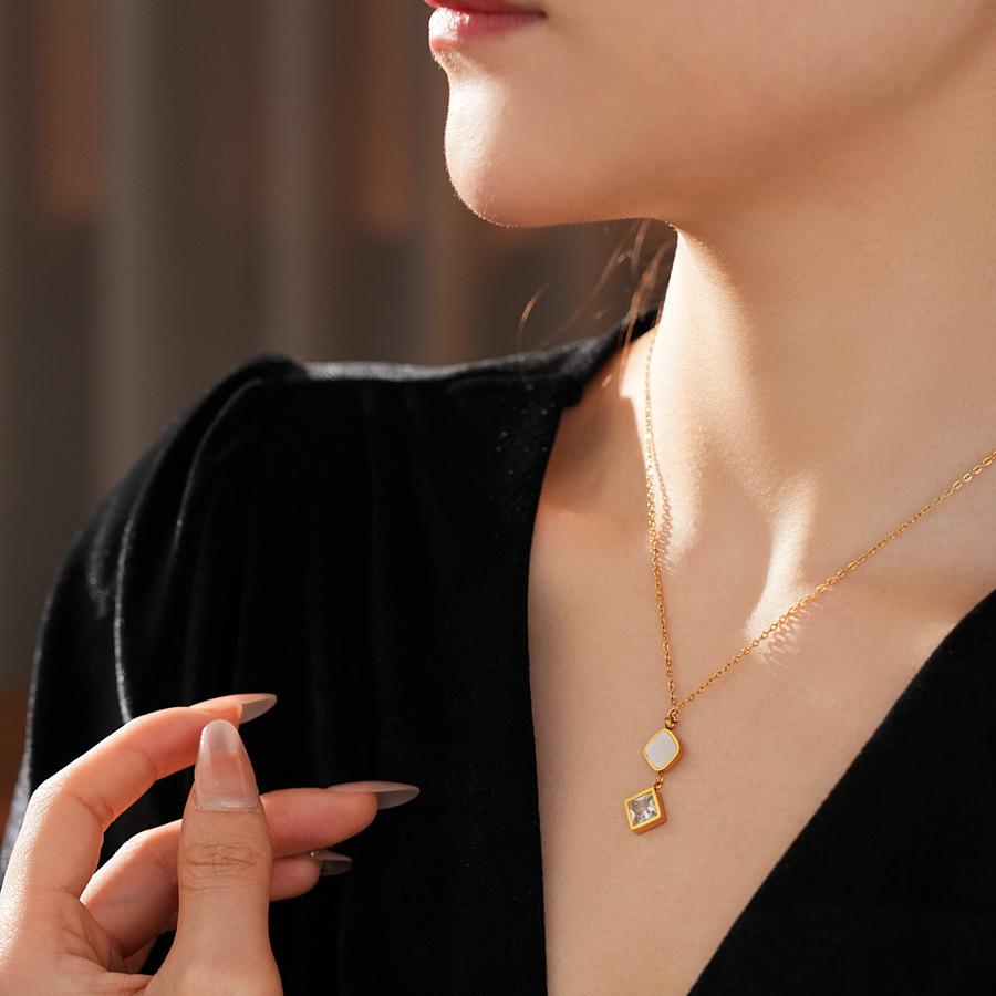 Aretes Collar Concha Romboidal Acero Titanio Versátil Retro No Se Desvanece Cadena Clavícula Lujo Ligero Nicho de Gama Alta Set para Mujer