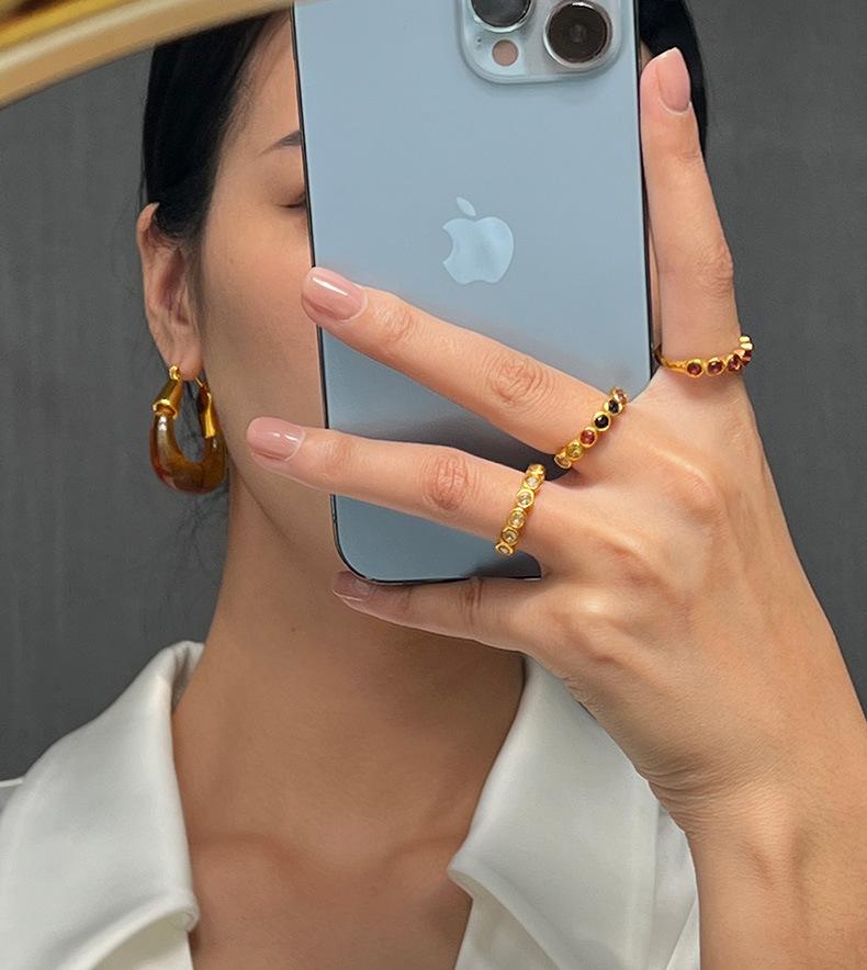 Anillo de acero de titanio chapado en oro de 18 quilates con estilo francés INS, con incrustaciones de circonitas resistentes a la decoloración, pulsera de moda combinable para mujer.