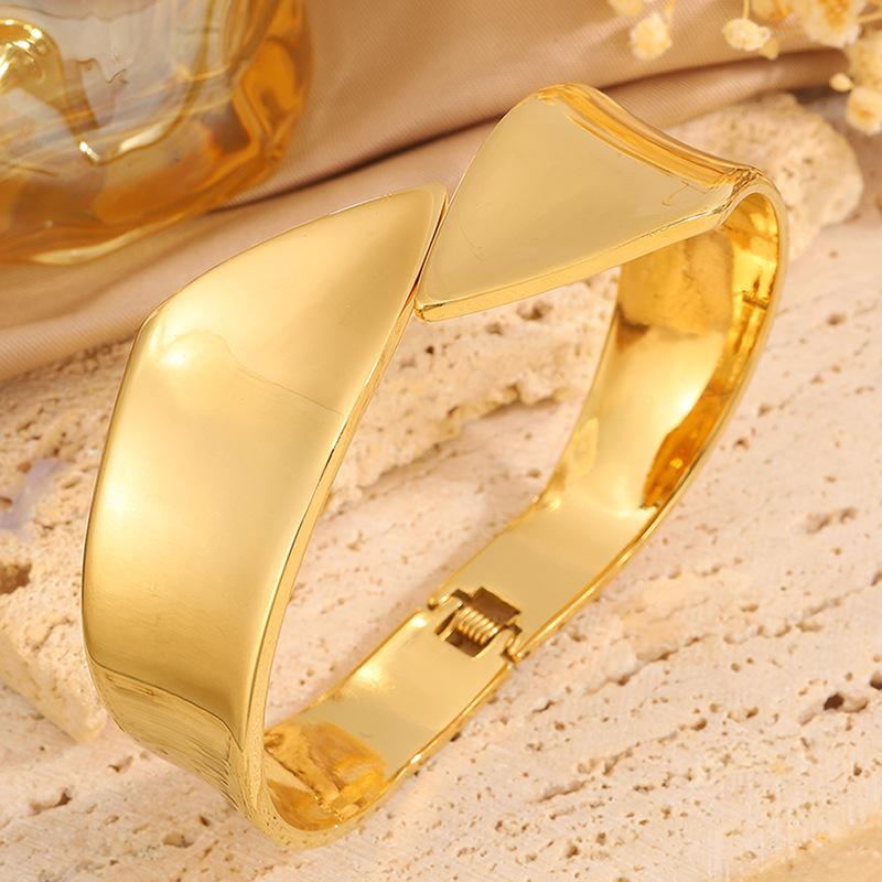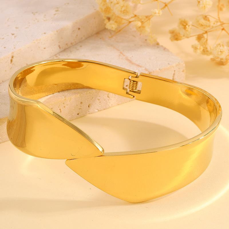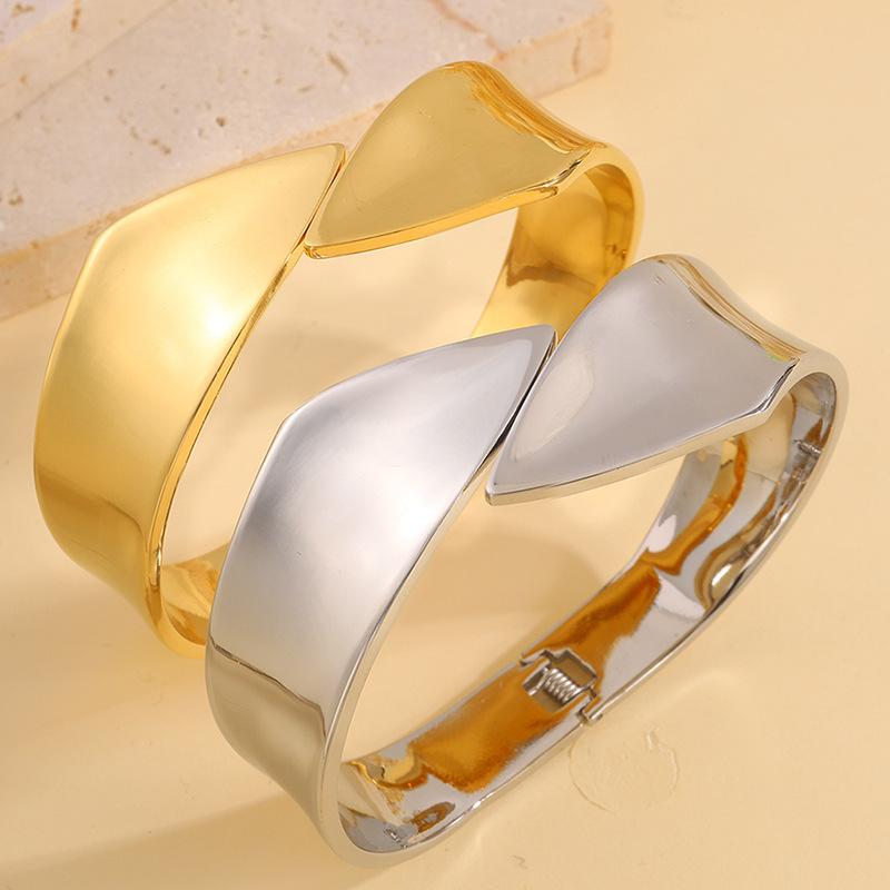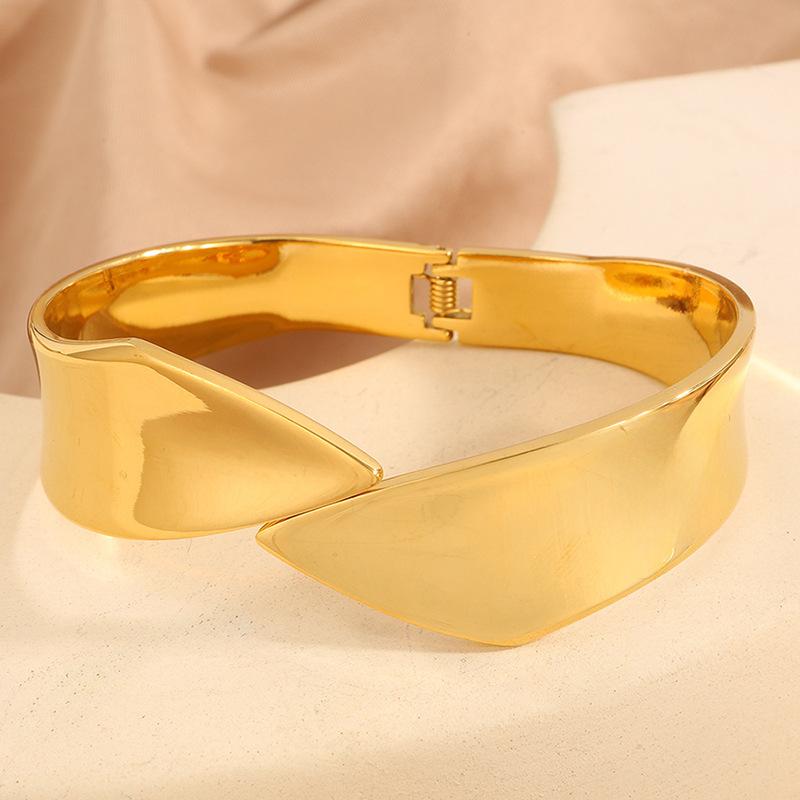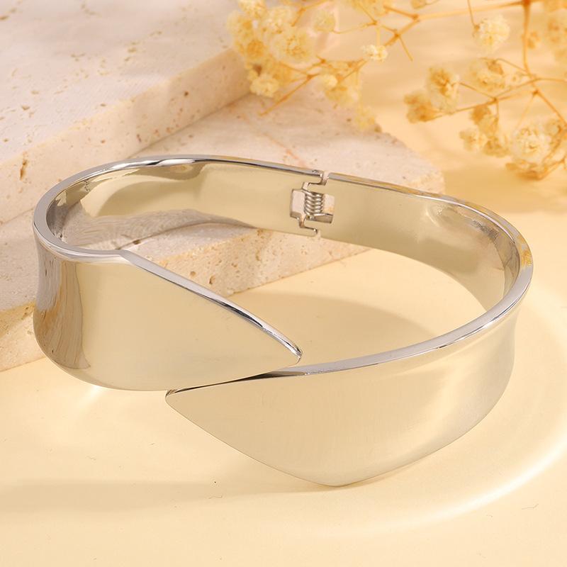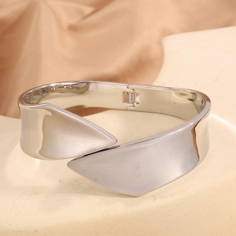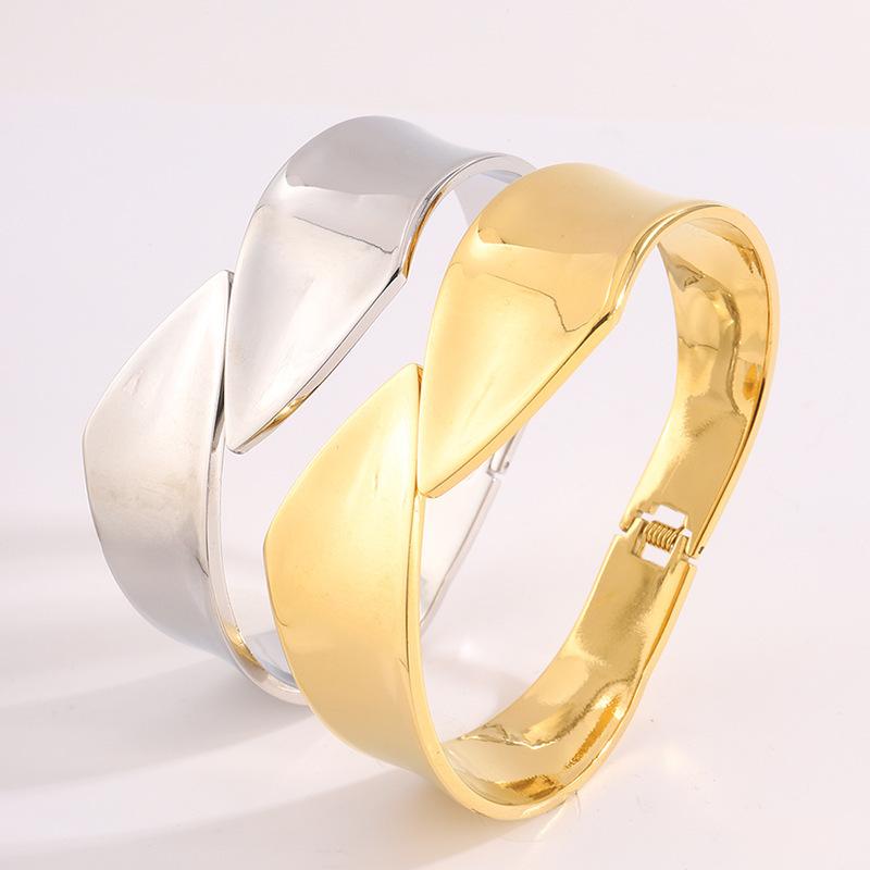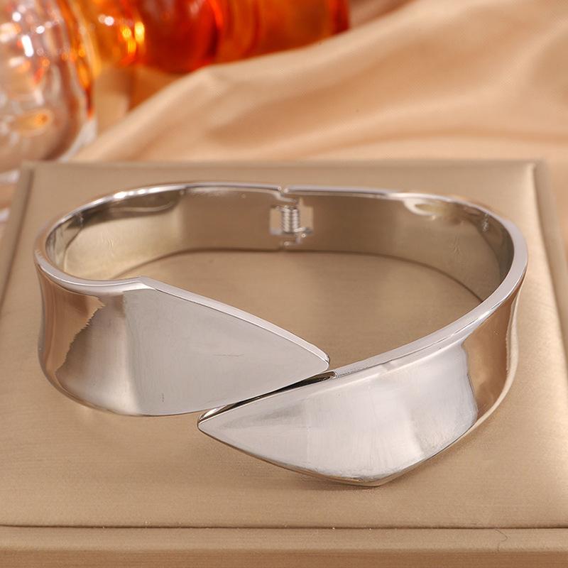 Pulsera de Apertura Irregular de Nueva Moda Transfronteriza para Mujer Pulsera Europea y Americana Pulsera de Acabado Pulido Espejo que No se Desvanece Joyería