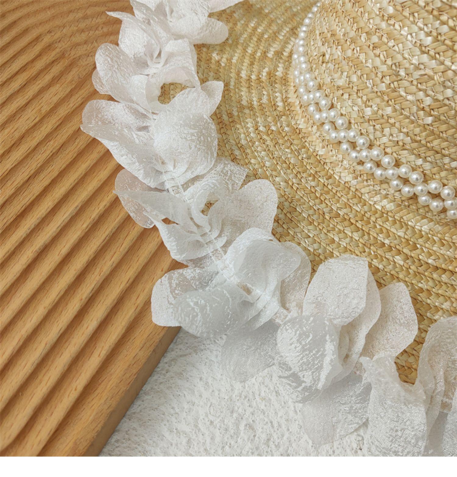 Hat top lace —b0152, Side-by-side pearls + lace flowers on the brim—b0152, Small pearls + brim lace flowers —b...