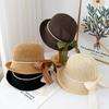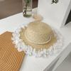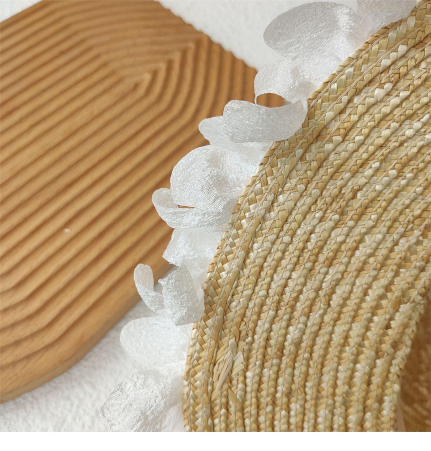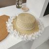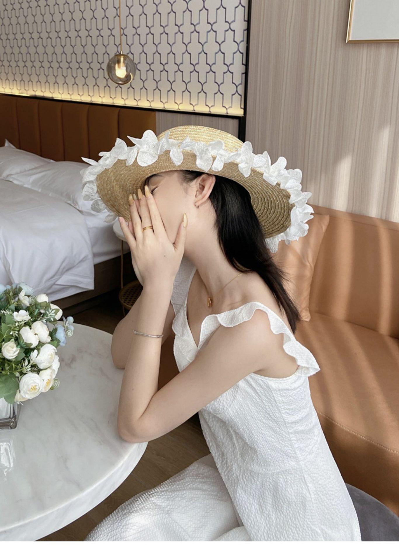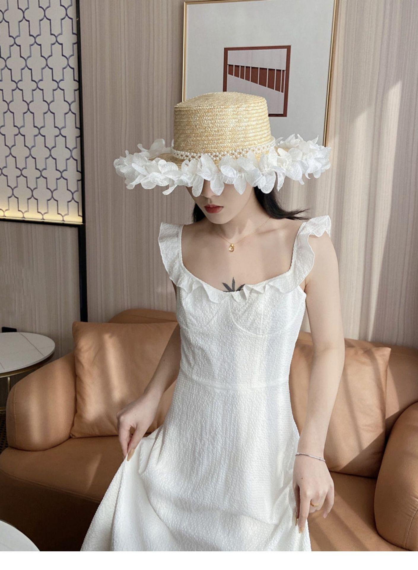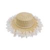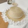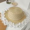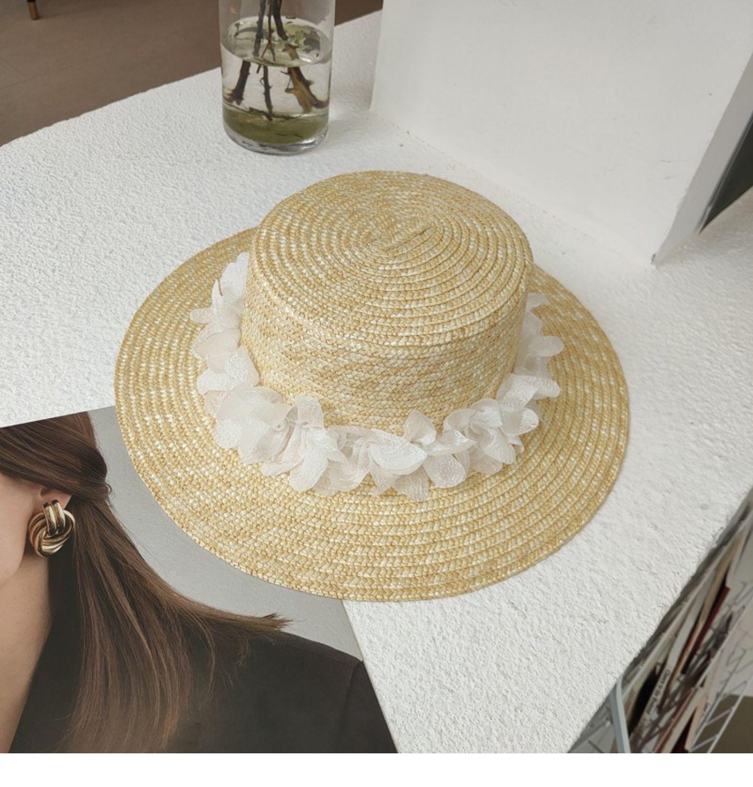 Sombrero de Paja de Copa Plana con Encaje de Perlas para Mujer Verano Viaje Foto Sombrero de Hada Sombrero para el Sol Protección Solar Sombrero para el Sol