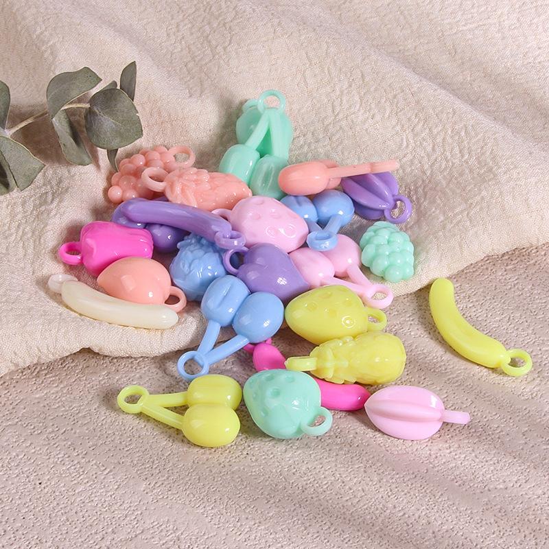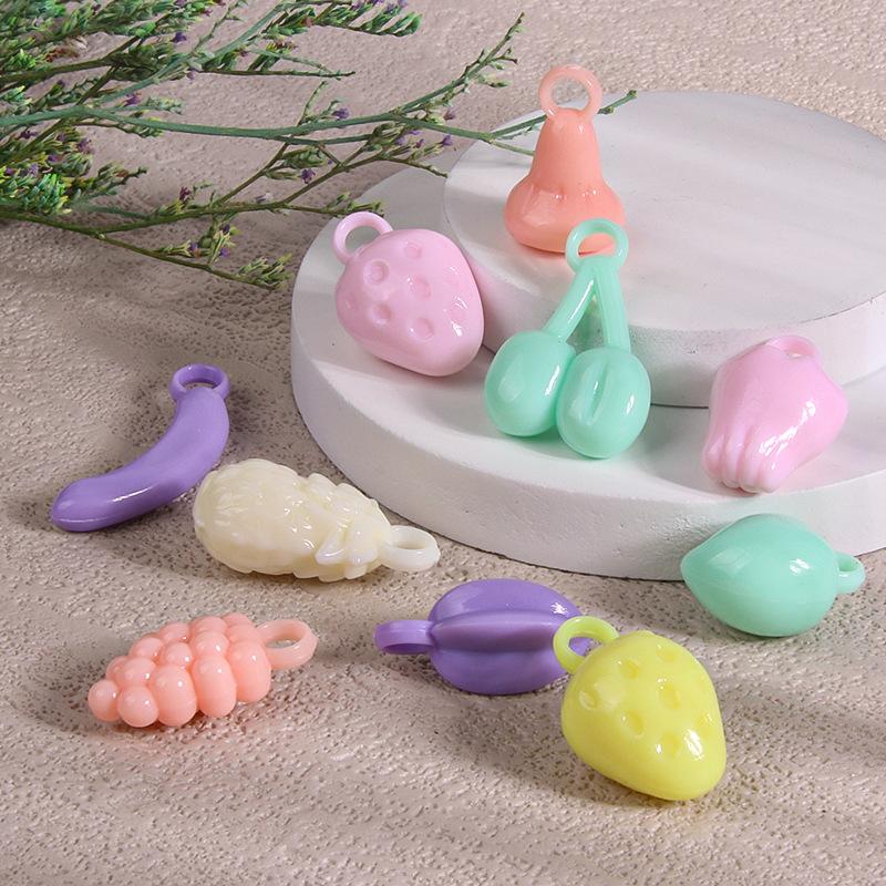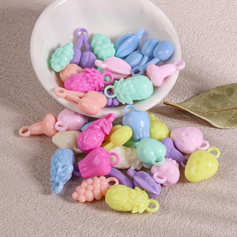 Acrílico Color Claro Estéreo Dibujos Animados Fresa Uva Fruta Colgante Cuentas DIY Cadena Colgante para Teléfono Móvil Adorno