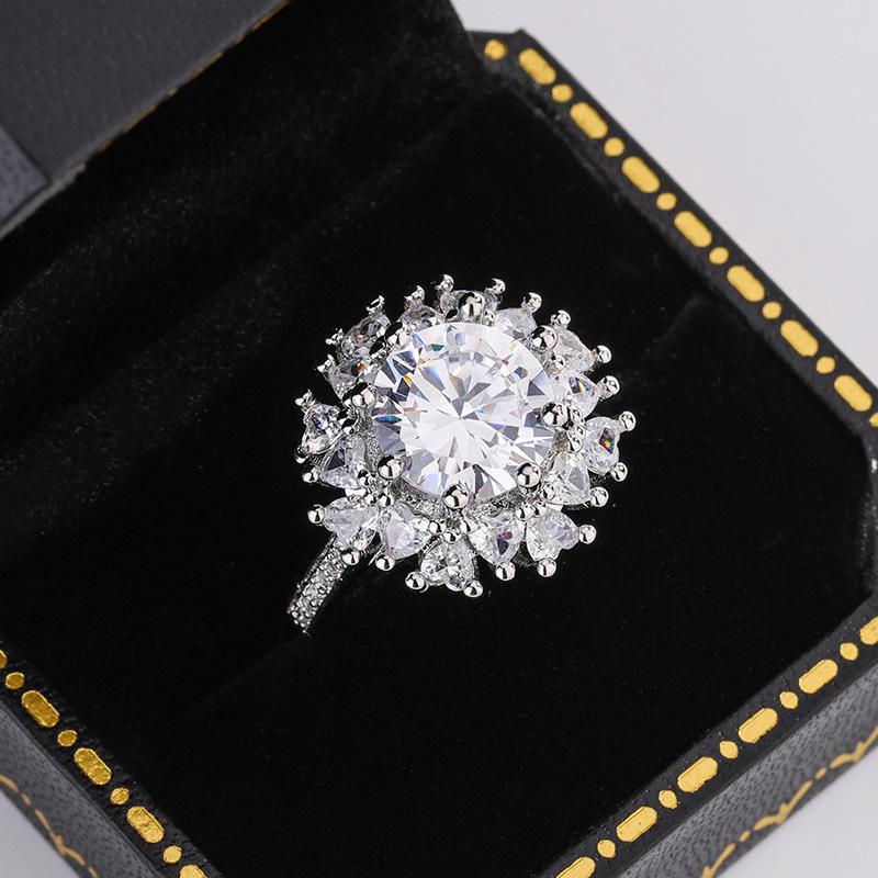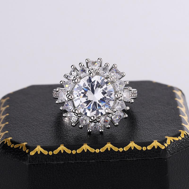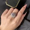 Nueva Pulsera Estilo Ins Europeo y Americano Estilo Lujo Ligero Exagerado Personalizado Flor Anillo Diamante Completo Anillo de Dedo Moderno Combinable