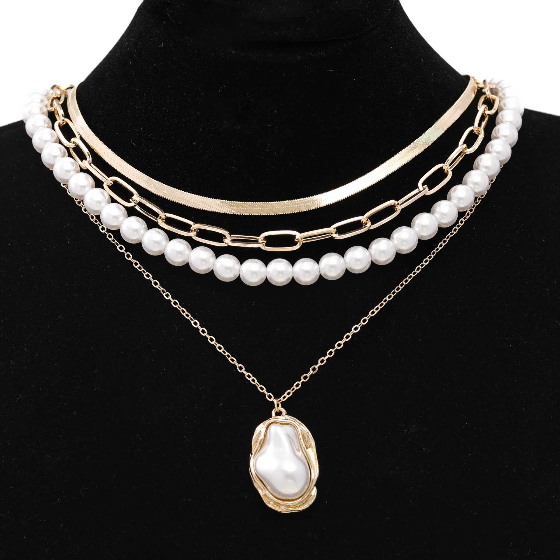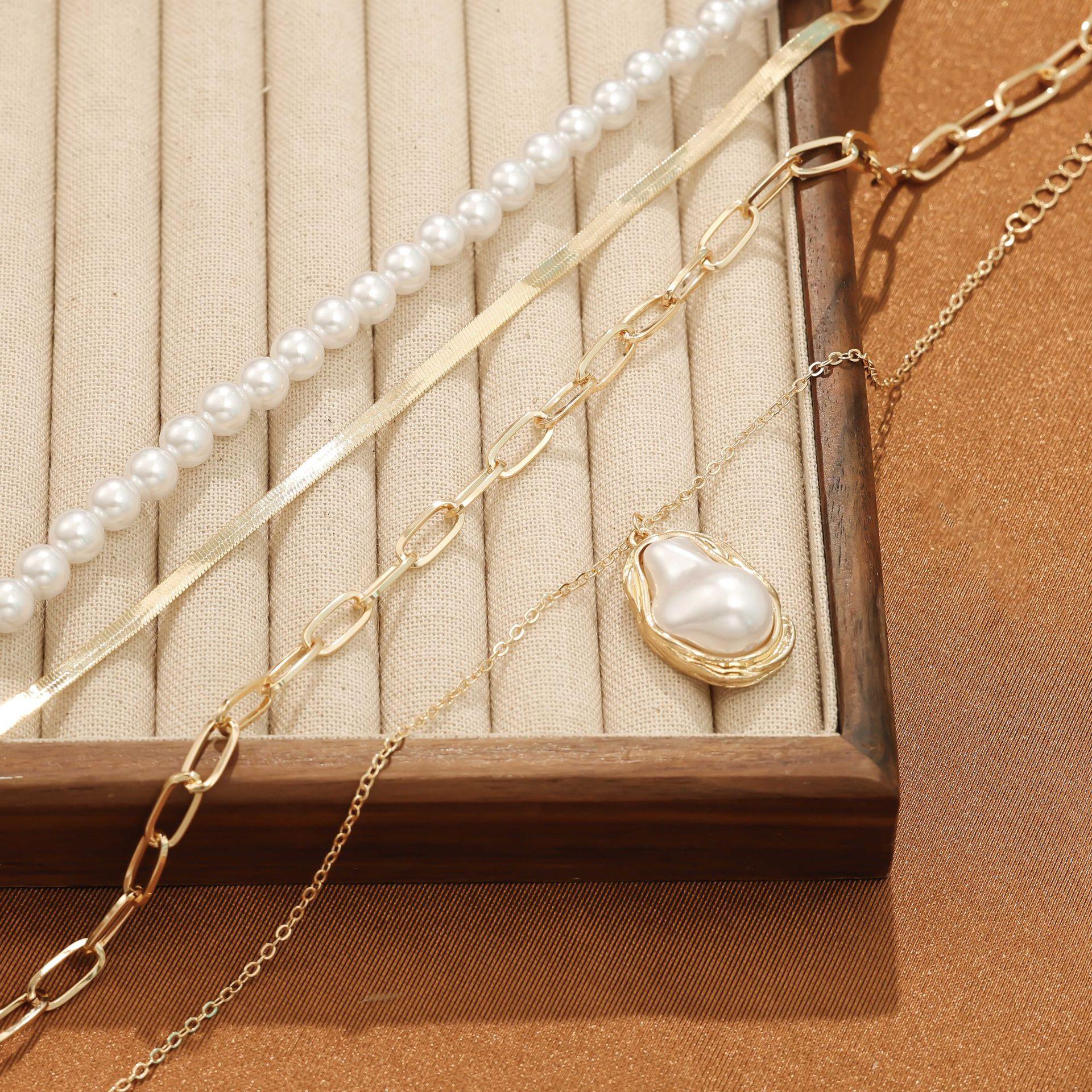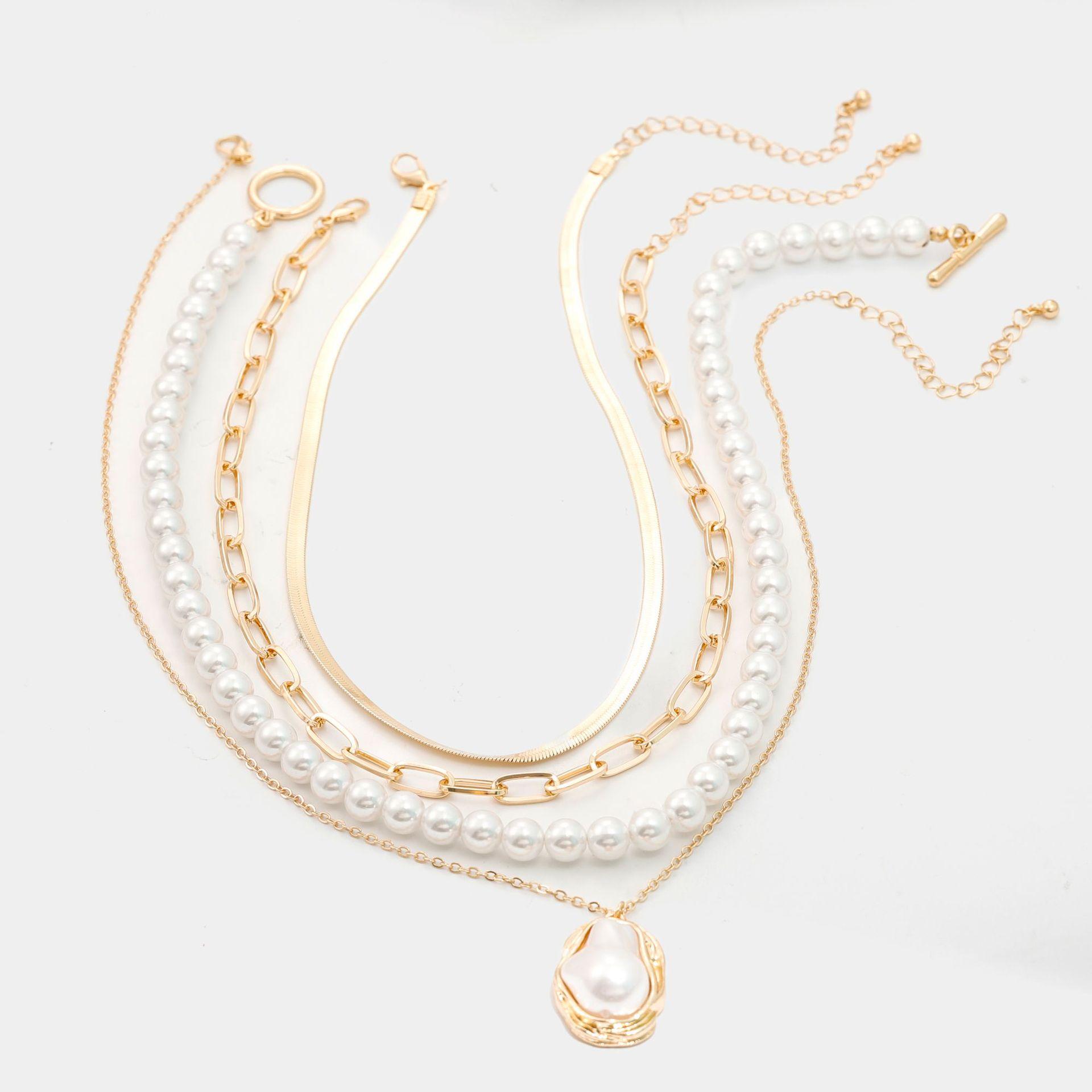 Europeo y Americano Transfronterizo Retro Metal Cadena de Hueso de Serpiente Collar de Perlas de Imitación con Forma Especial Juego para Damas Banquete Fiesta Regalo de Vacaciones