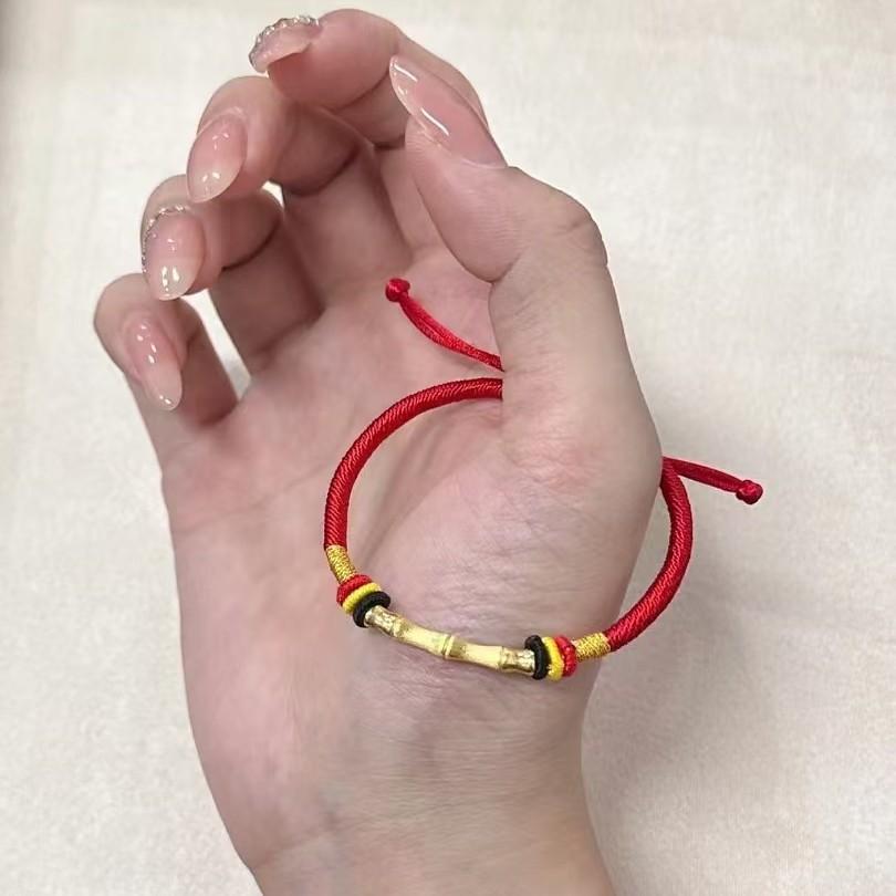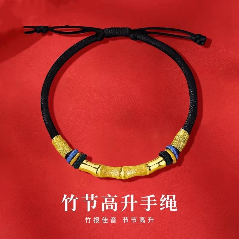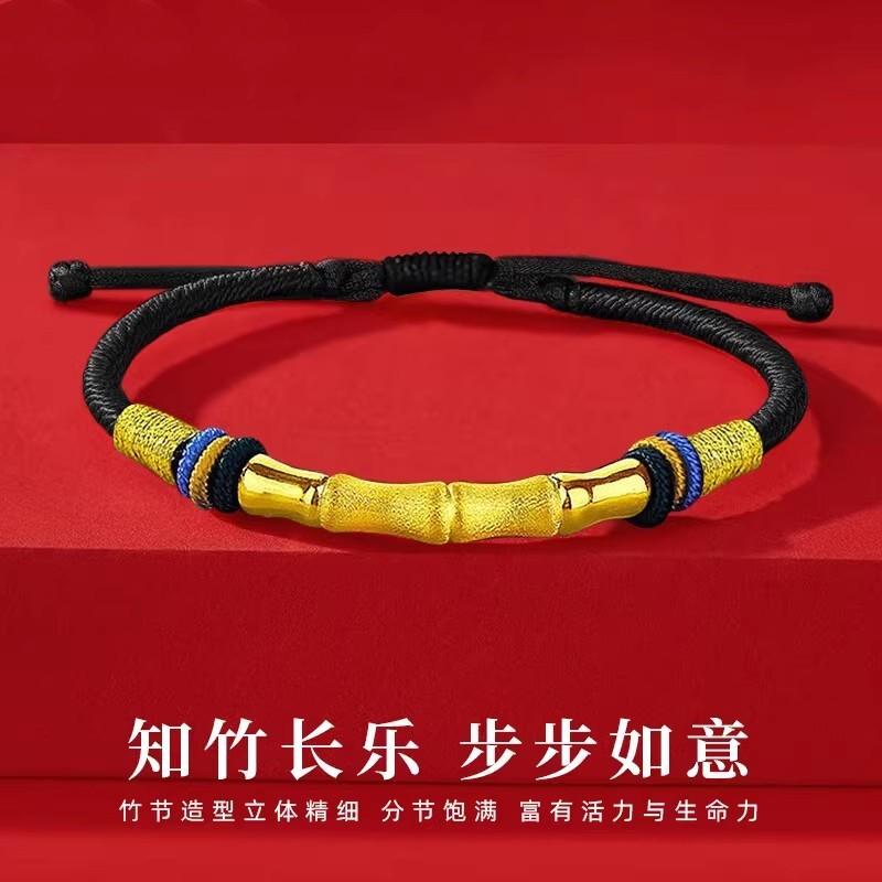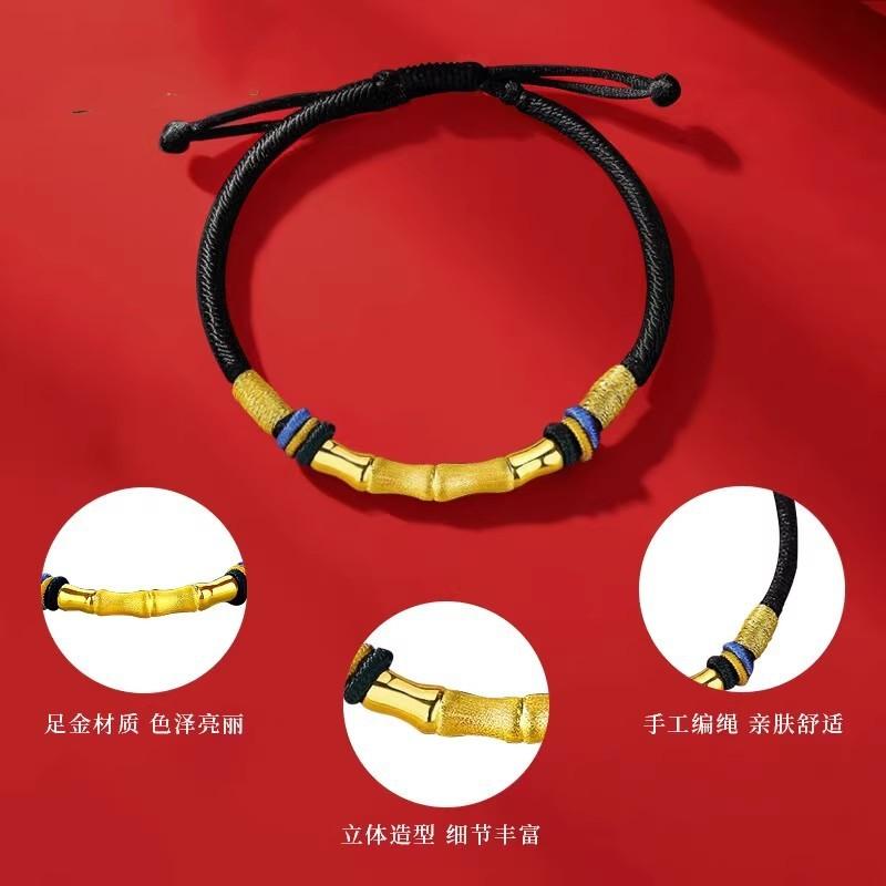 Collar con colgante de bambú esmerilado de oro puro 999 3D de oro duro ascendente DIY pulsera tubo doblado de oro pulsera de cuerda trenzada