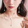 Collar de Cuentas con Hebilla de Flor de Ciruelo Doble y Borla Doble Joyería Cadena de Lana Cadena a Juego Cadena para Clavícula para Mujer Accesorios Simples, Nuevos y Modernos