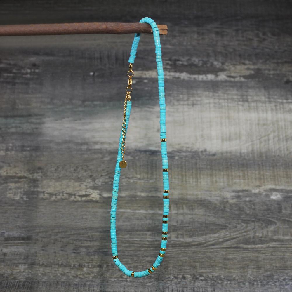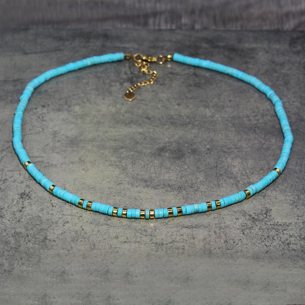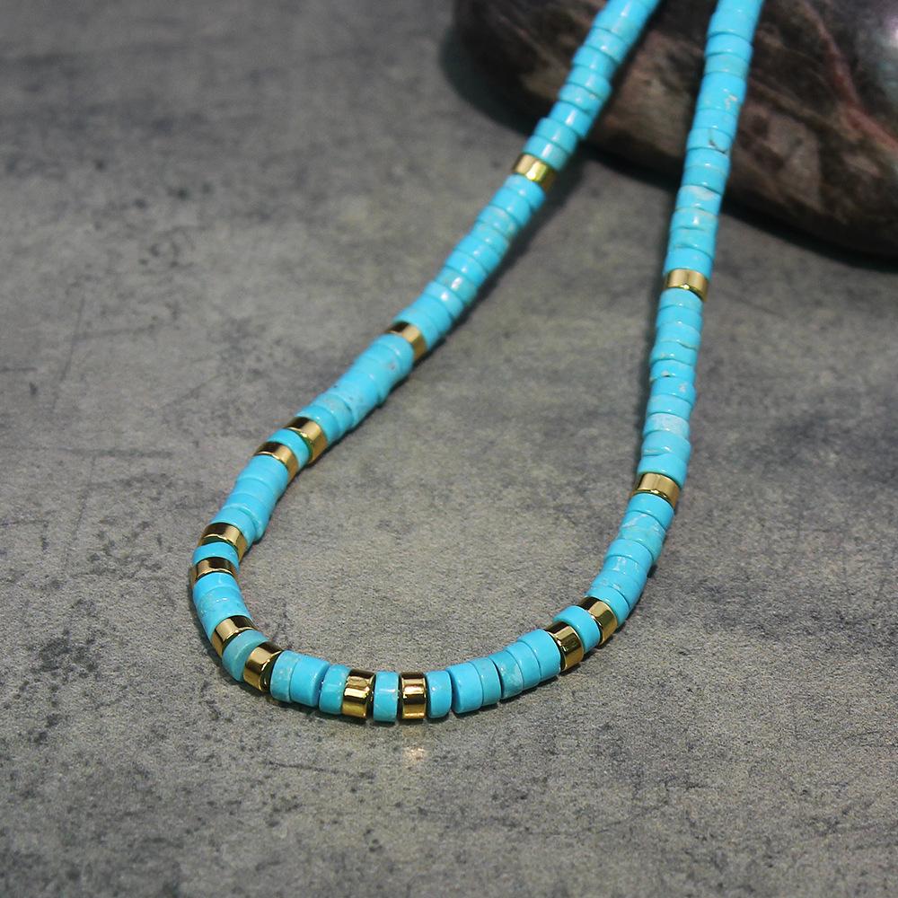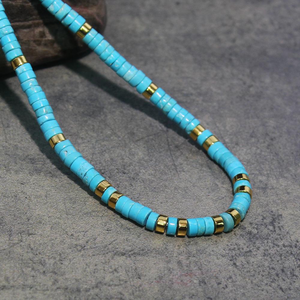 Cadena Clavicular Turquesa al por Mayor Hecha a Mano con Cuentas de Piedra Semipreciosa Cadena con Cuentas Collar de Piedra Europeo y Americano Anillo de Cuentas