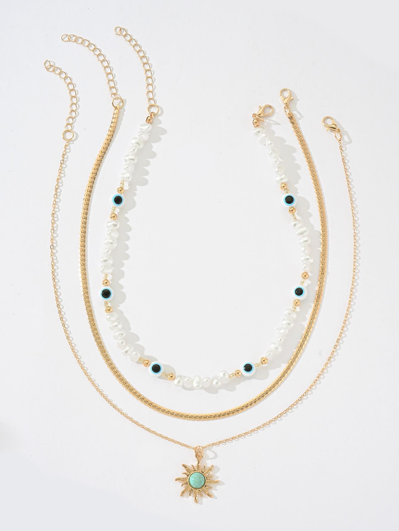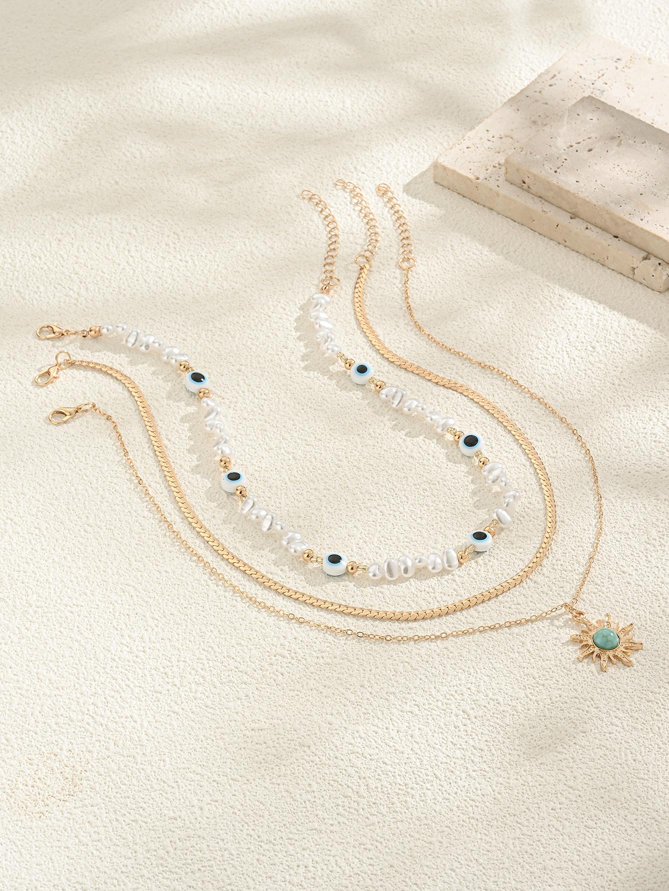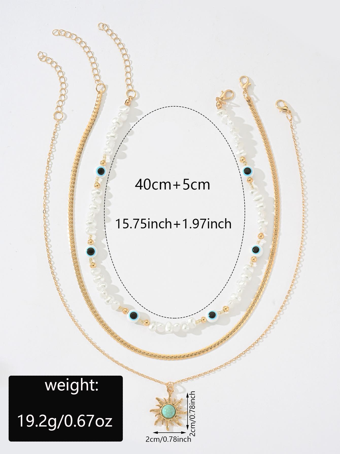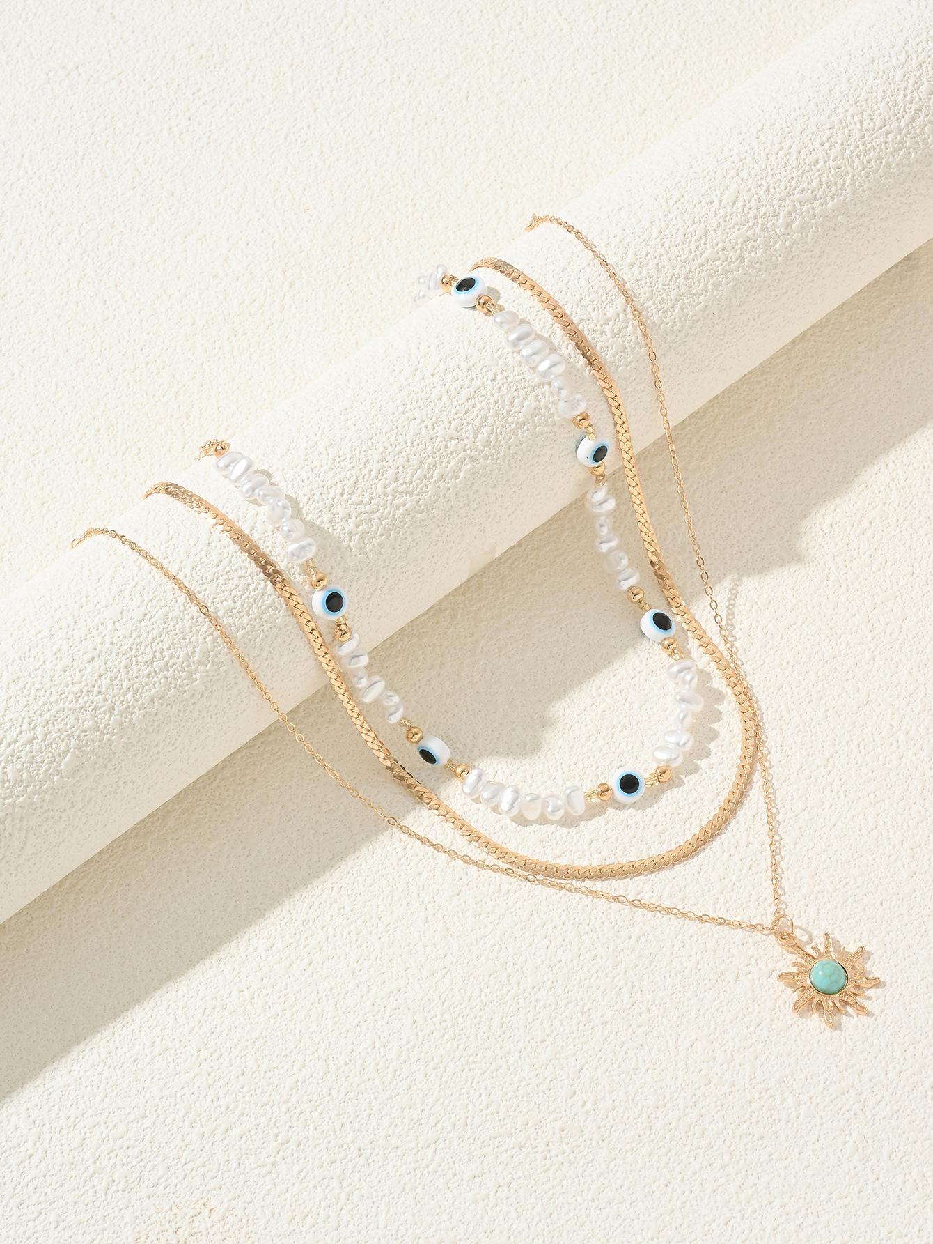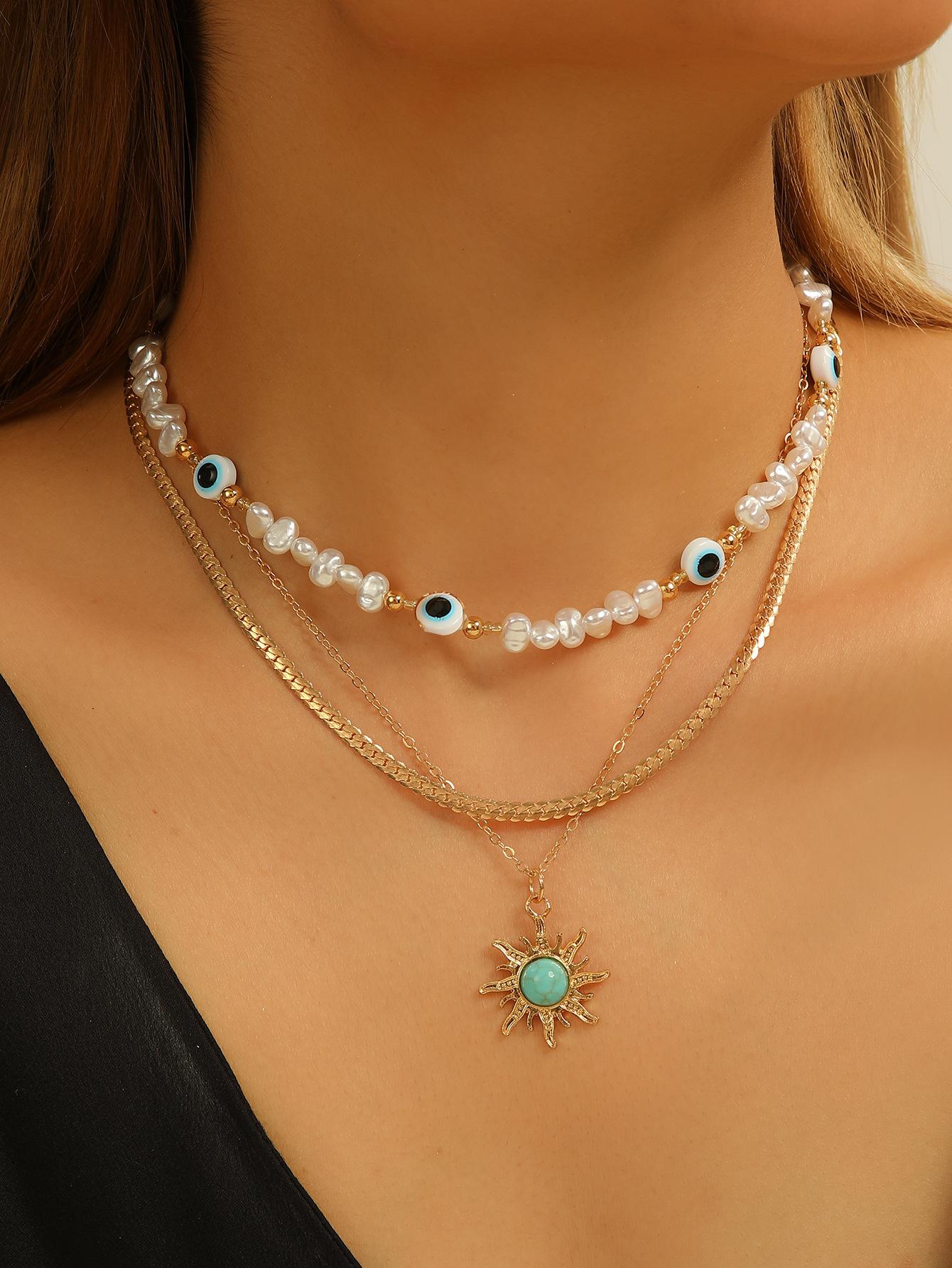 Collar Largo de Perlas al Por Mayor Europeo y Americano Transfronterizo Vintage Estrella de Ocho Puntas en Capas Joyería Colgante Cadena de Clavícula de Alta Gama para Mujer