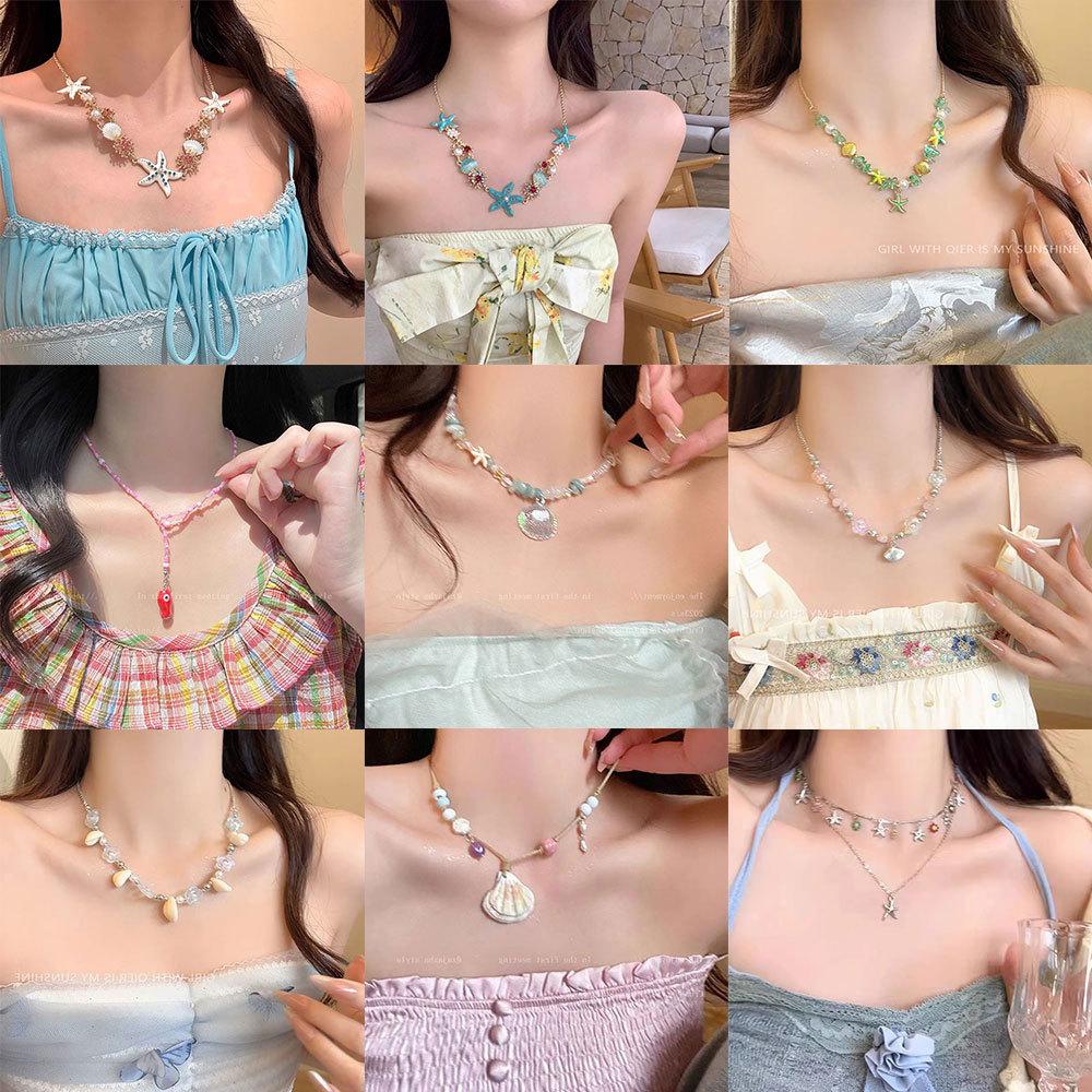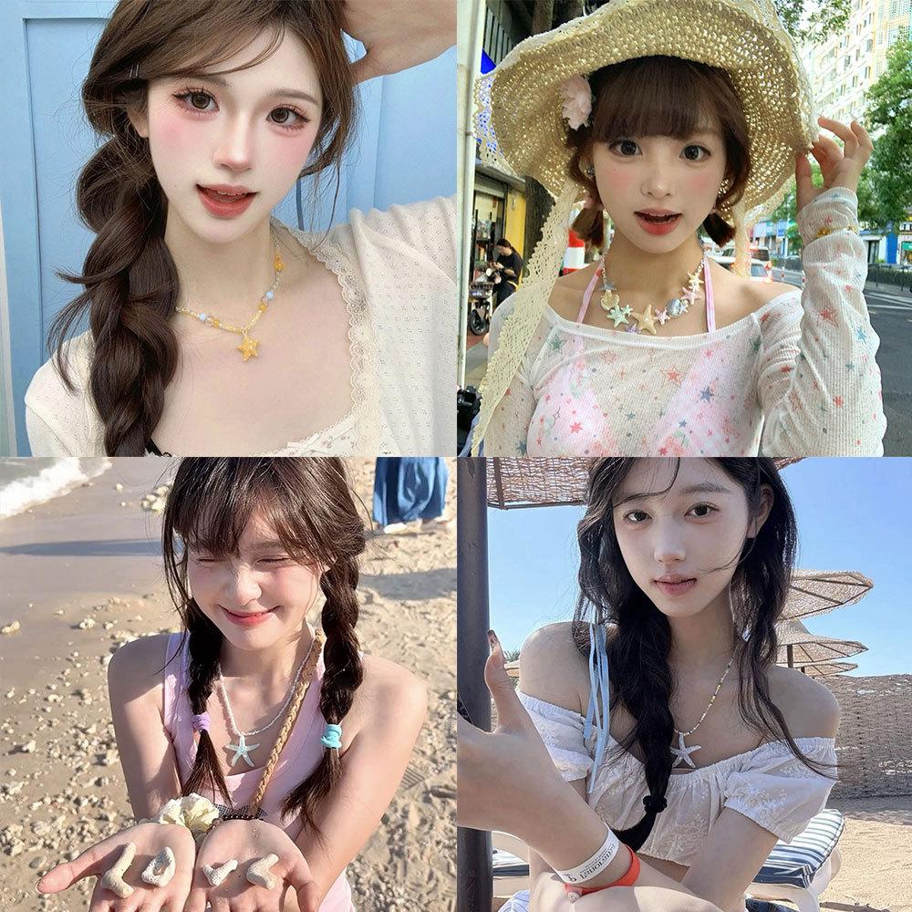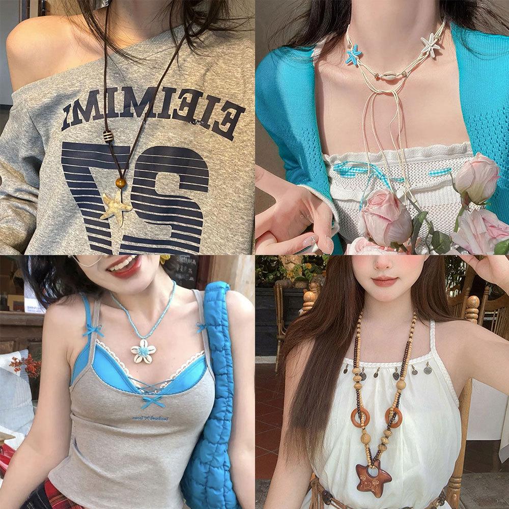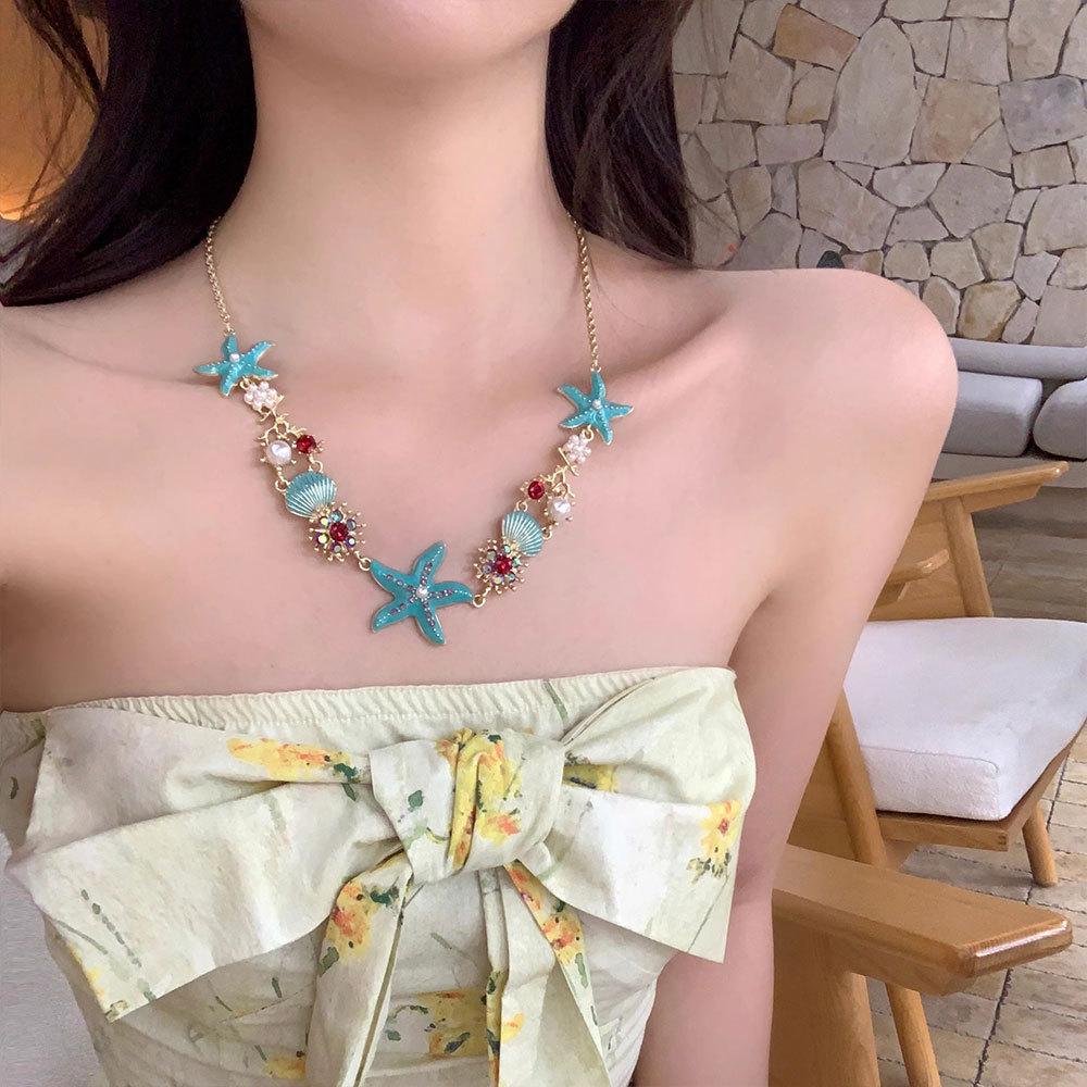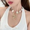 Collar de Perlas con Concha de Estrella de Mar Lindo Estilo Vacaciones Marinas Nicho de Hadas Ins Cadena Clavícula Masculina Accesorios