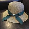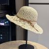 Sombrero de Paja de Nuevo Estilo para Mujer en Verano, Sombrero de Pescador de Ala Ancha para Protección Solar, Estilo Coreano Fresco Versátil para Playa, Sombrero de Paja para el Sol con Sombrilla
