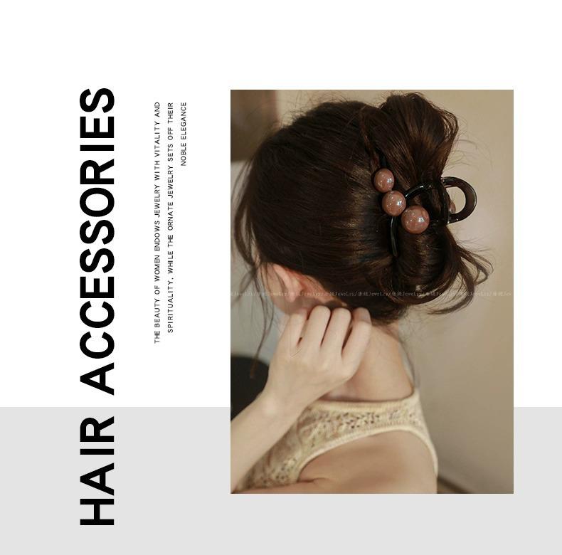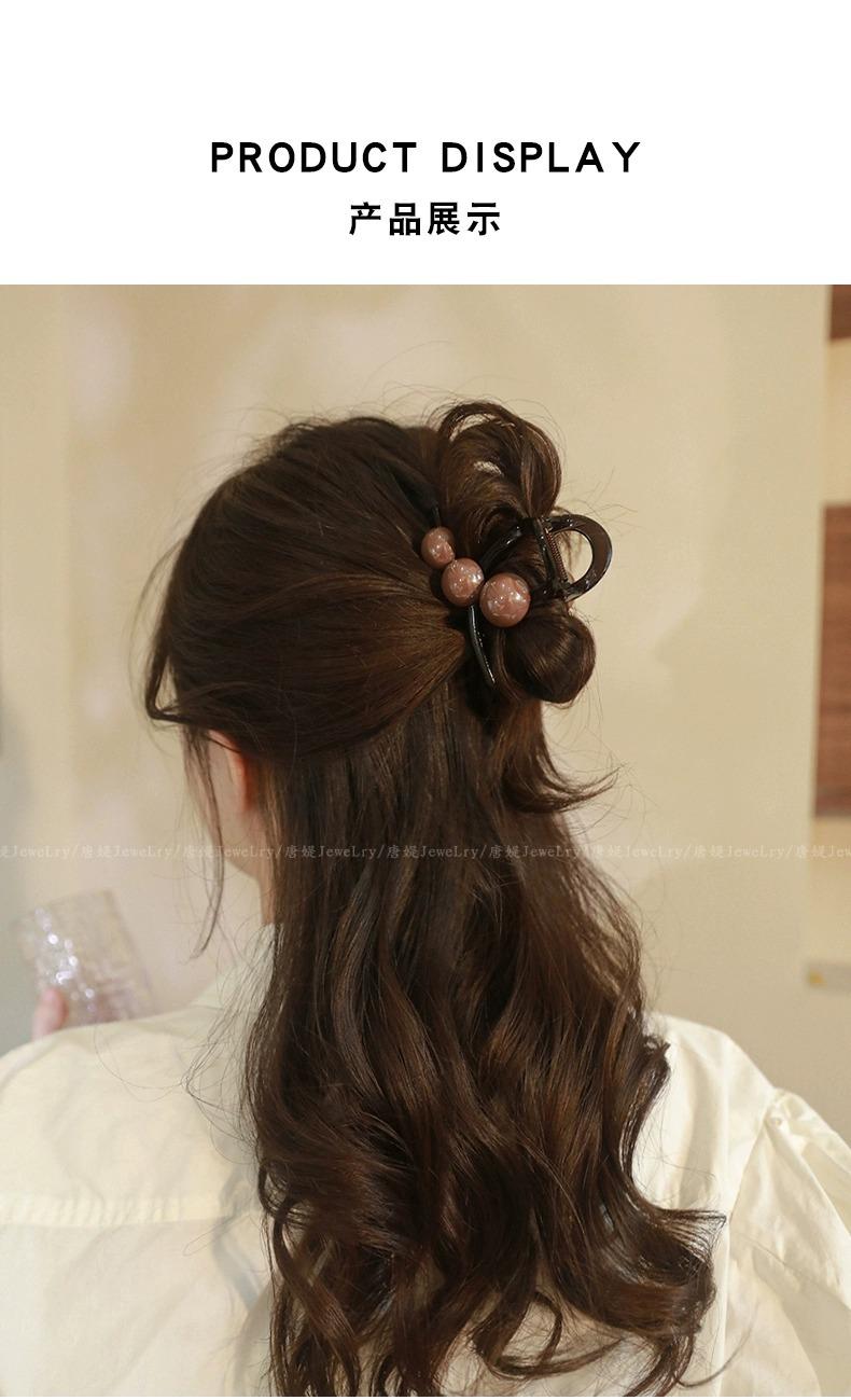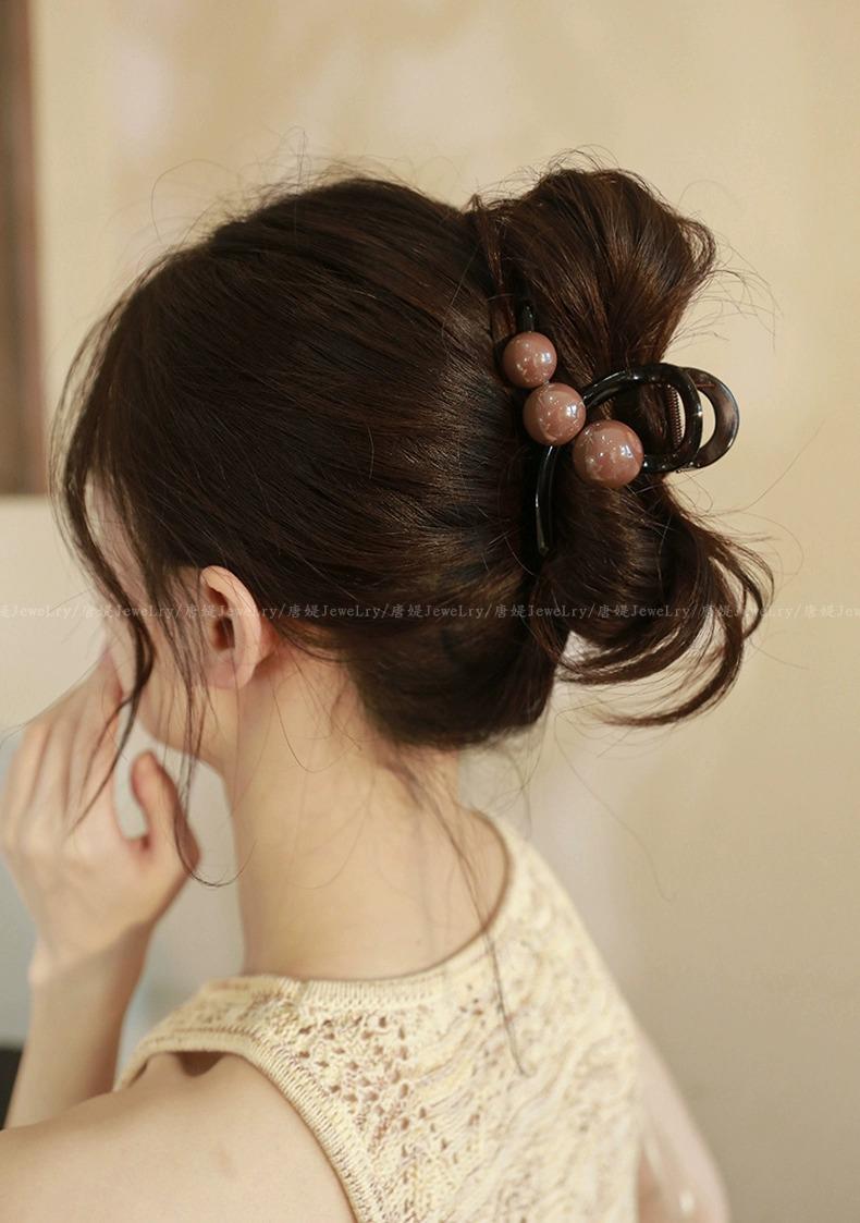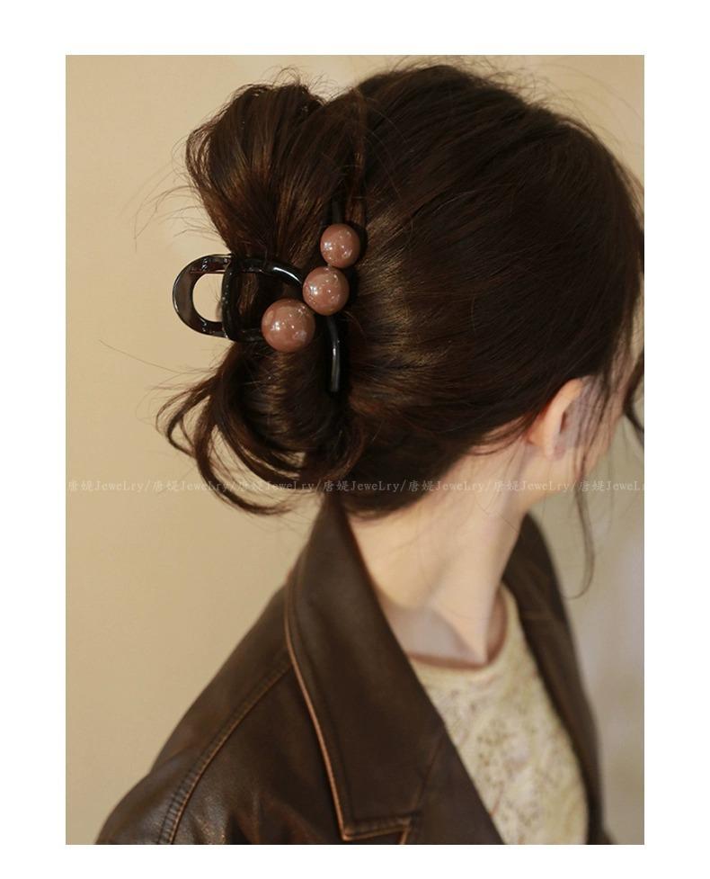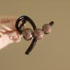 Pasador de Pelo de Perlas Marrones Vintage Clip de Tiburón para el Cabello de Mujer Pinza de Agarre Tocado Elegante de Alta Gama Clip Pasador