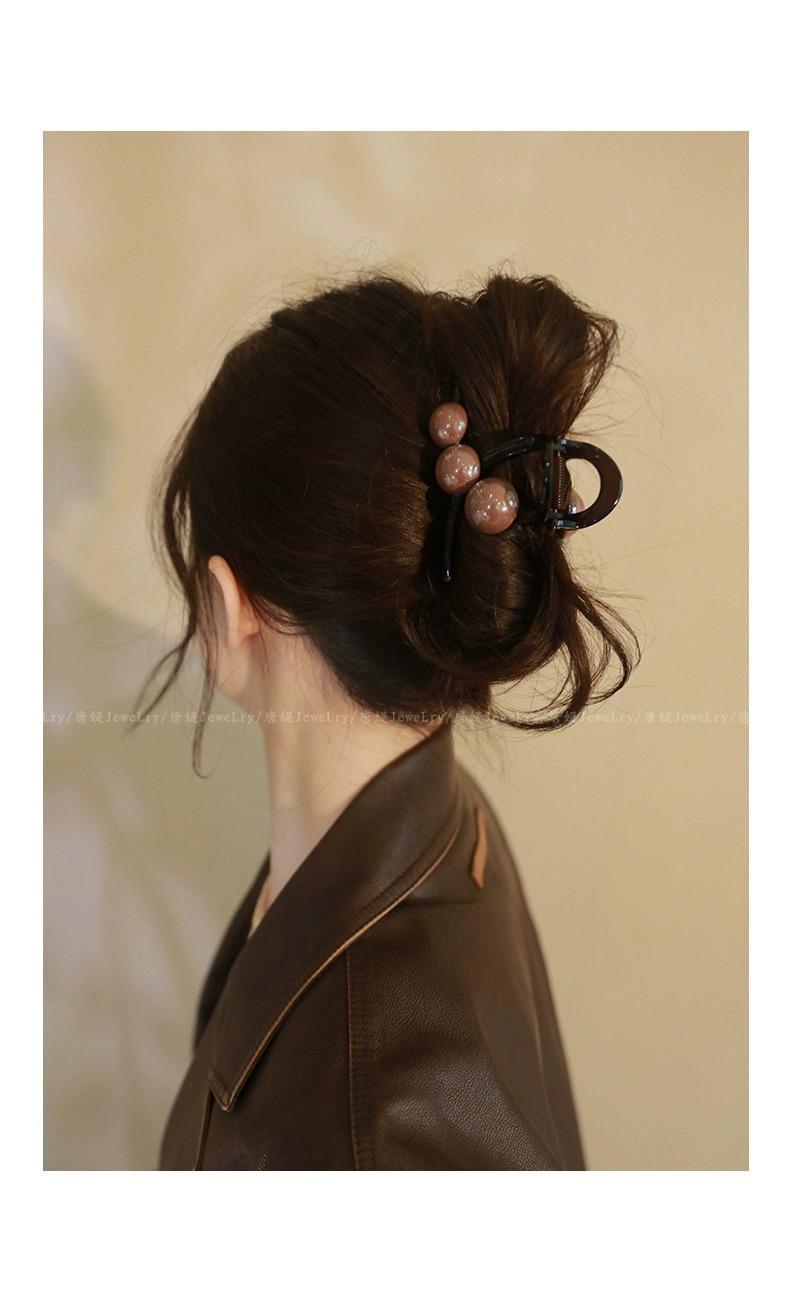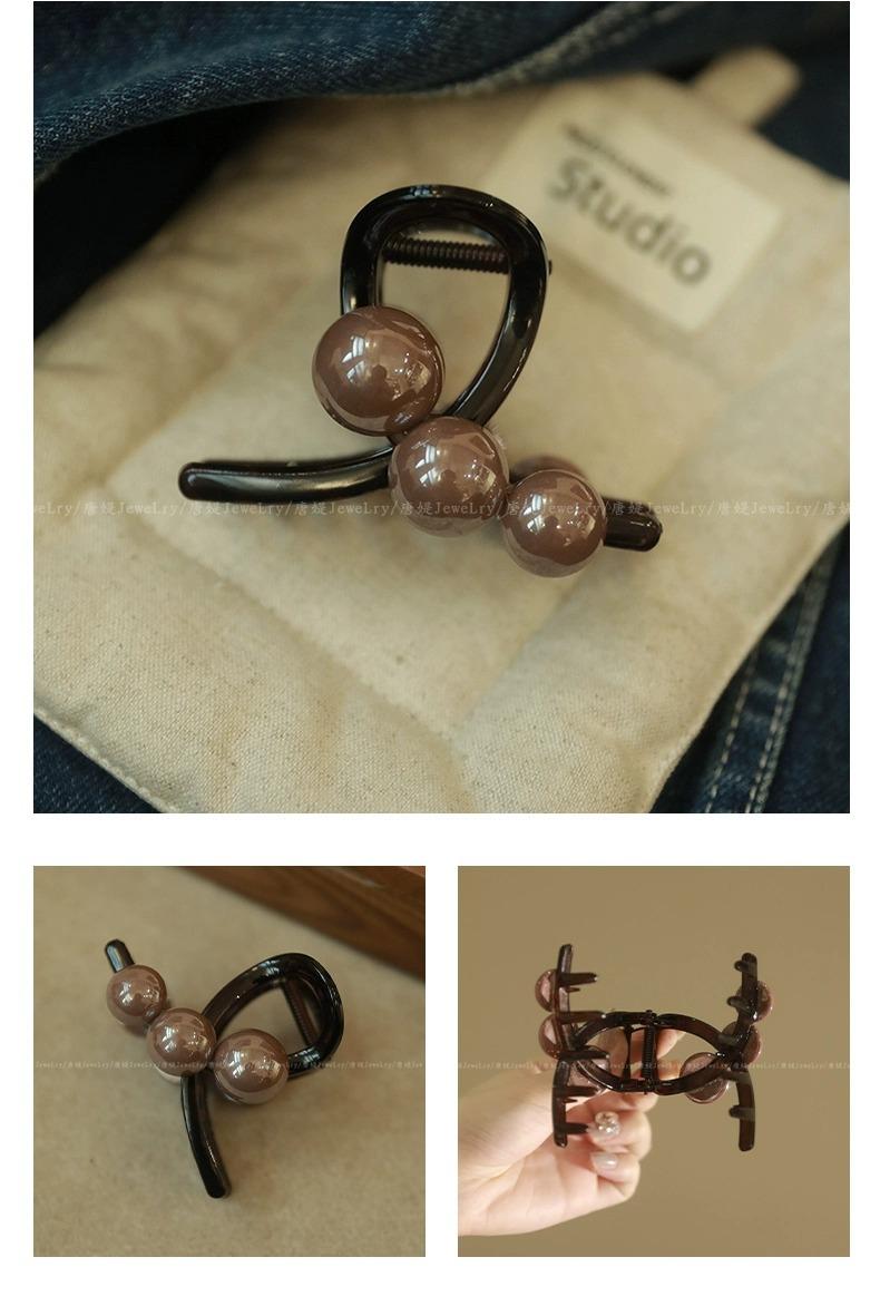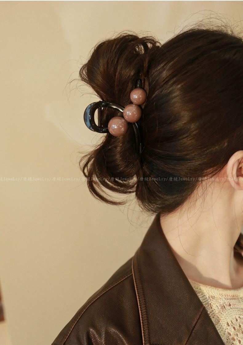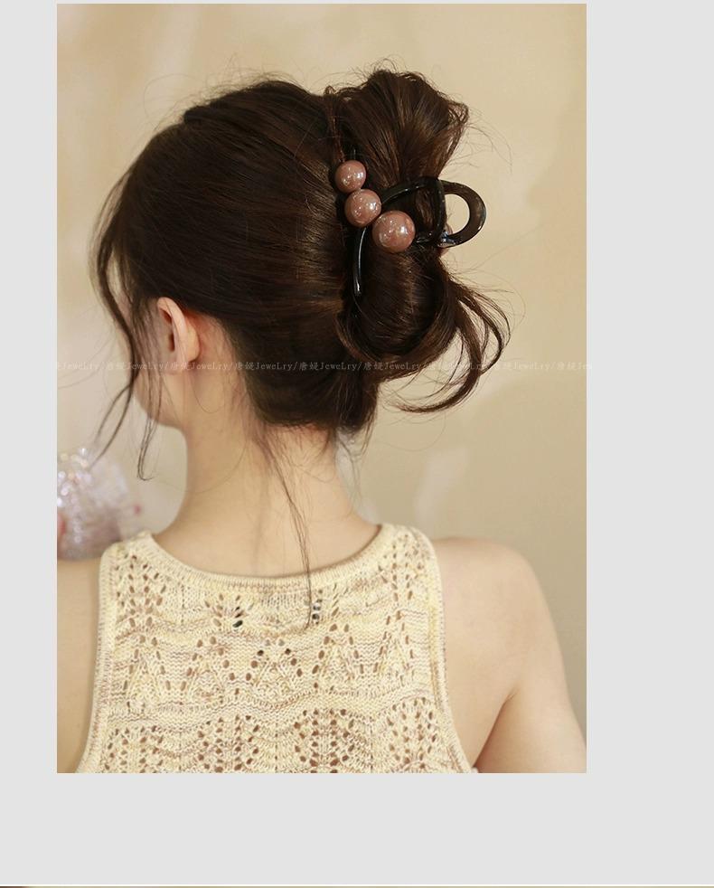 Pasador de Pelo de Perlas Marrones Vintage Clip de Tiburón para el Cabello de Mujer Pinza de Agarre Tocado Elegante de Alta Gama Clip Pasador