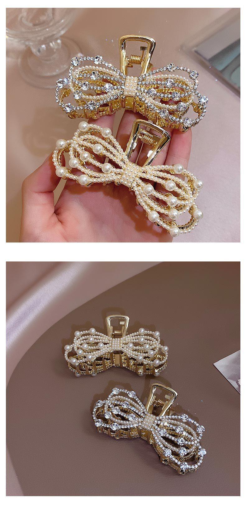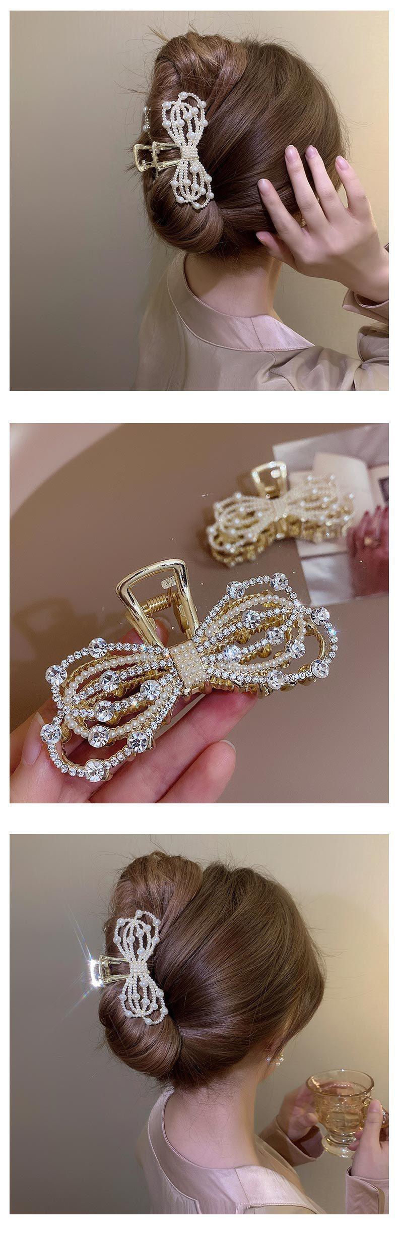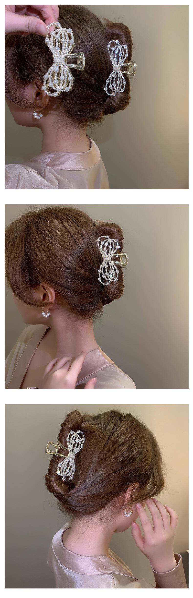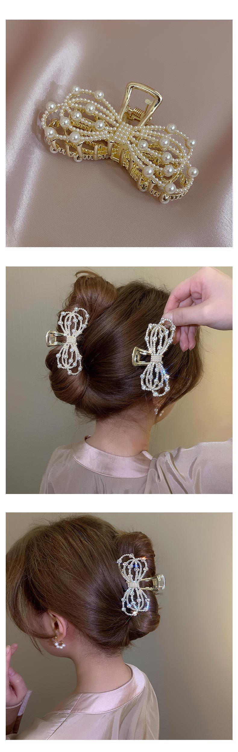 Pinza de Garra con Lazo de Perlas Ins Moda Nicho Pinza de Tiburón Pinza para la Parte Posterior de la Cabeza Horquilla Horquilla para el Cabello de Celebridad Cibernética Accesorios para el Cabello para Mujeres