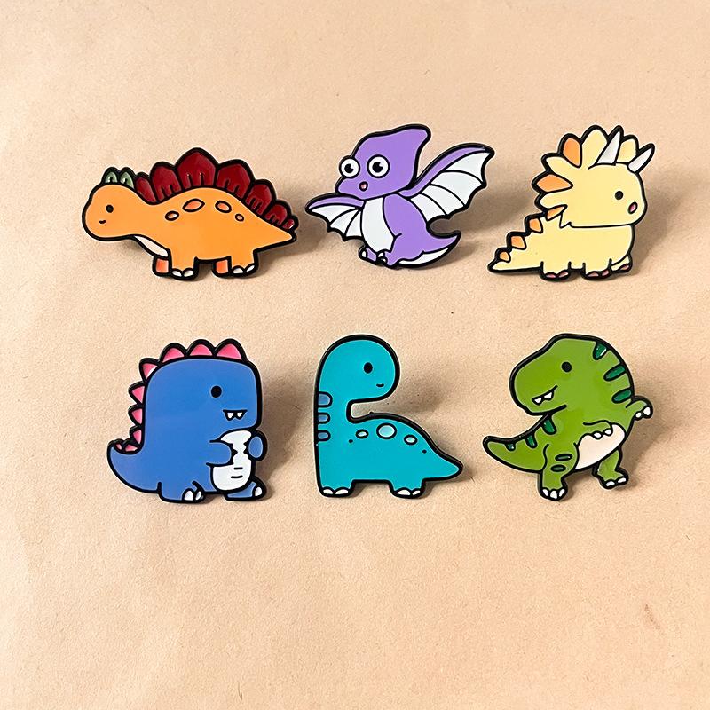 Broche de Dinosaurio de Dibujos Animados Lindo Insignia de Animal de Metal Creativo Accesorios para Ropa de Estudiante Bolsa Pin Pequeño Regalo