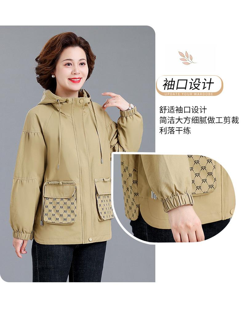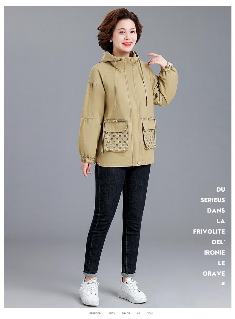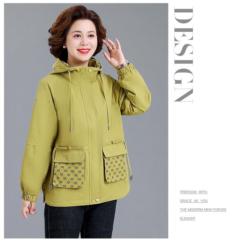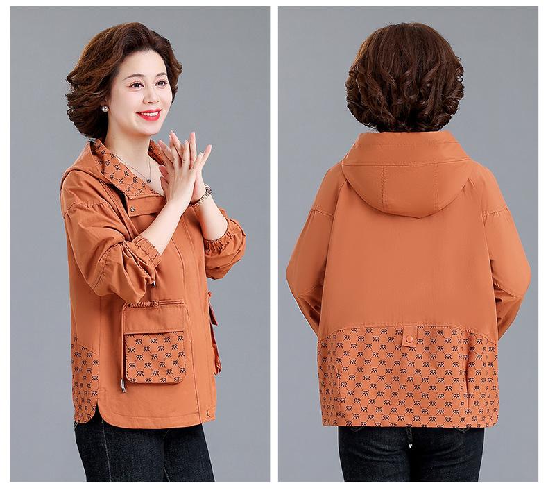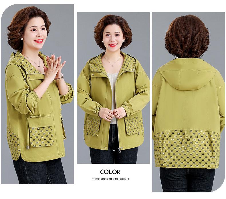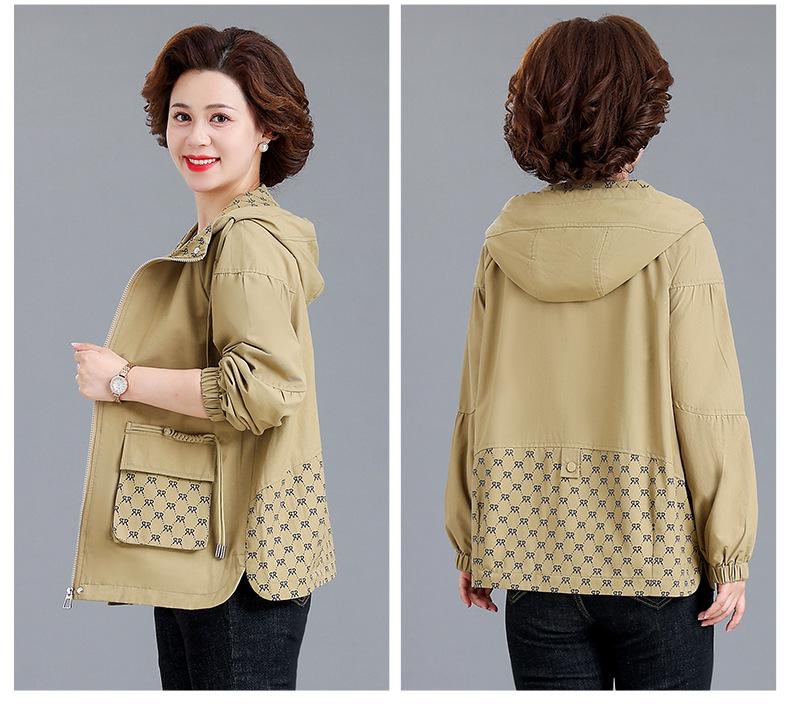 Ropa de otoño para mamá de mediana edad pequeña, top con capucha estilo occidental, nuevo abrigo cortavientos de primavera y otoño 2023 para mujeres de mediana edad y mayores
