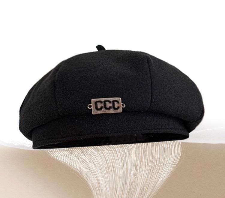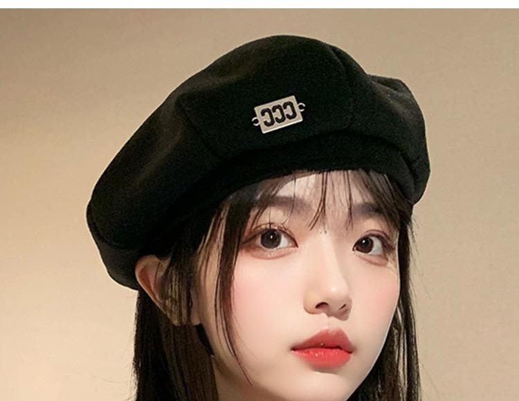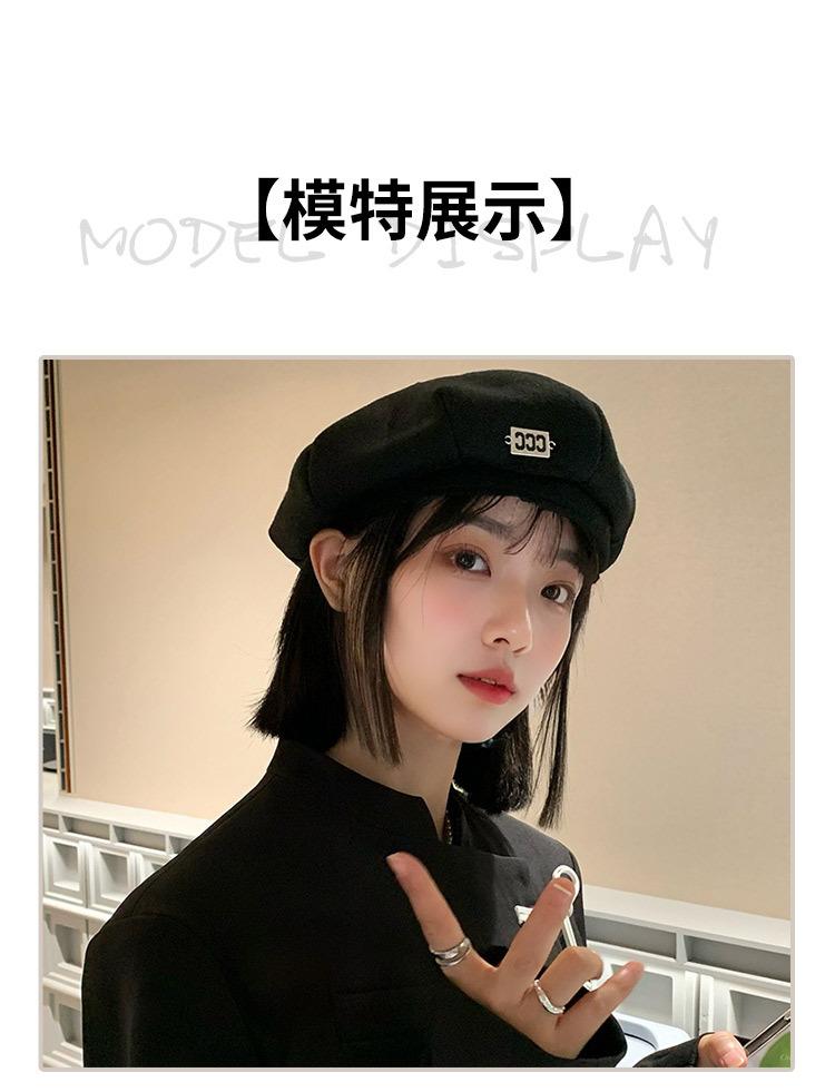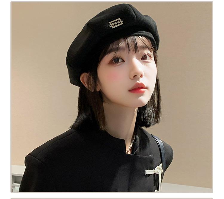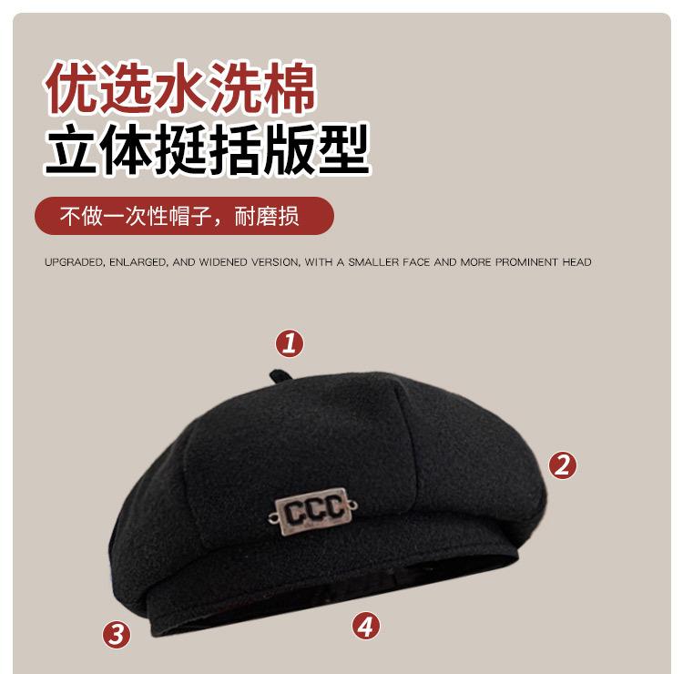 Boina Negra para Mujer Otoño e Invierno 2023 Nueva Versátil Circunferencia de Cabeza Grande que Muestra la Cara Pequeña Pintor Estereotipado Sombrero Octogonal Coreano