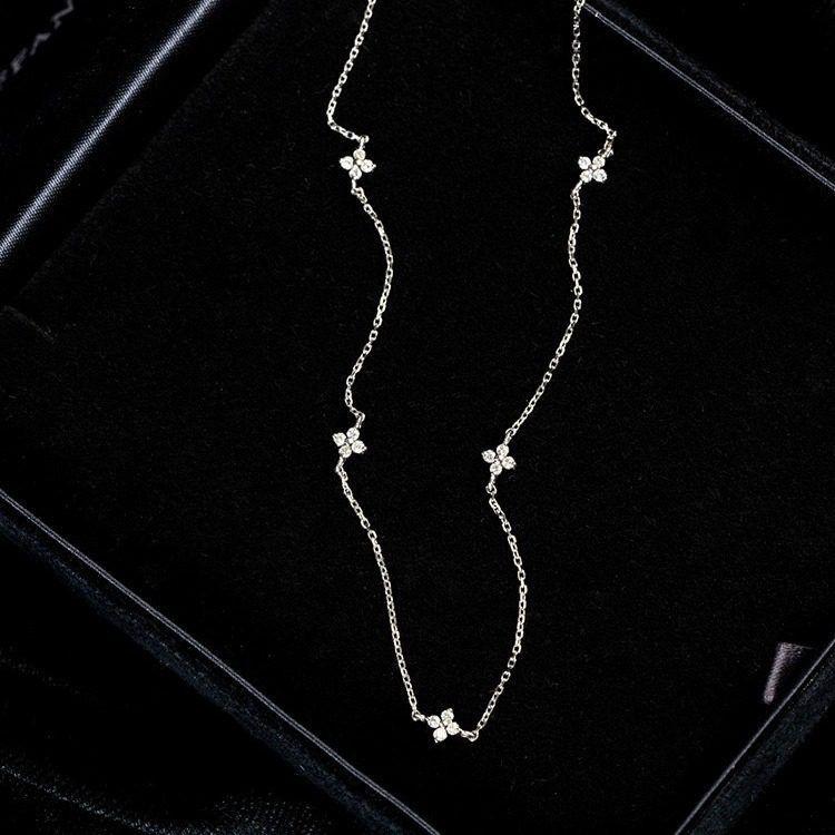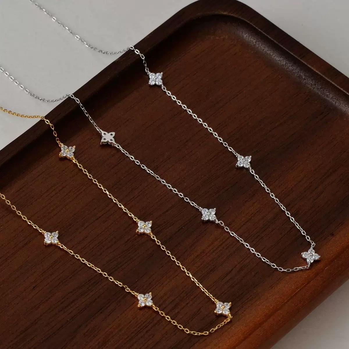 Collar de Aliento de Bebé Transfronterizo de Amazon Trébol de Cuatro Hojas Apilado Cadena Clavícula Collar Nicho de Lujo Ligero Exquisitos Accesorios de Hada