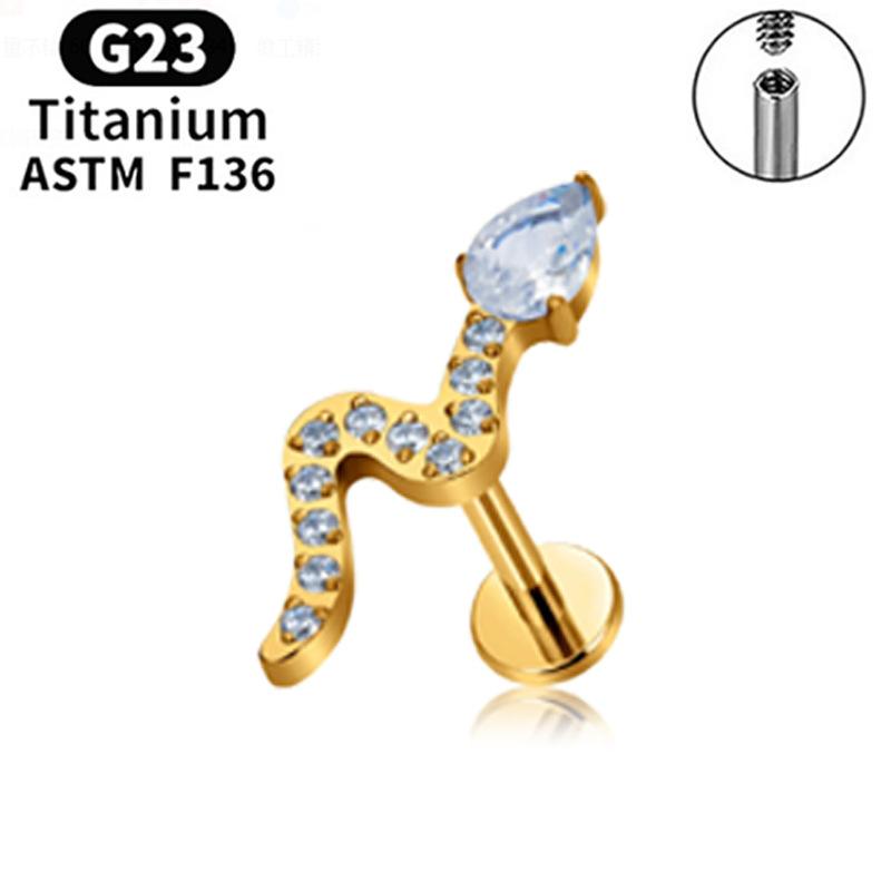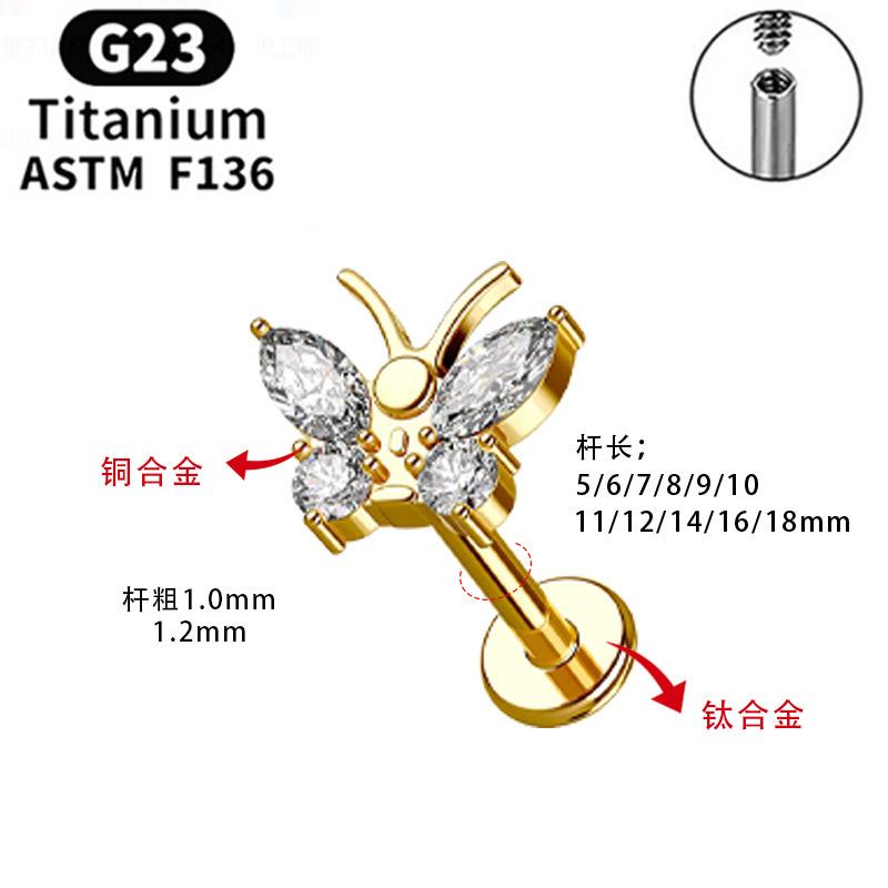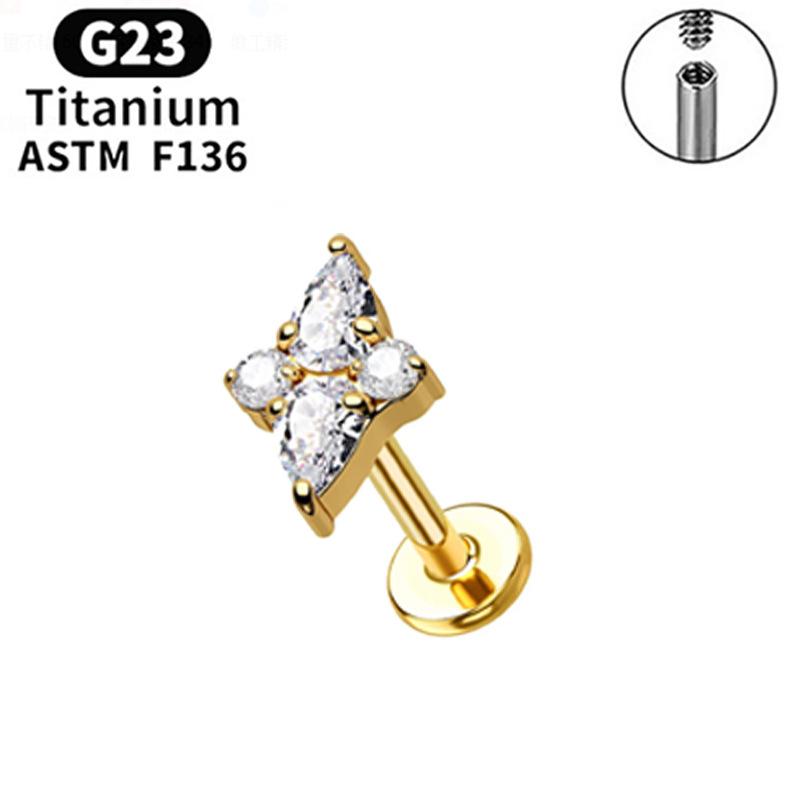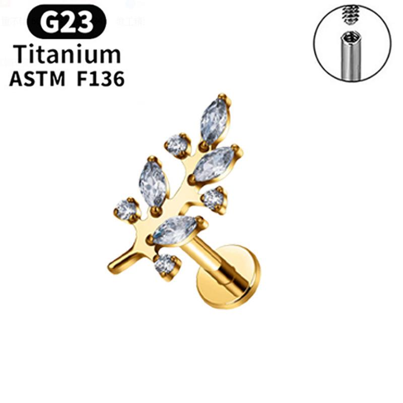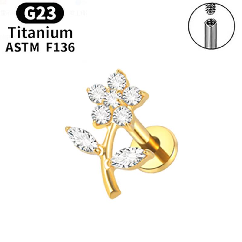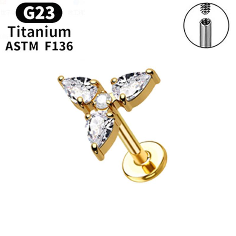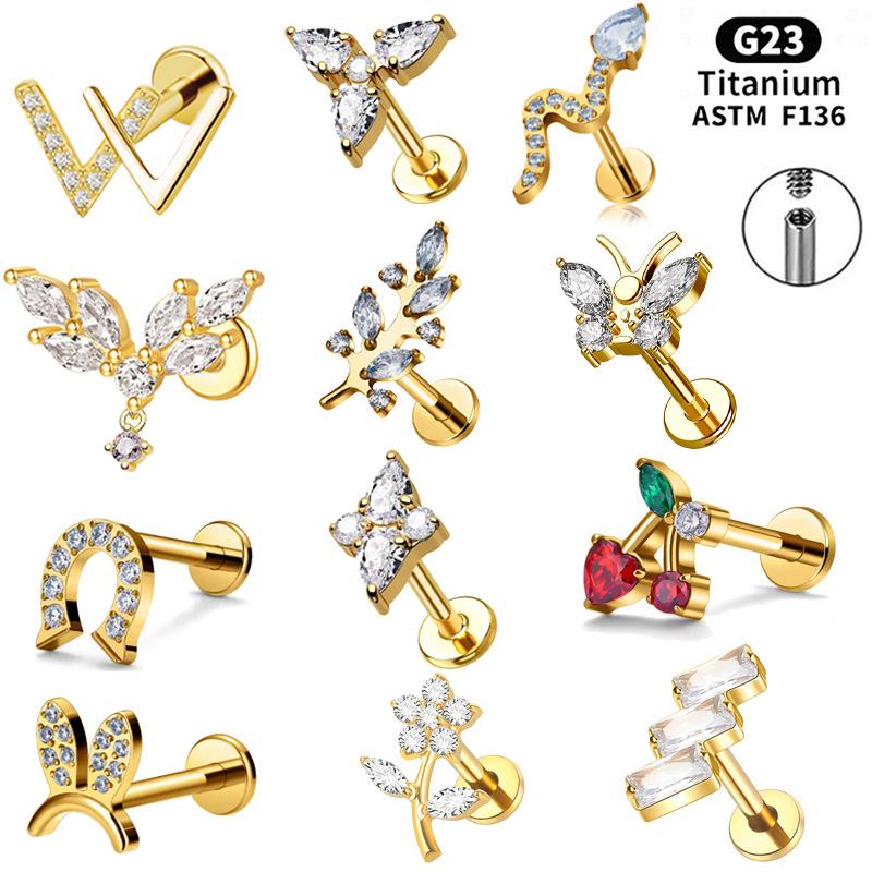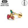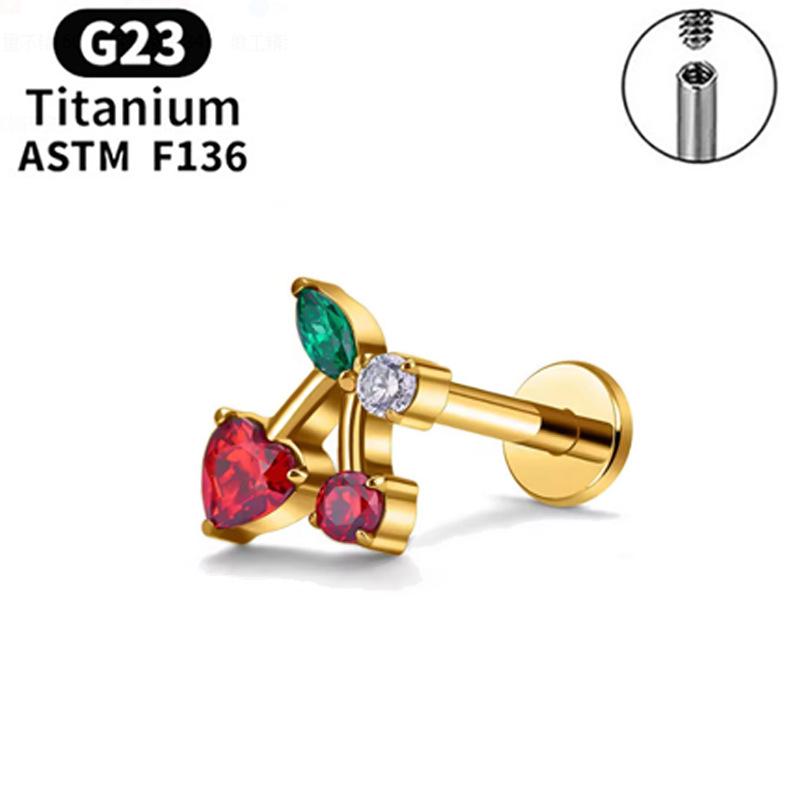 F136 Labio Nariz Aretes Transfronterizos Super Flash Cereza Aleación de Titanio G23 Uña para Hueso de la Oreja Perforación de Oreja Joyería para Perforación Chapada en Oro Real