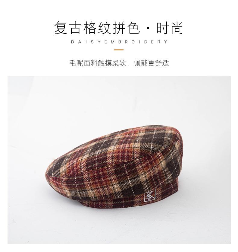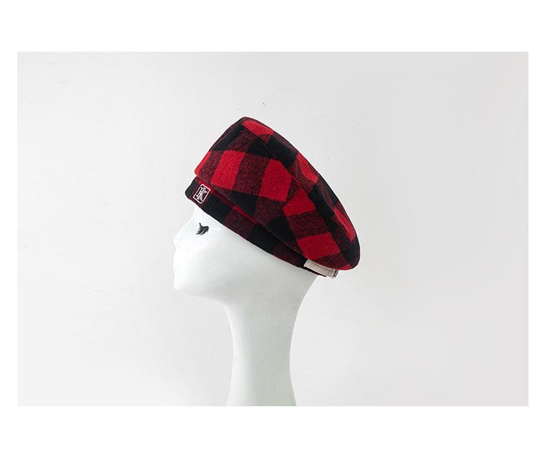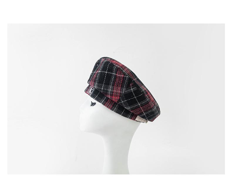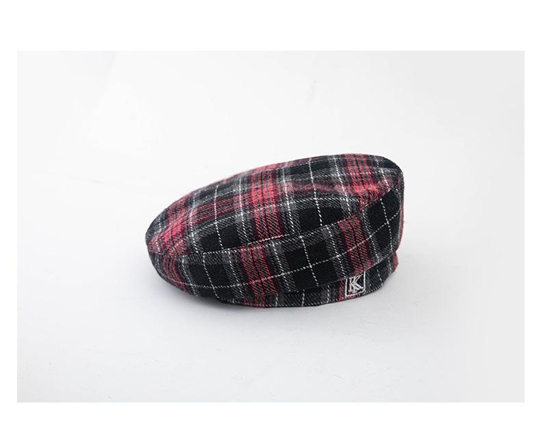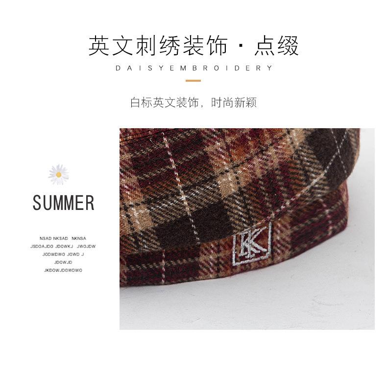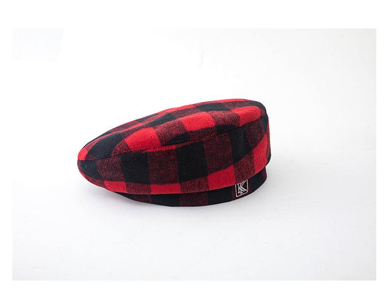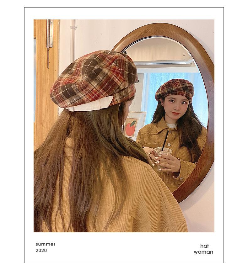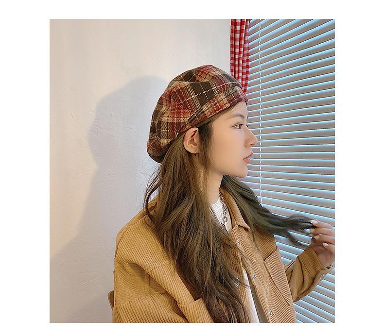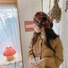 Boina de Lana a Cuadros para Otoño e Invierno para Mujer Moda Retro Británica Combinable Cabeza Grande Cara Pequeña Sombrero de Pintor