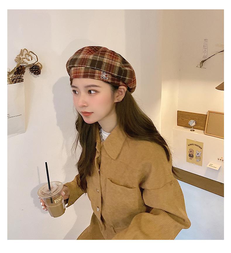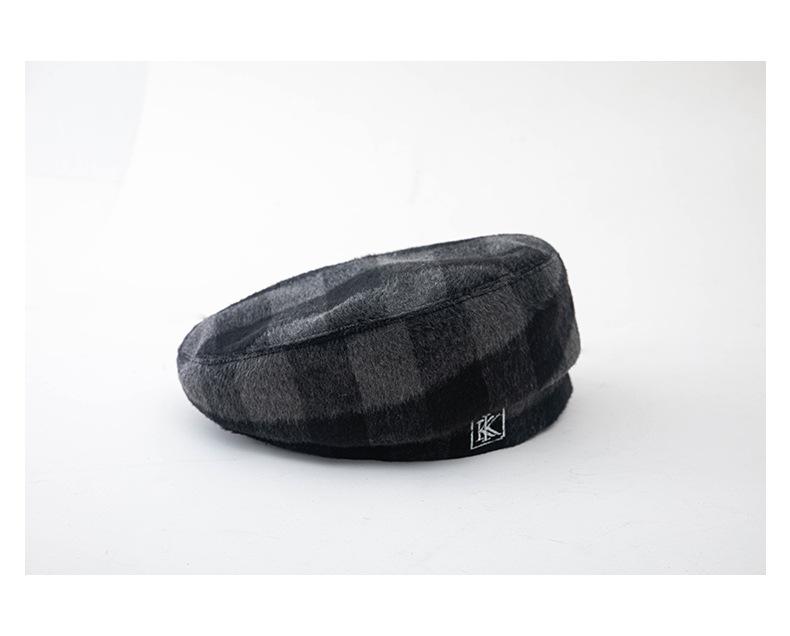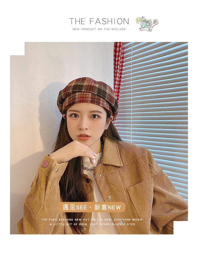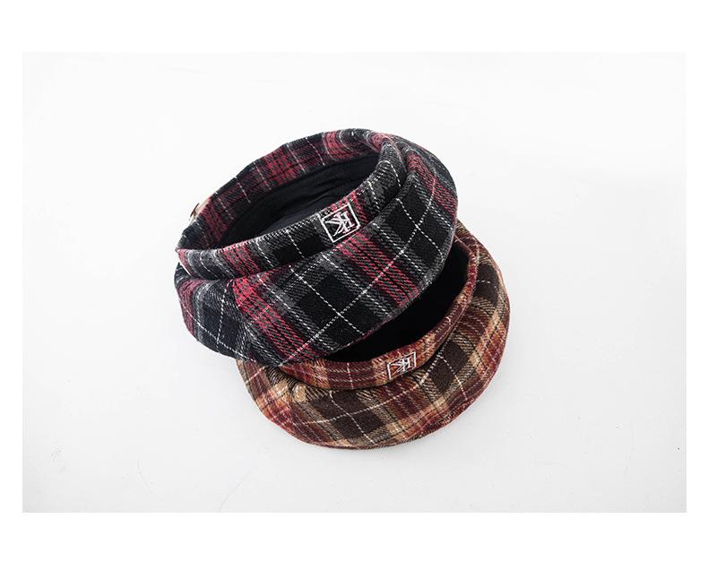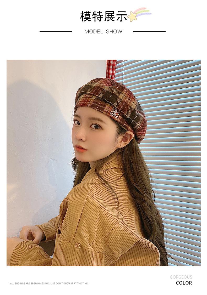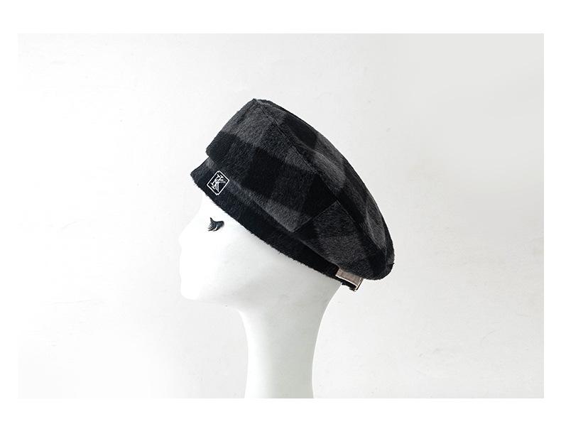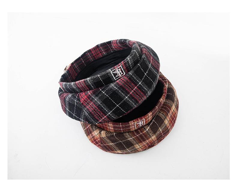 Boina de Lana a Cuadros para Otoño e Invierno para Mujer Moda Retro Británica Combinable Cabeza Grande Cara Pequeña Sombrero de Pintor