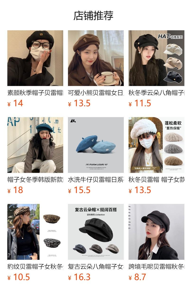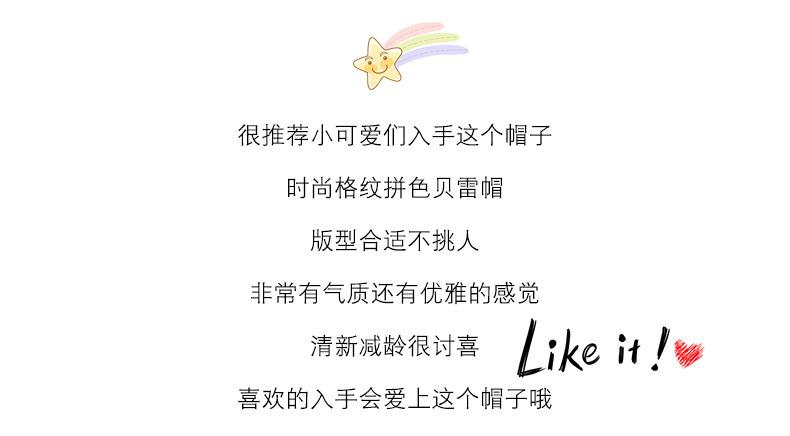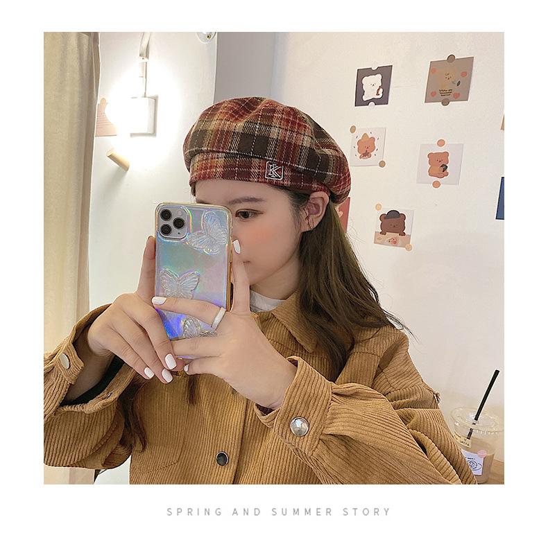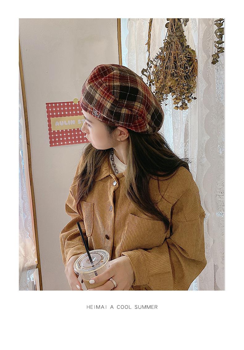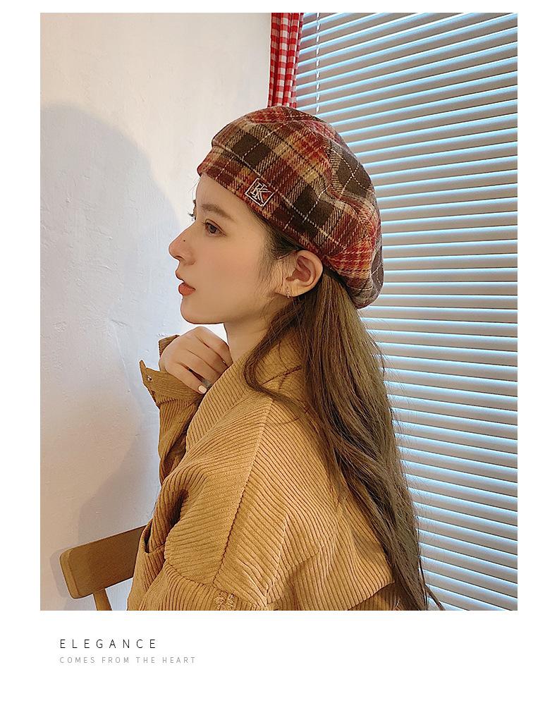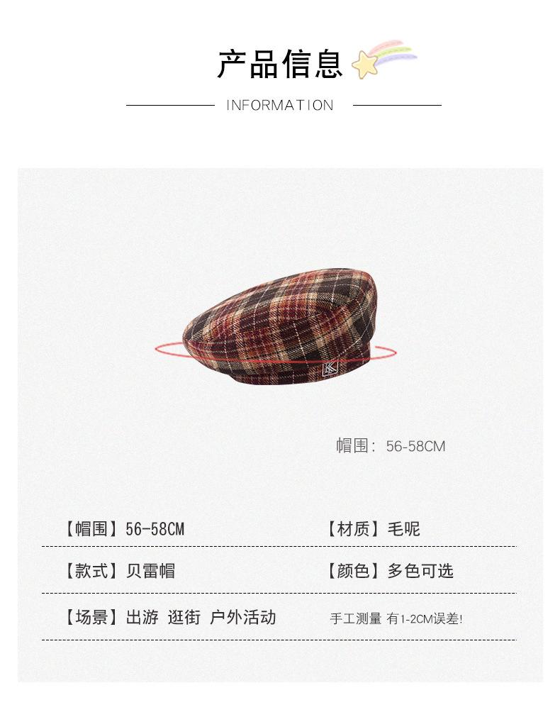 Boina de Lana a Cuadros para Otoño e Invierno para Mujer Moda Retro Británica Combinable Cabeza Grande Cara Pequeña Sombrero de Pintor