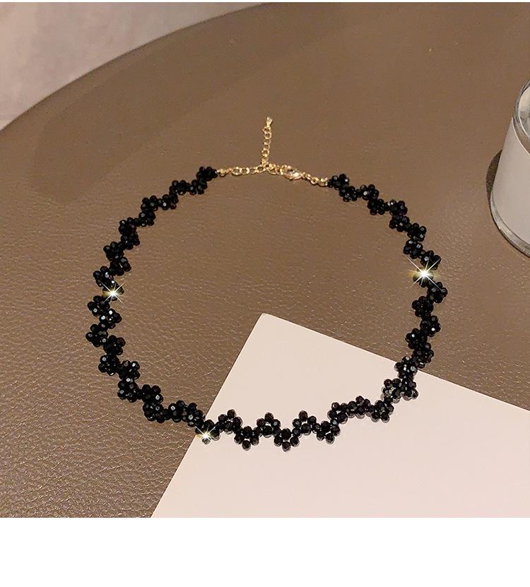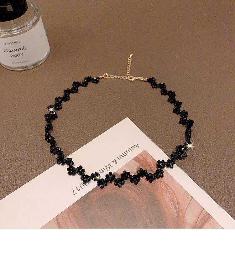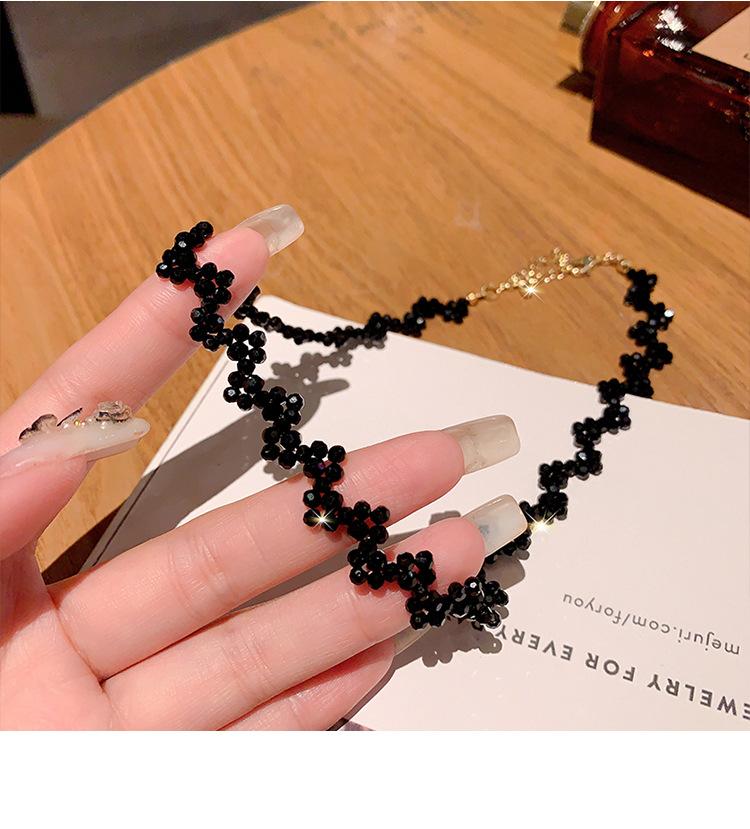 Nuevo Collar Nicho Cristal Negro Cadena Clavícula Mujer 2024 Nuevo Collar Moda Francesa