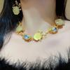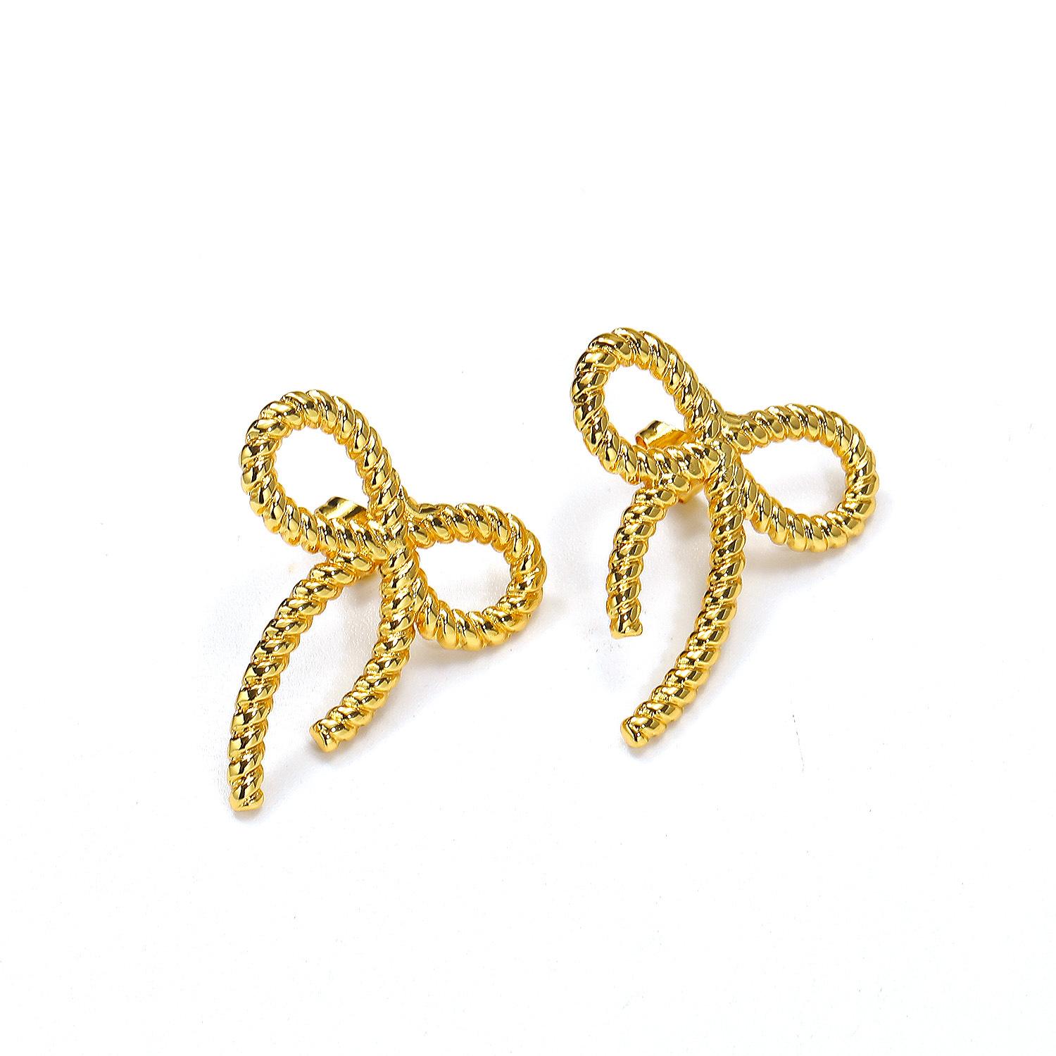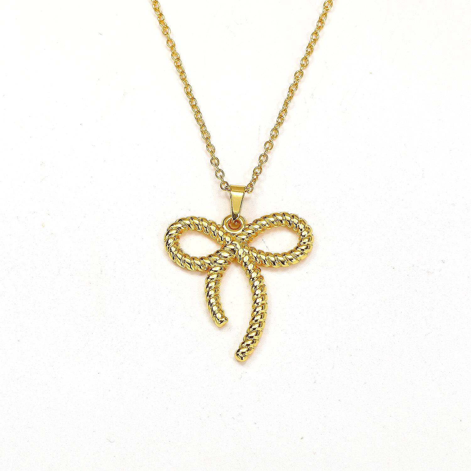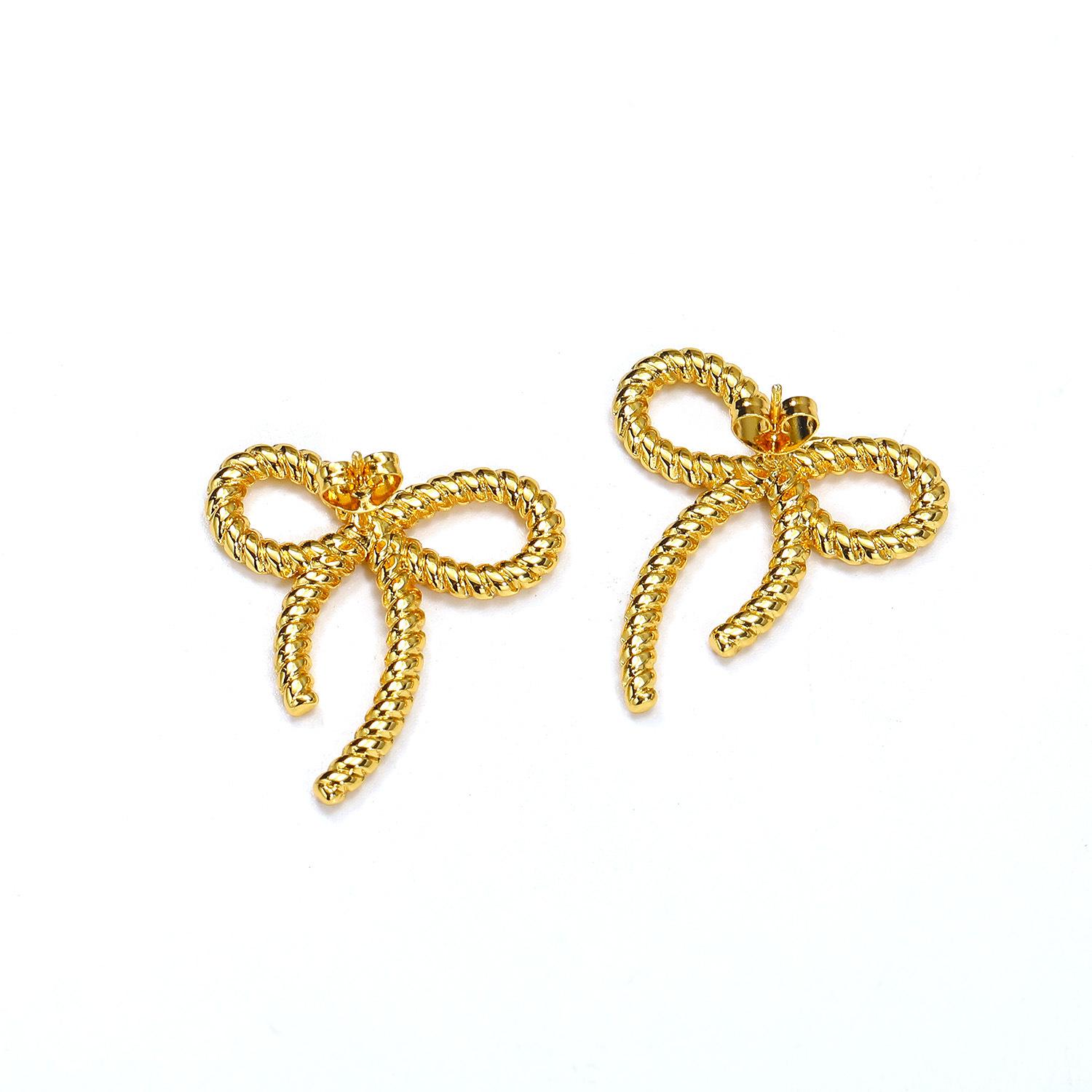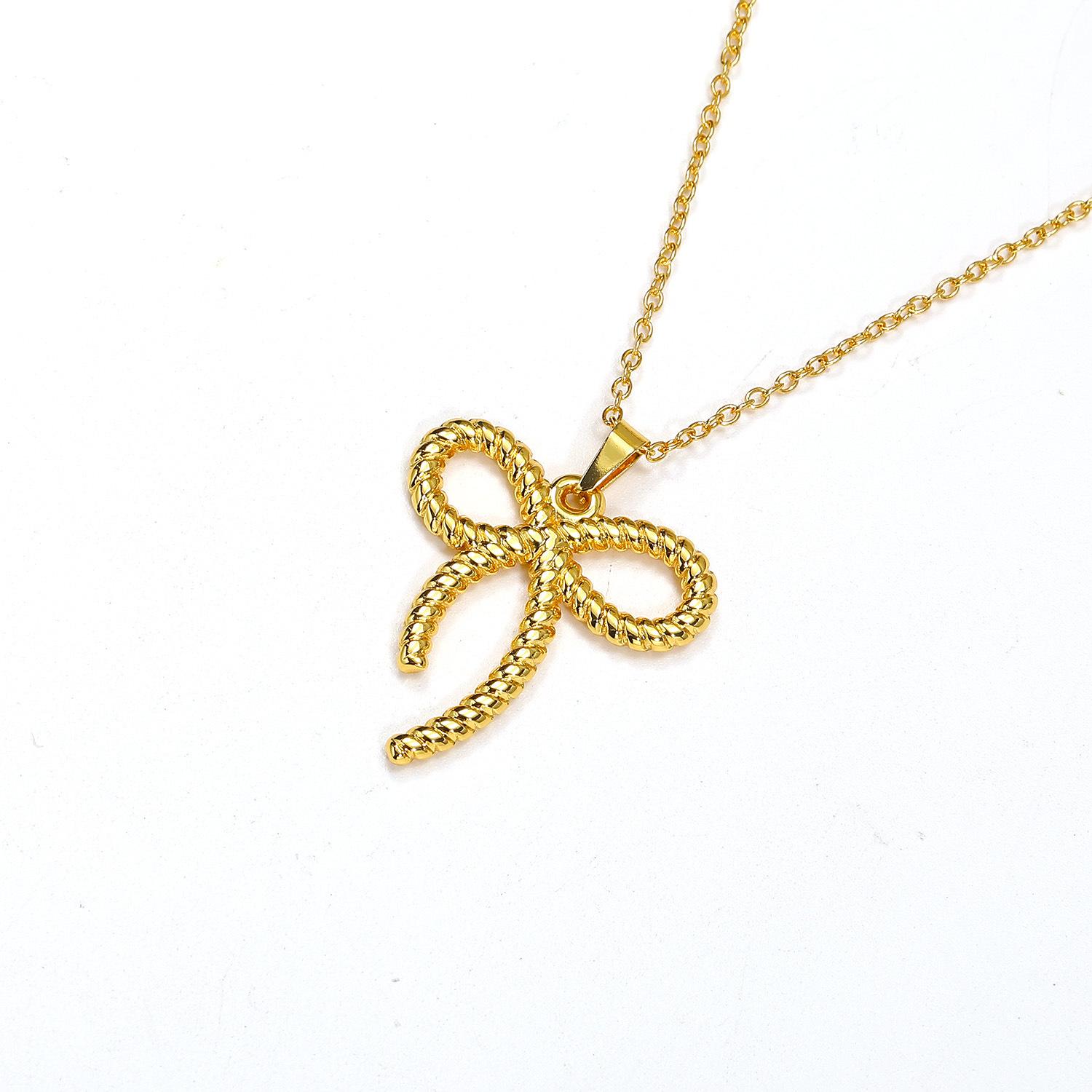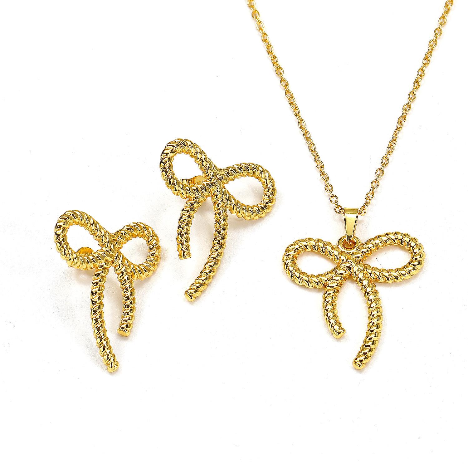 Joyería Francesa Ins Moda Elegante Set de Aretes y Collar de Lazo para Mujer Nicho de Alta Gama Acero de Titanio Oro de 18K