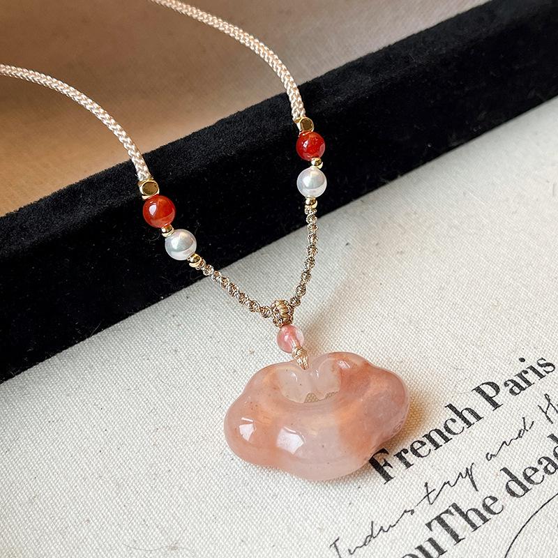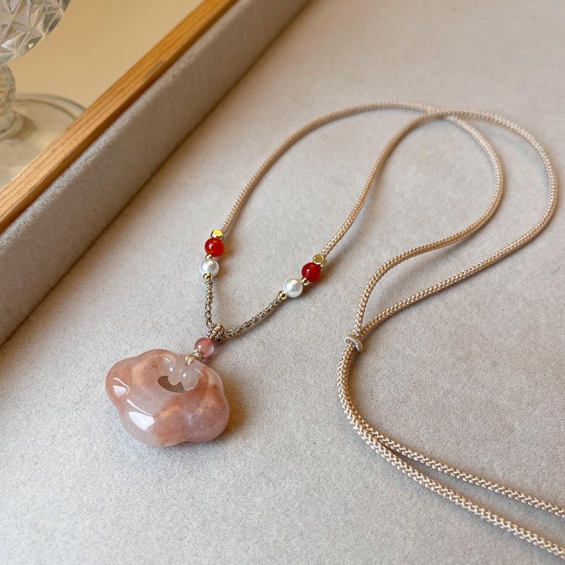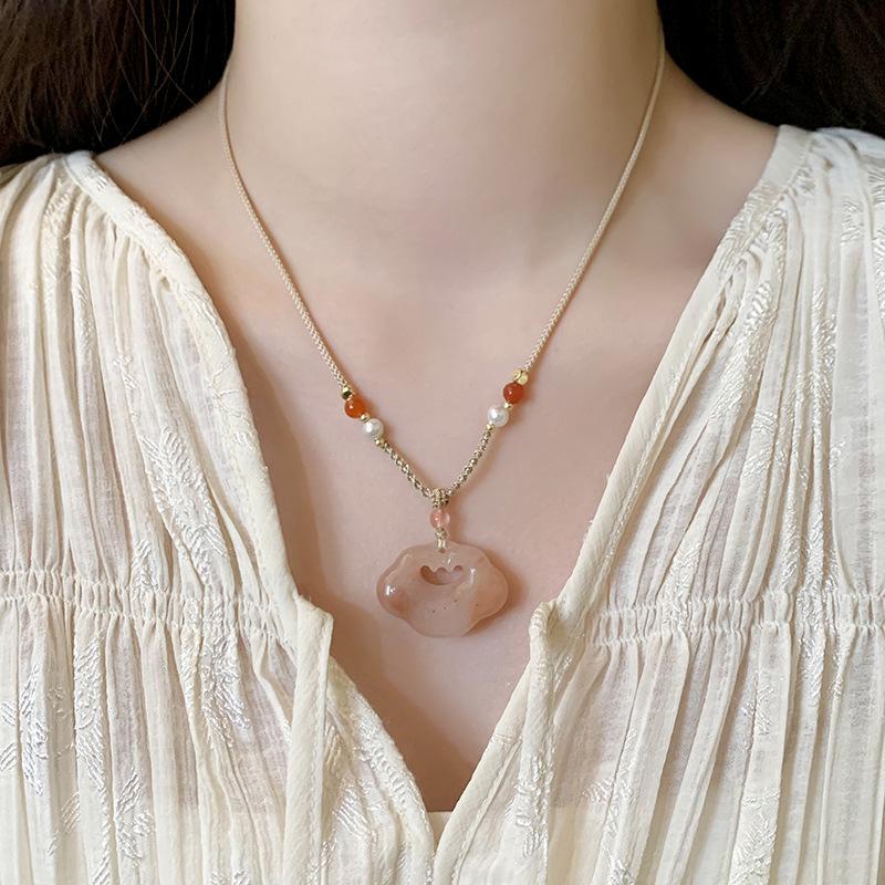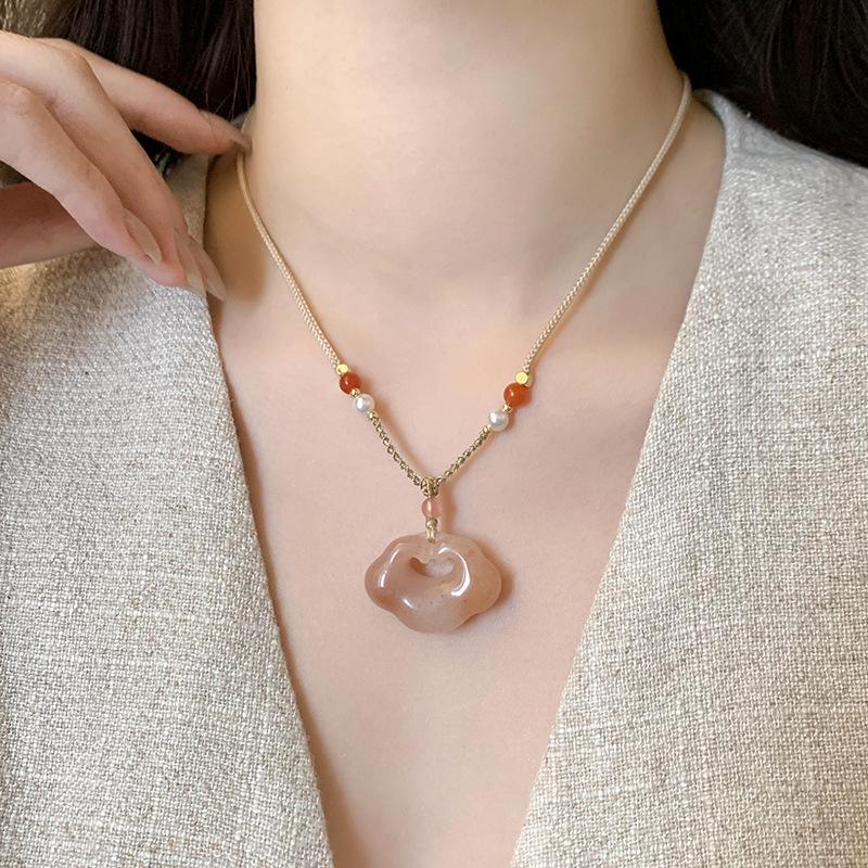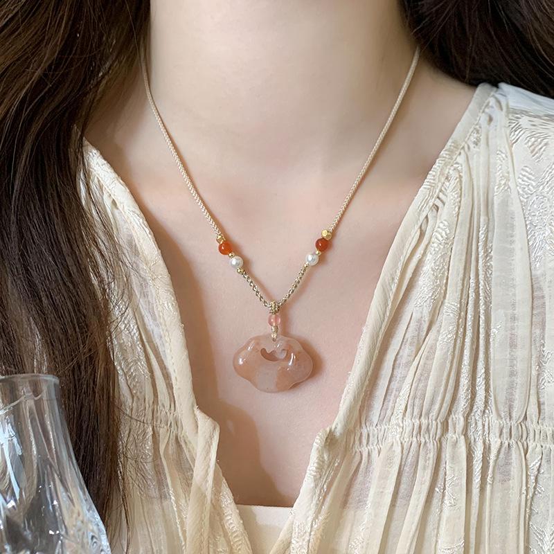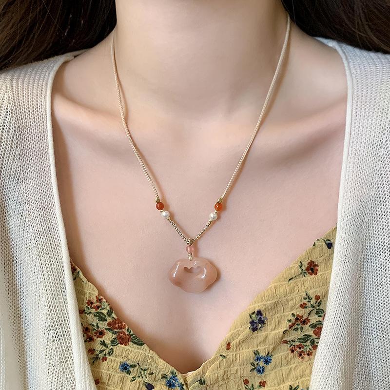 Collar Candado Ruyi Xiangyun Estilo Chino Nuevo 2025 Cadena de Clavícula Nicho Lujo Ligero para Mujer Cuerda Colgante Cadena de Cuello Rosa