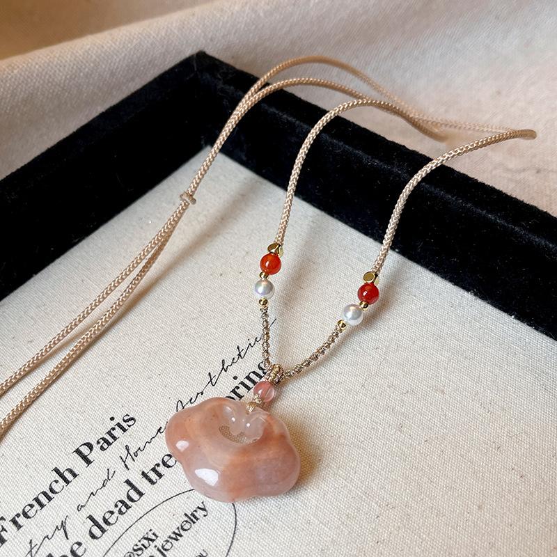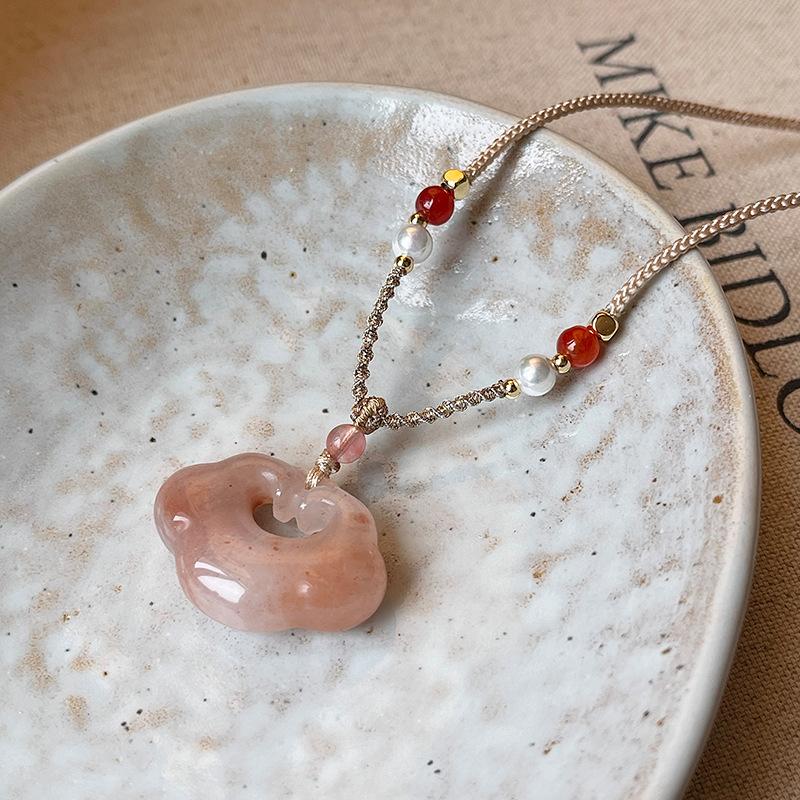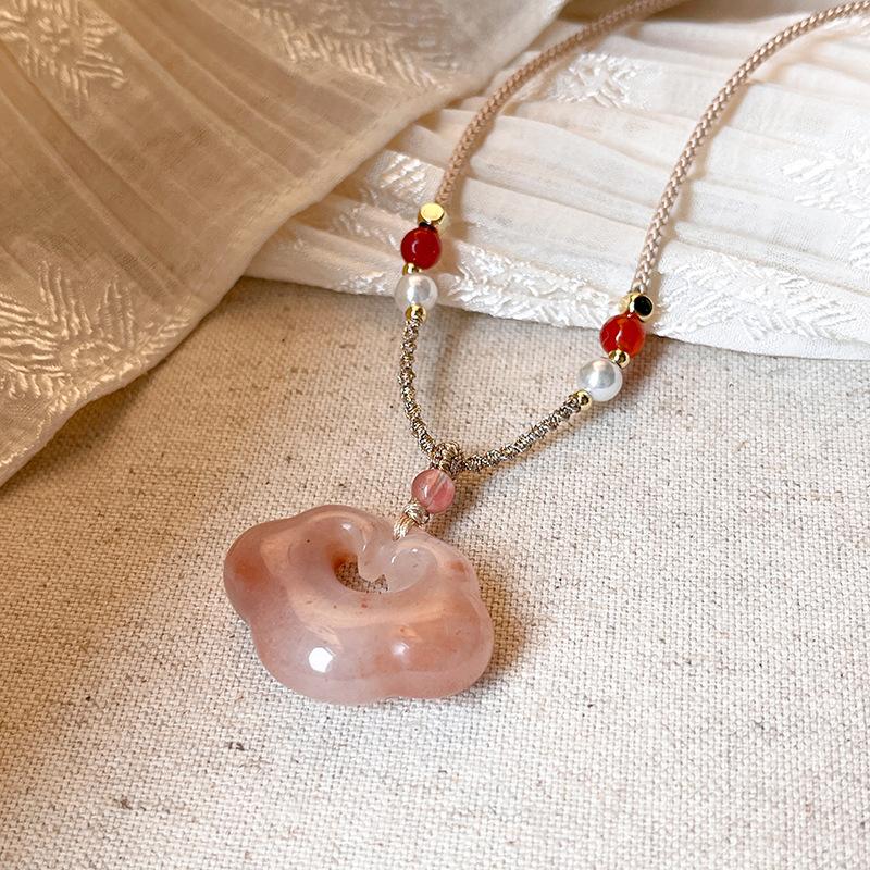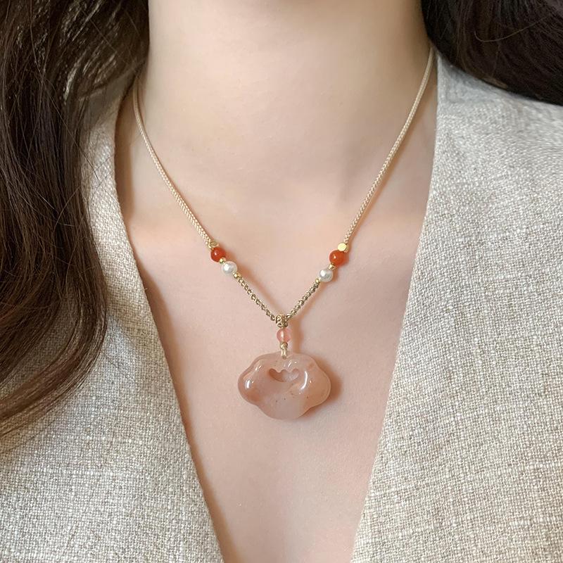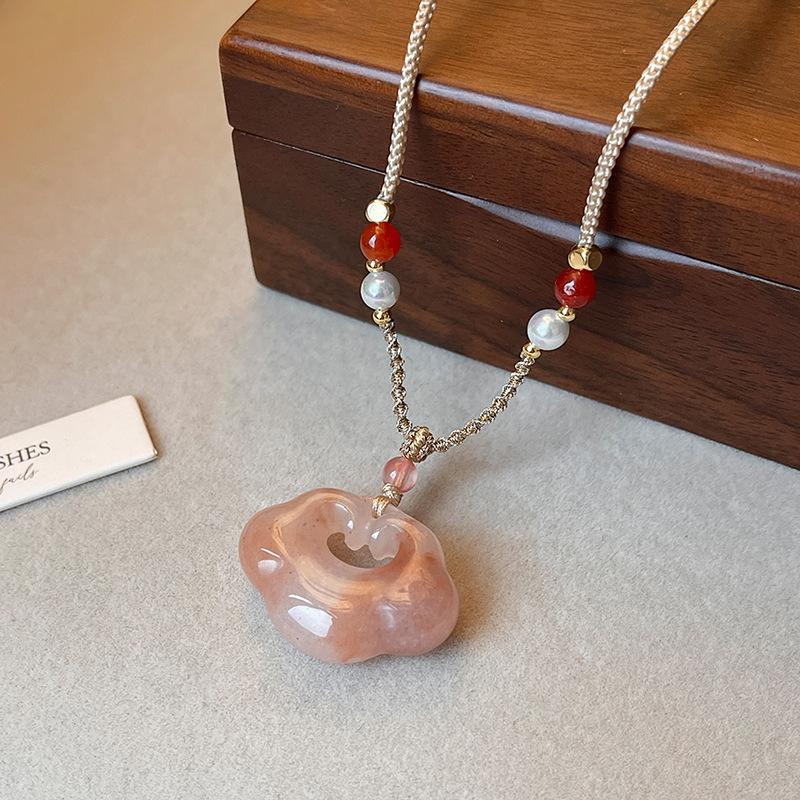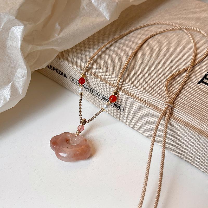 Collar Candado Ruyi Xiangyun Estilo Chino Nuevo 2025 Cadena de Clavícula Nicho Lujo Ligero para Mujer Cuerda Colgante Cadena de Cuello Rosa