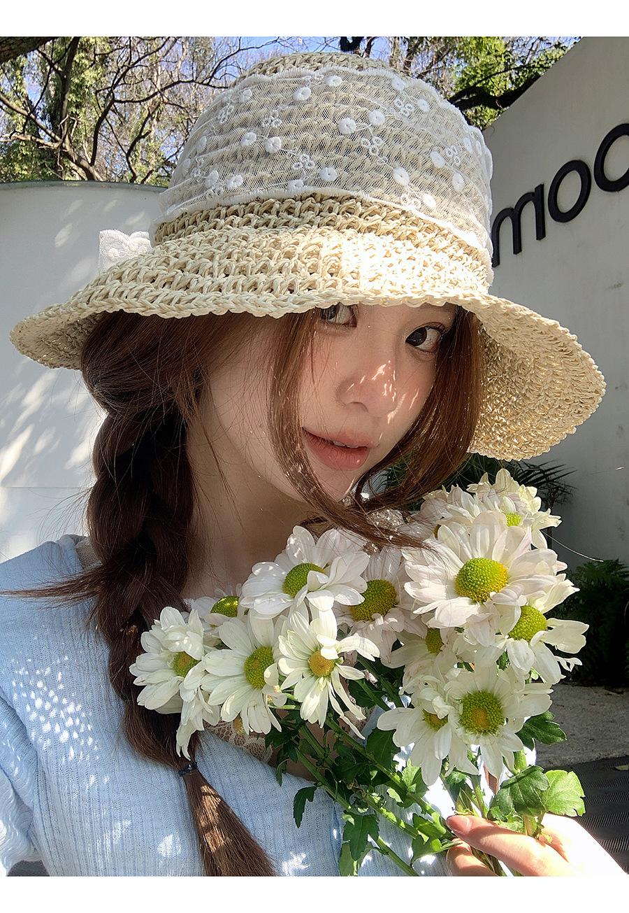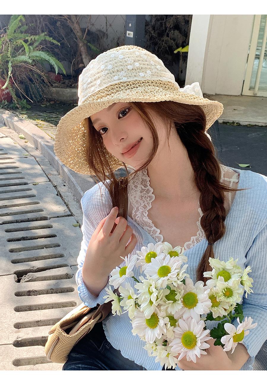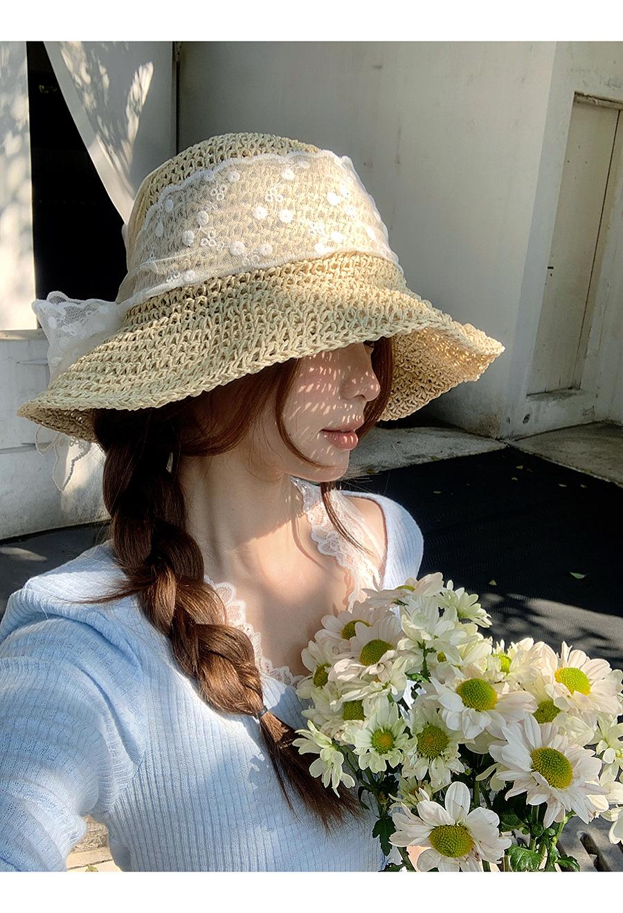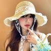 Sombrero de Paja con Lazo de Encaje Francés y Dulce Calado para Mujer 2025 Nuevo Primavera y Verano Estilo Resort Costero Sombrilla Sombrero de Pescador